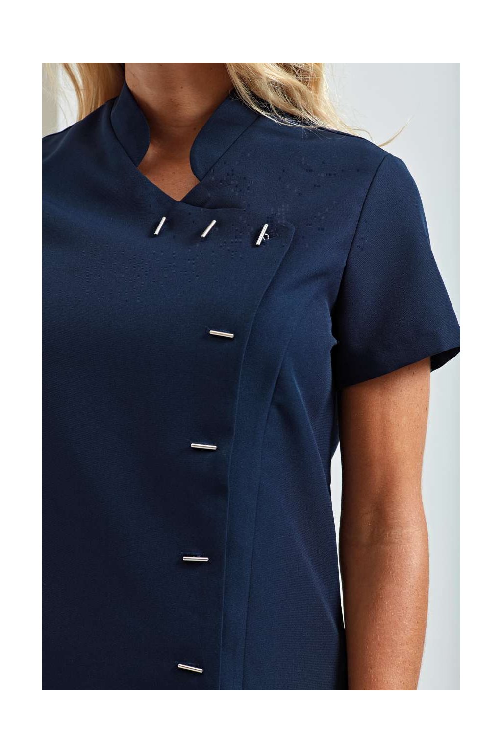 - Asymmetric button fastening to the front with eight ‘bar’ shaped buttons