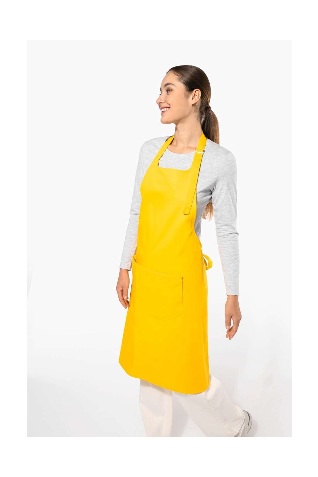 Zástěra je složena ze 100% bavlny s gramáží 280 g/m2.