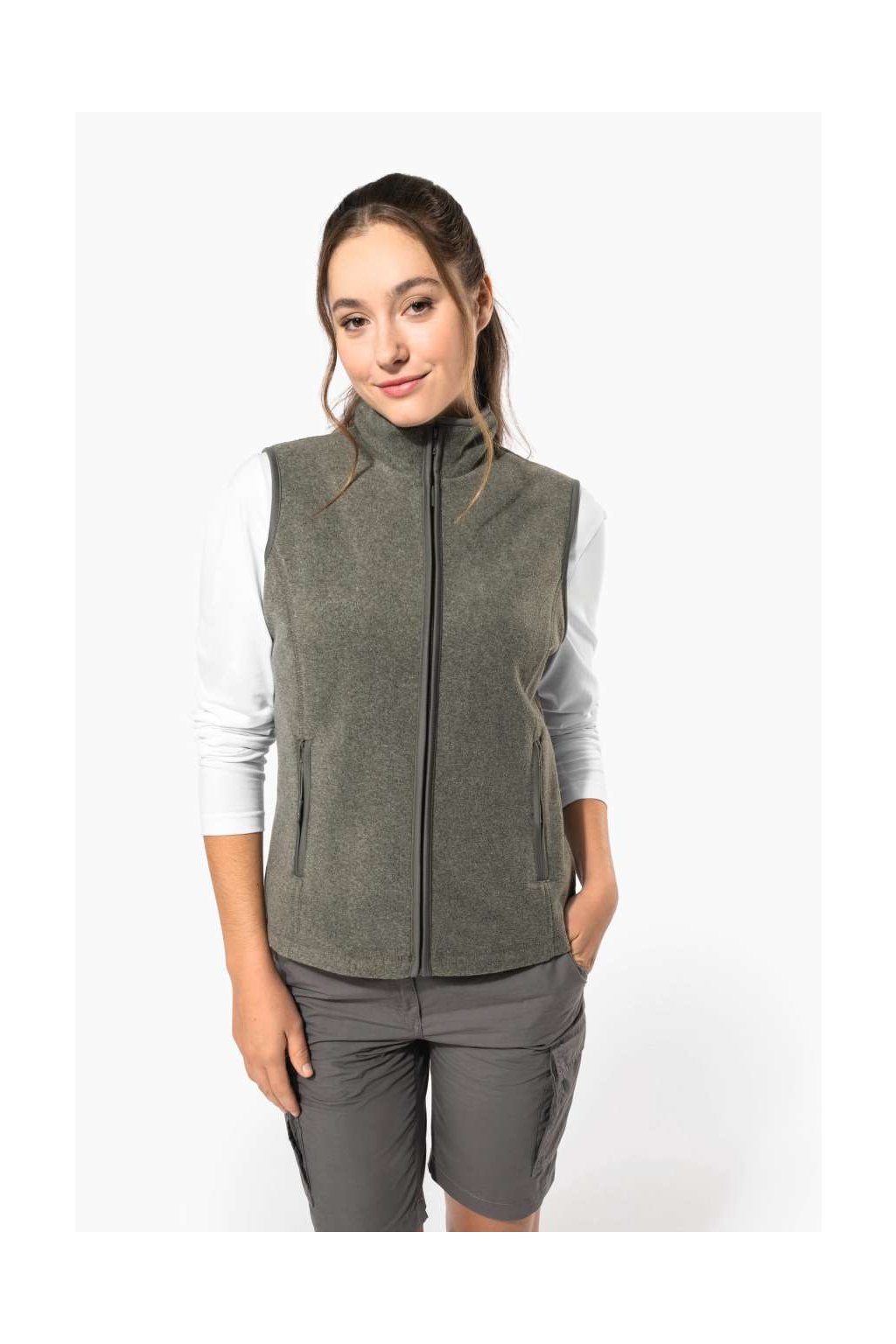 Příjemná a hřejivá vesta má povrchovou úpravu proti žmolkovatění, zip po celé délce, dvě kapsy na zip a vázaný límec, průramky a zipy pro větší teplo a pohodlí.