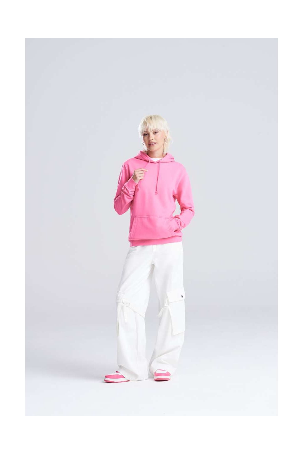Módní dámská mikina s dvojitou kapucí a klokaní kapsou je vhodná na každodenní nošení. Příjemný střih mikiny obepne vaši postavu. Měkká bavlněná tkanina mikiny vytváří ideální povrch pro tisk a jednoduchý odtrhávací štítek je ideální pro rebranding.