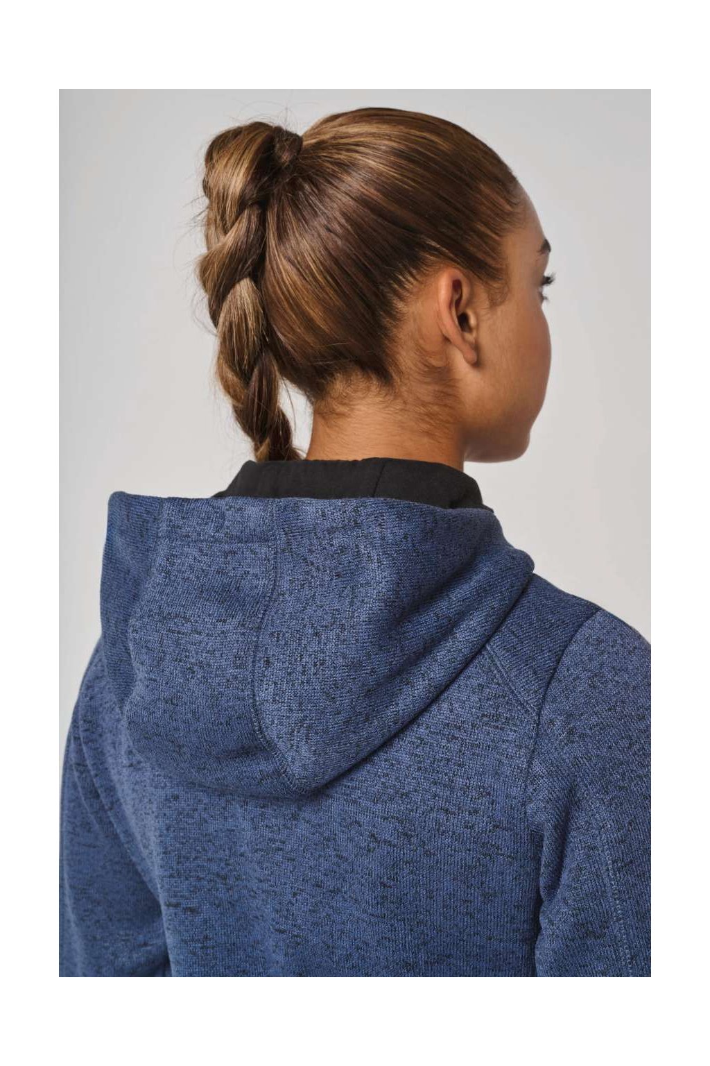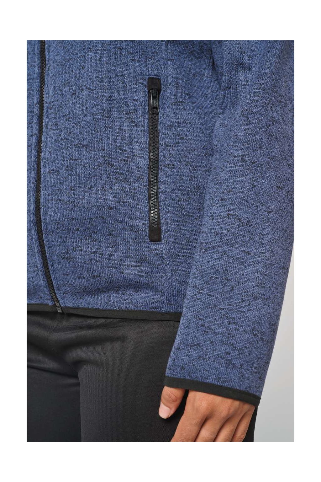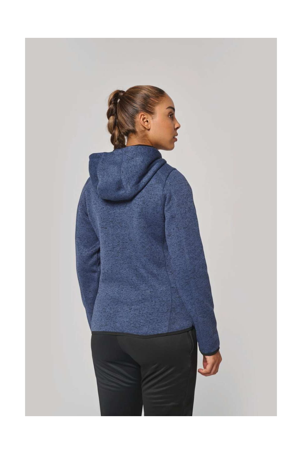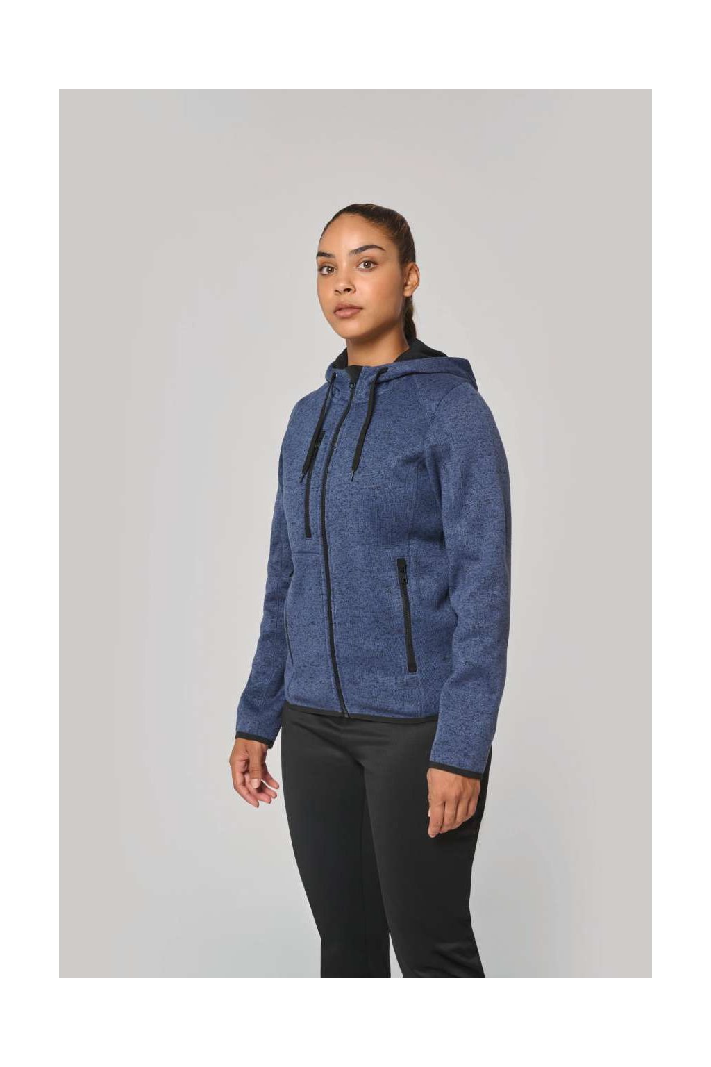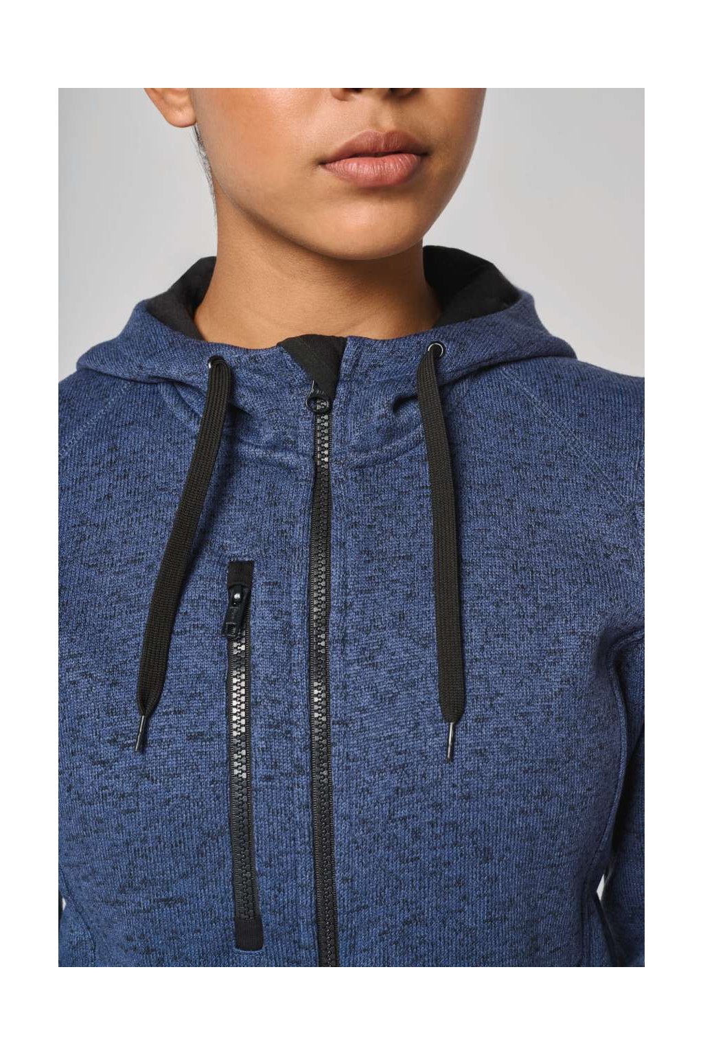 Dámská pohodlná, volnočasová, hřejivá bunda z kartáčovaného úpletu. Bunda je má dvě kontrastní přední kapsy na zip a jednu kontrastní náprsní kapsu. Kapuce s kontrastní 100% bavlněnou žerzejovou podšívkou a kontrastní stahovací šňůrkou. Další vychytávkou jsou manžety a dolní lem s kontrastní elastickou vazbou a panely s povrchovou úpravou topstitch. Bundu ocení každá aktivní žena pro volnočasové aktivity.