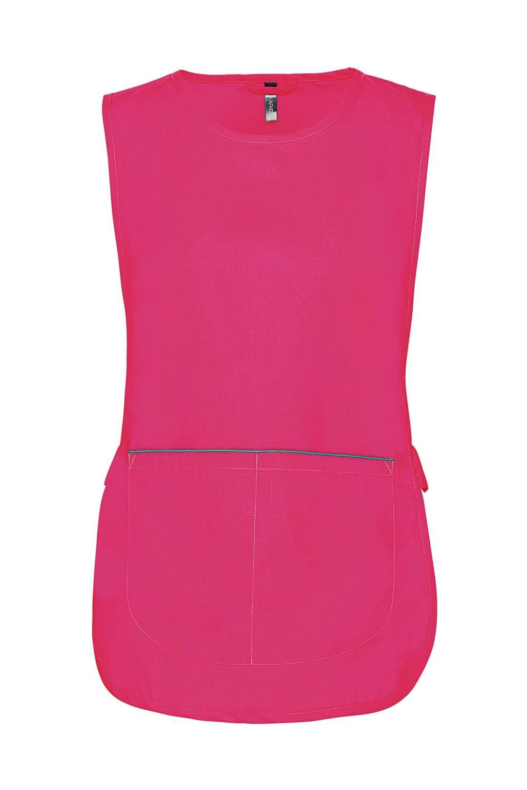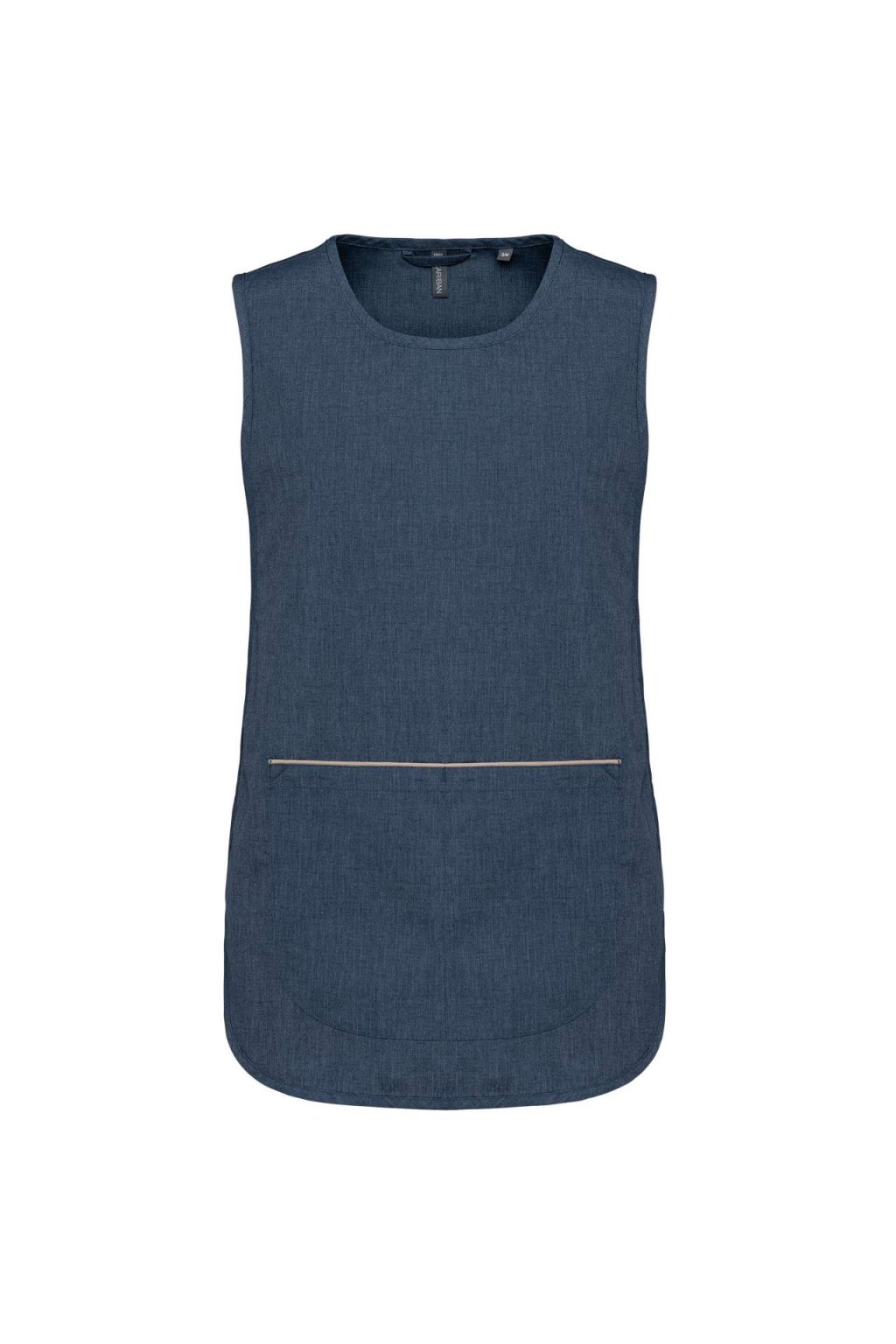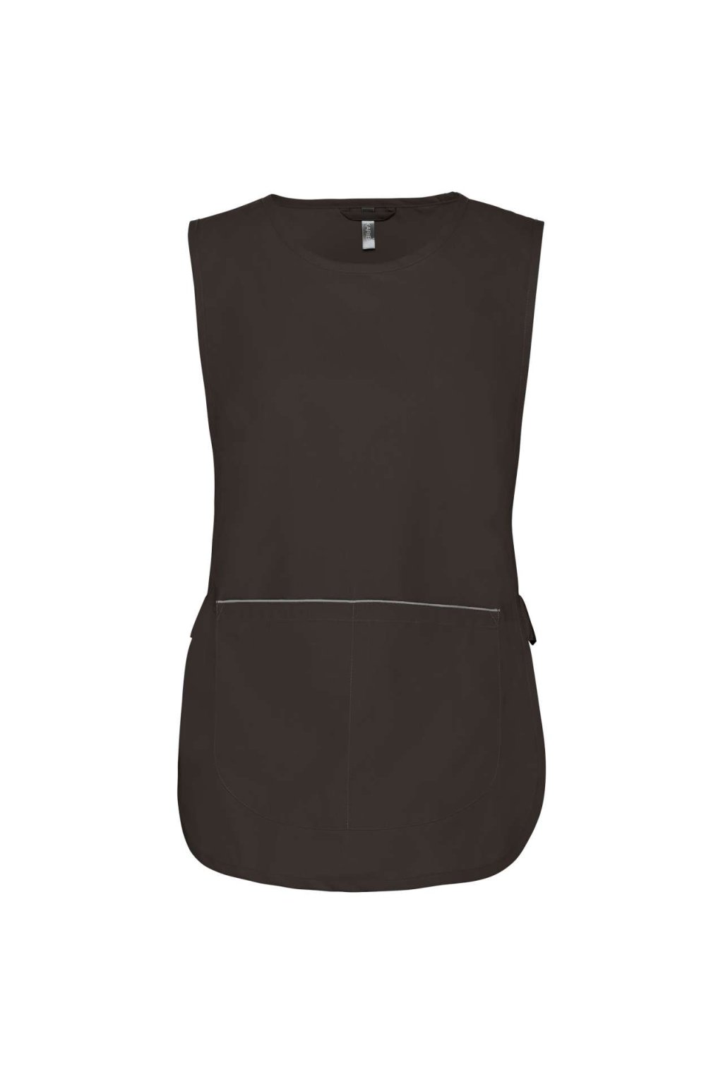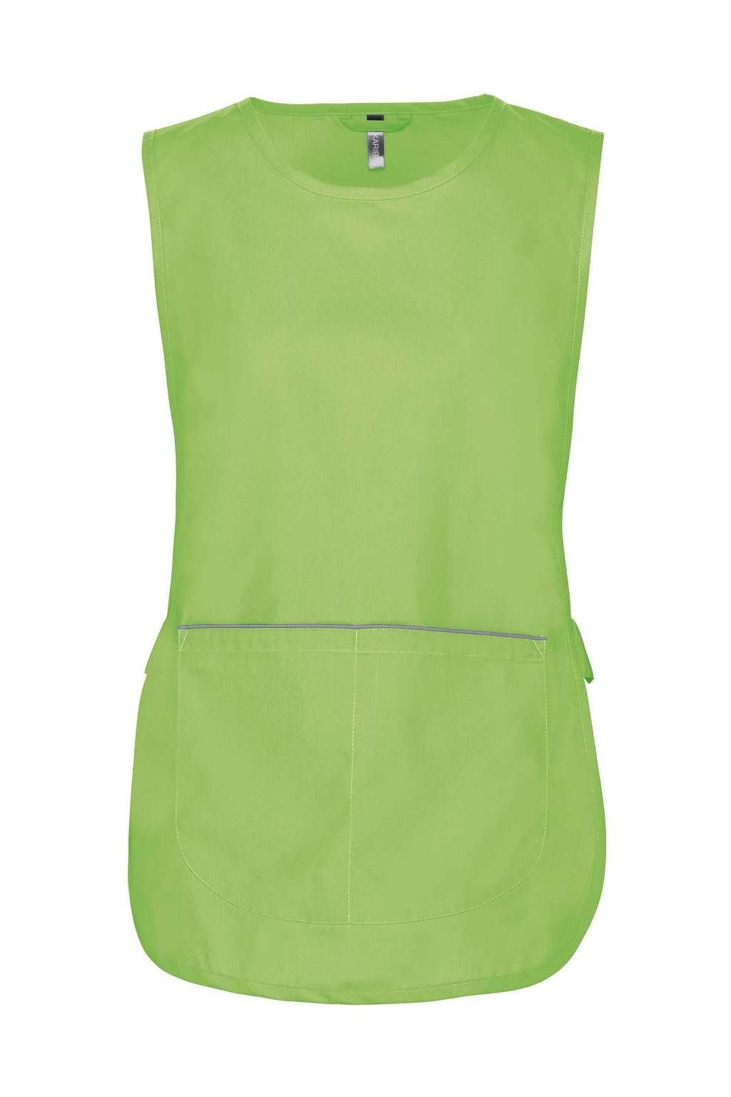 Dámská pracovní tunika / zástěra je z odolné tkaniny a má klasický střih. Zástěra má velkou přední kapsu s dvěma oddíly a jednu malou vnitřní kapsou. Vesta se dá upravit patenty na boku.