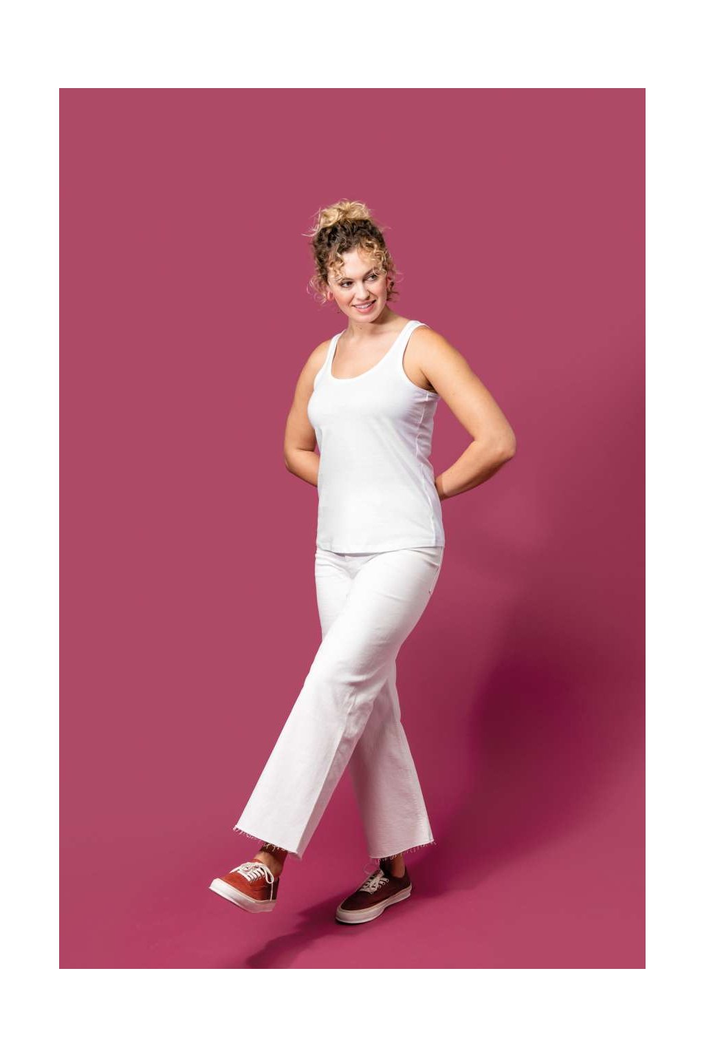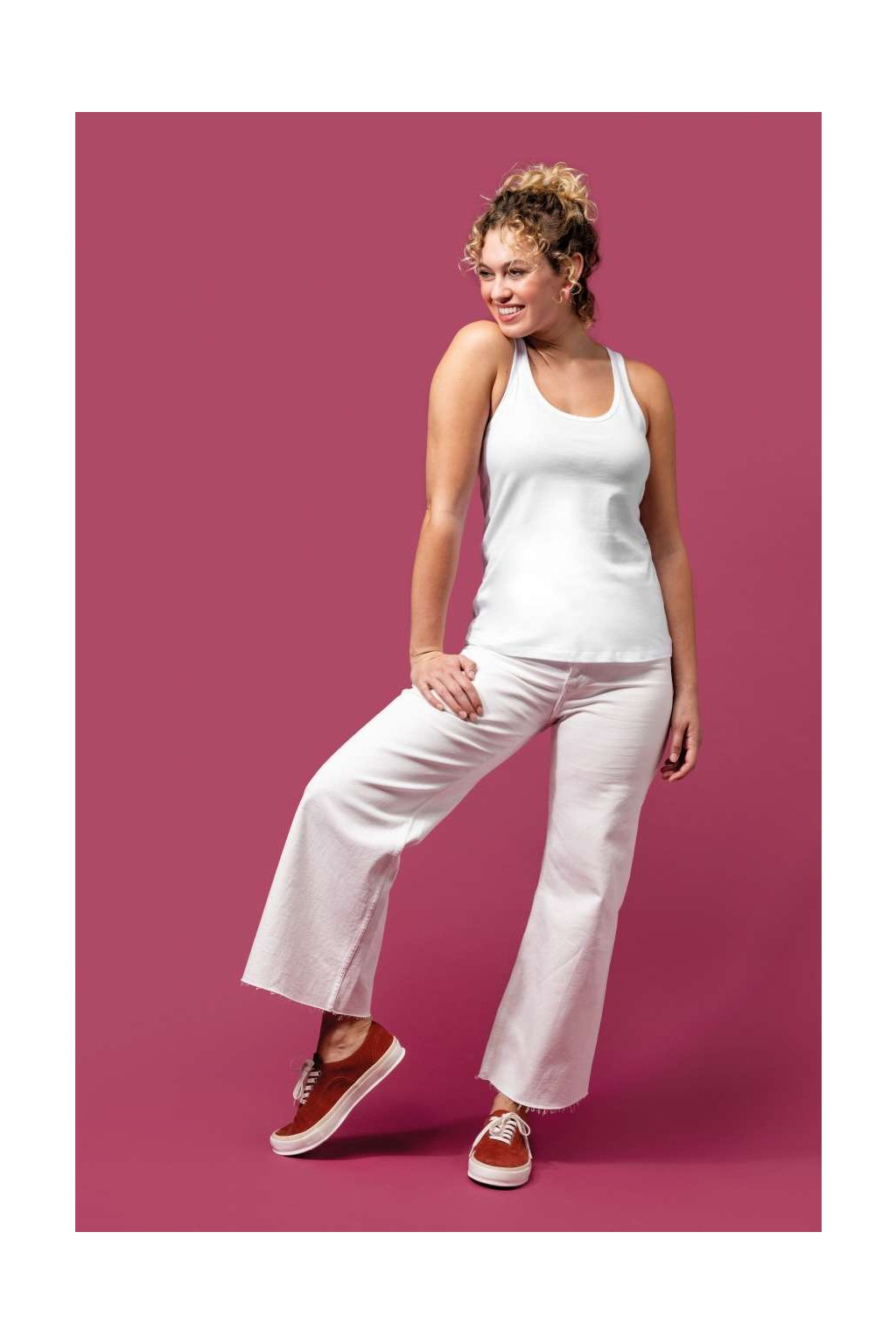 Tričko je vyrobeno z 100% bavlny, která je organická v konverzi. To znamená, že je pěstována bez použití chemických hnojiv a pesticidů, což je šetrné k životnímu prostředí i k vaší pokožce. Tílko je vyrobené z jerseyové látky a česané bavlny, které zajišťují jemnost, pružnost a odolnost materiálu. Má slim fit střih, který podtrhne vaši postavu, a kulatý výstřih, který dodá vašemu outfitu ženskost.