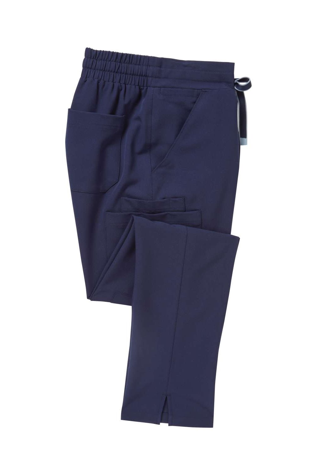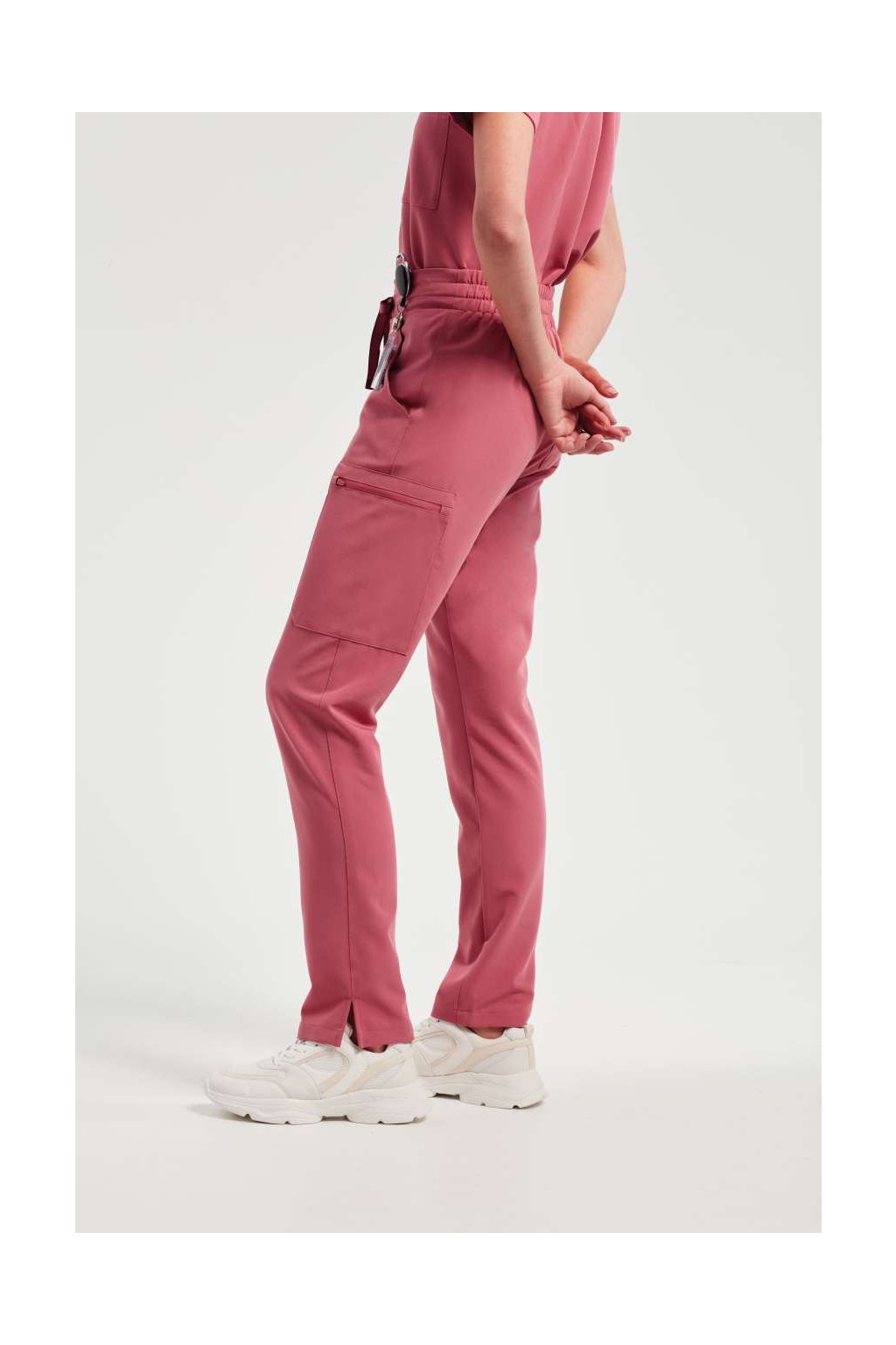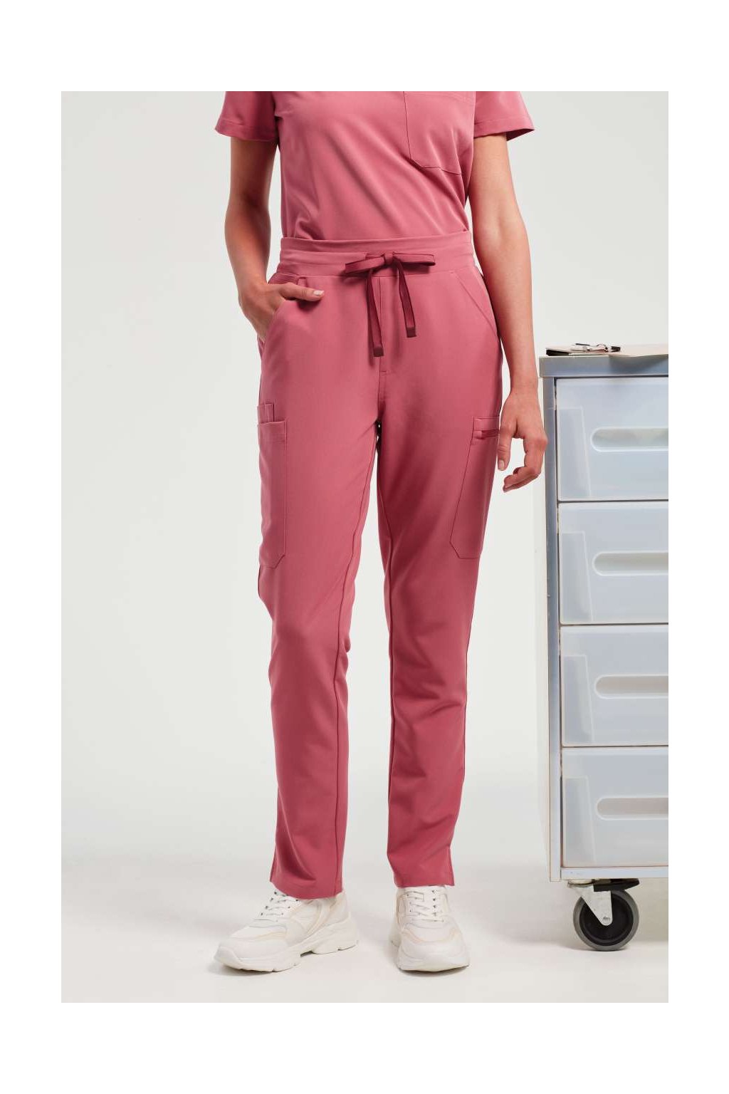 Dámské parovní kalhoty s částečně elasickým pasem, vícero kapsami na mobil, mince a na zip. Větrací otvory na spodním lemu. Jsou vyrobeny ze čtyřsměrného streče pro snadný pohyb a pohodlí. Materiál je odolný proti mačkání a tedy snadný na údržbu. Certifikovaný výrobek.