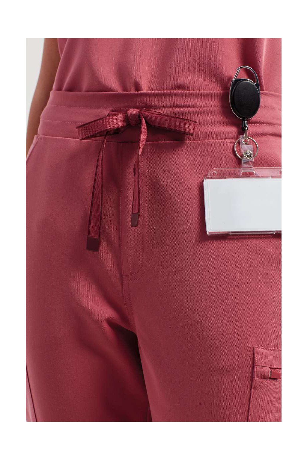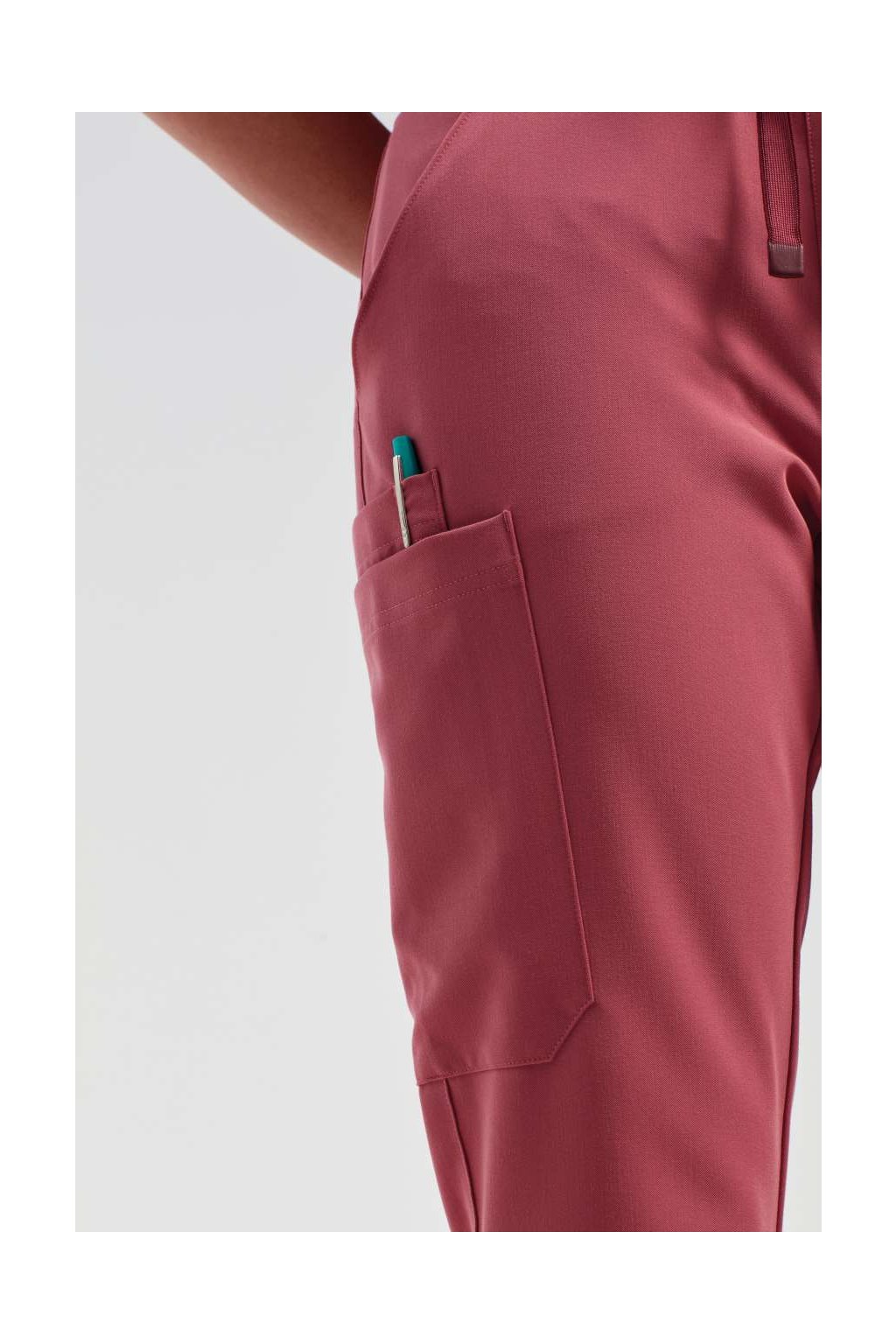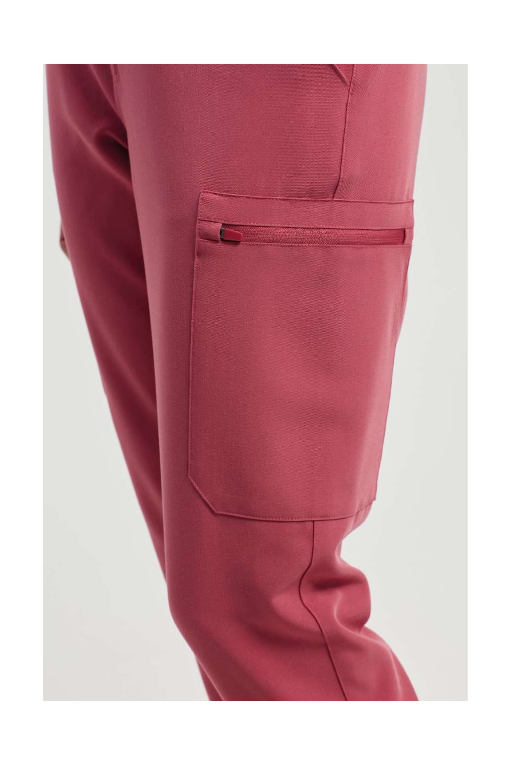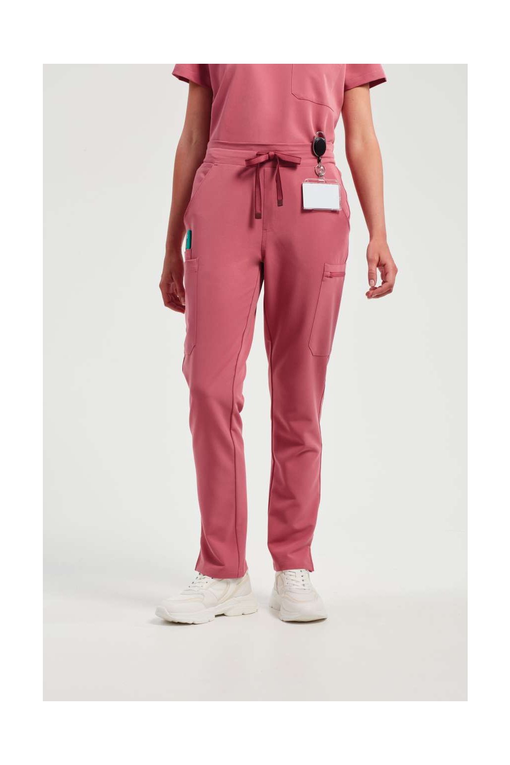 Dámské parovní kalhoty s částečně elasickým pasem, vícero kapsami na mobil, mince a na zip. Větrací otvory na spodním lemu. Jsou vyrobeny ze čtyřsměrného streče pro snadný pohyb a pohodlí. Materiál je odolný proti mačkání a tedy snadný na údržbu. Certifikovaný výrobek.