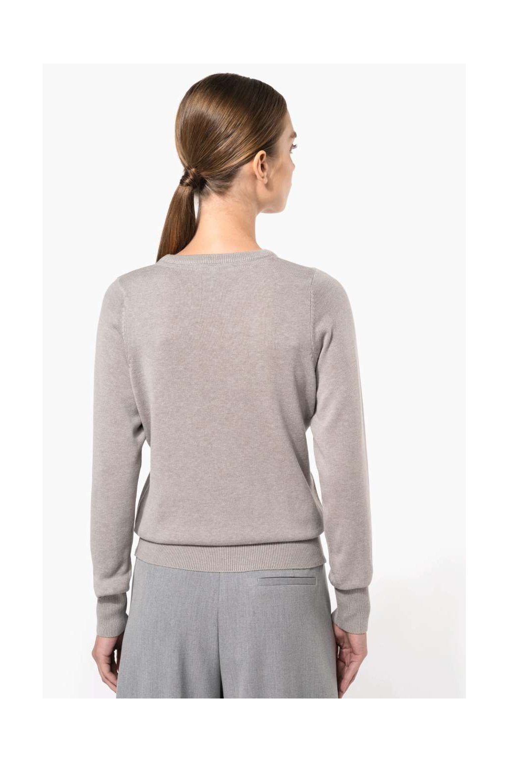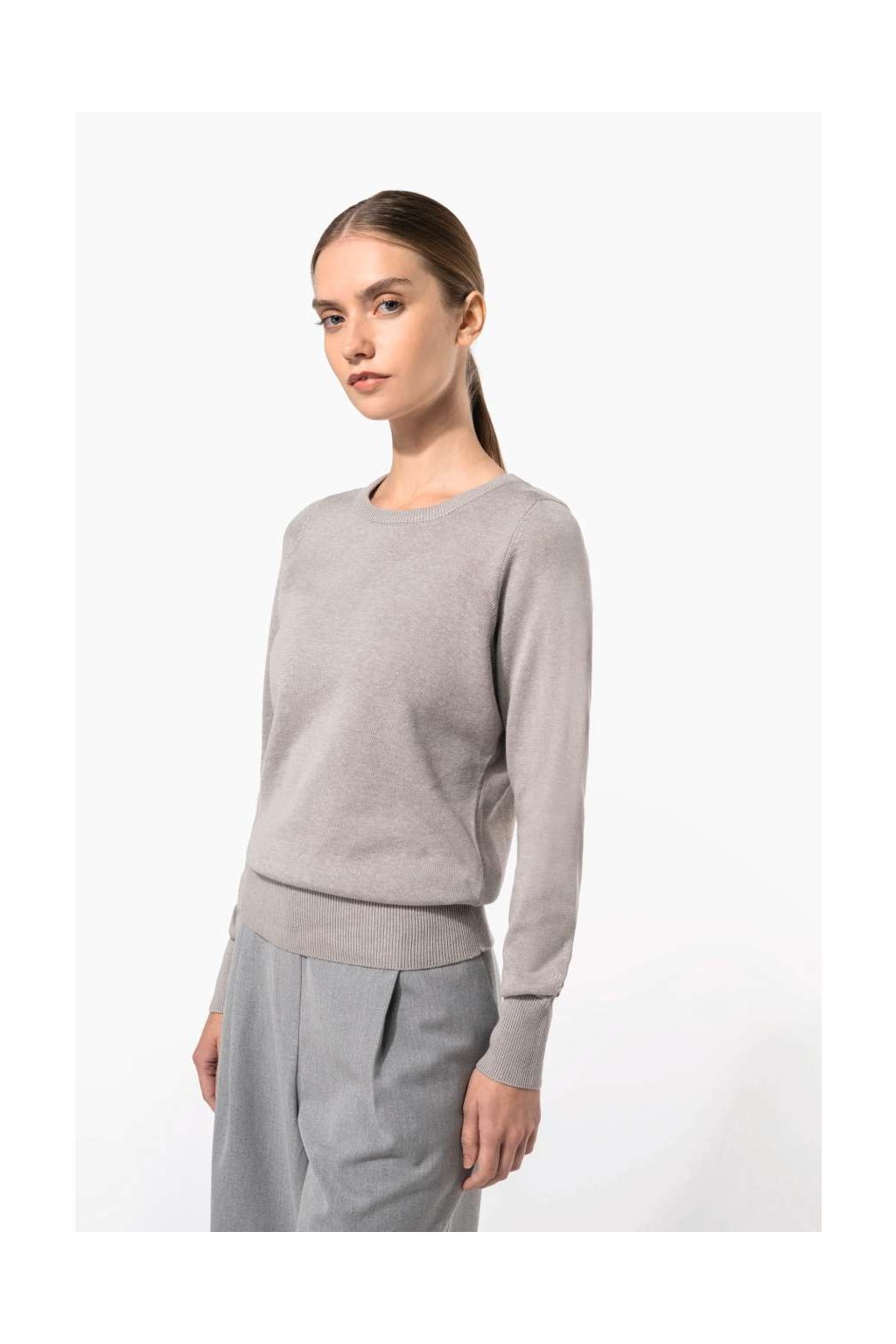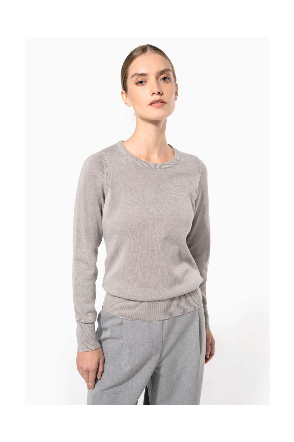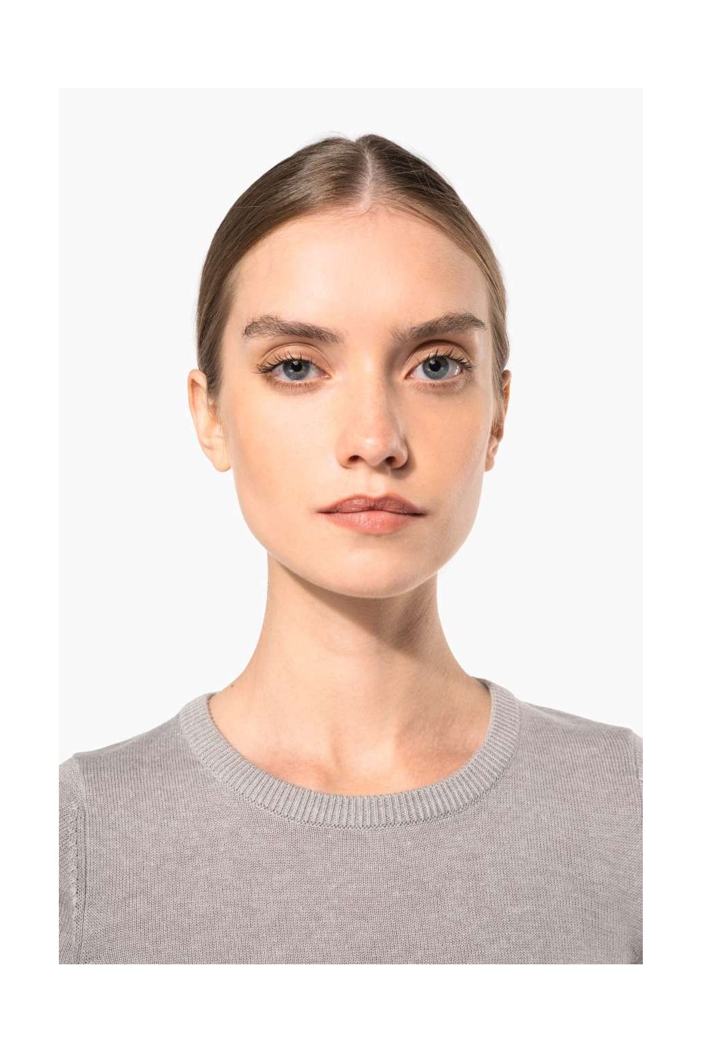 Dámský svetr vypasovaného stylu, dvouvrstvé žebrování u krku, podšitý průkrčník. Vhodný pro každodenní nošení i do práce.