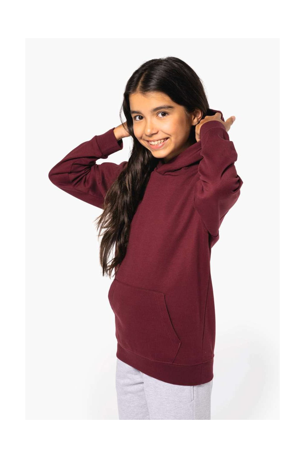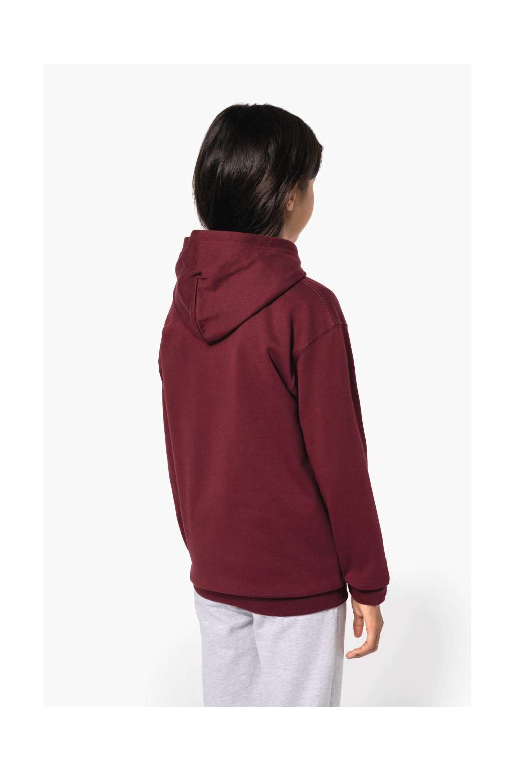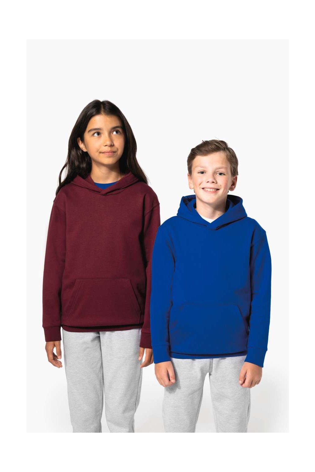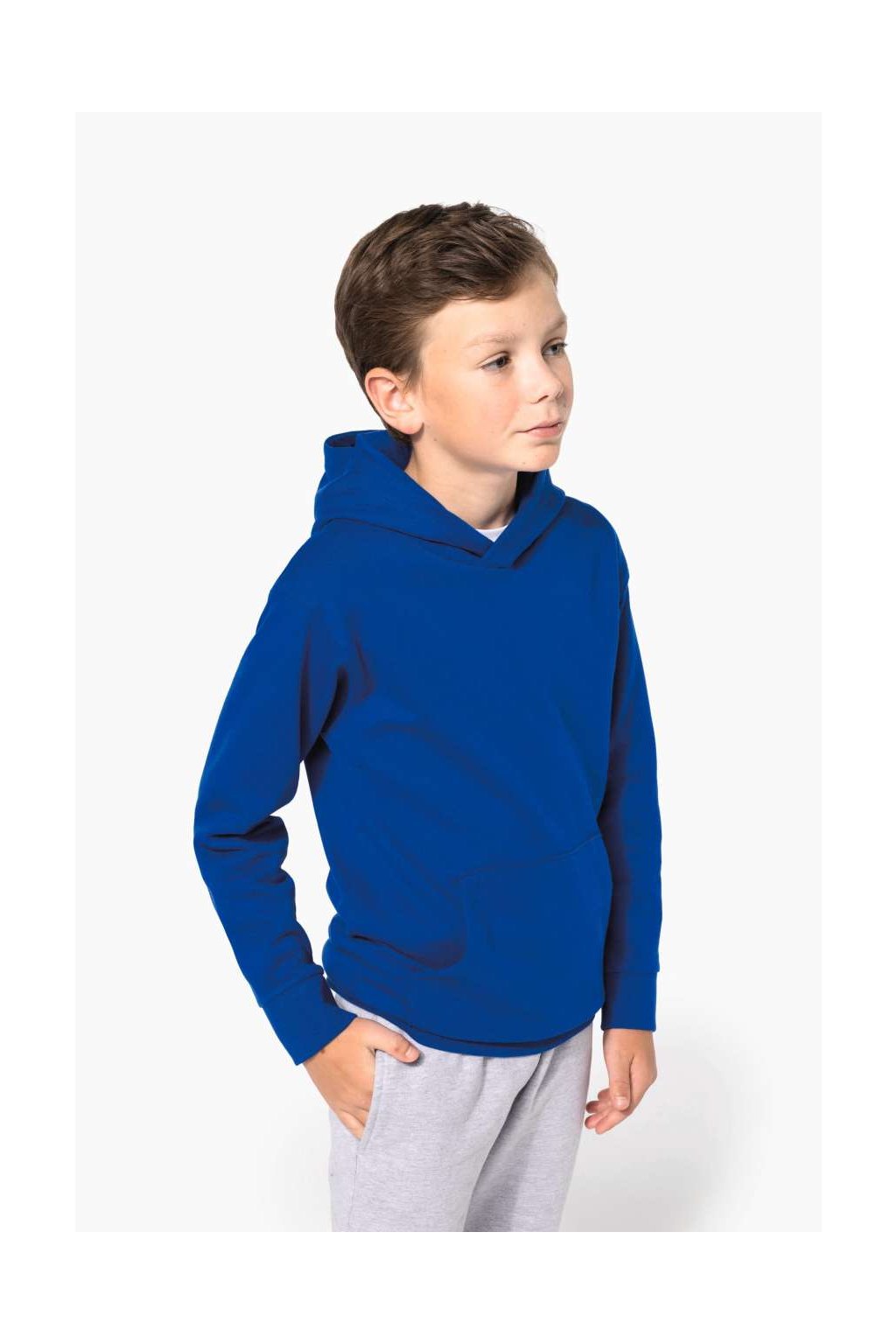 Měkká dětská mikina z kartáčového fleecu. Mikina má praktickou kapuci a velkou klokaní kapsu. Mikina je vyrobena tunelovým střihem.