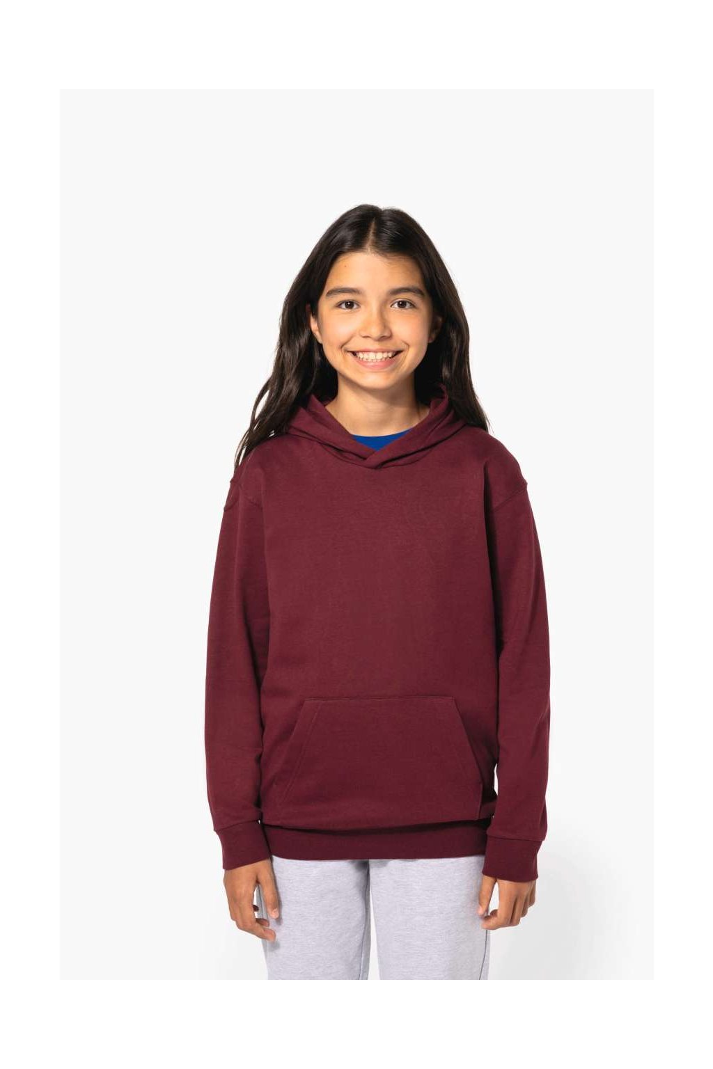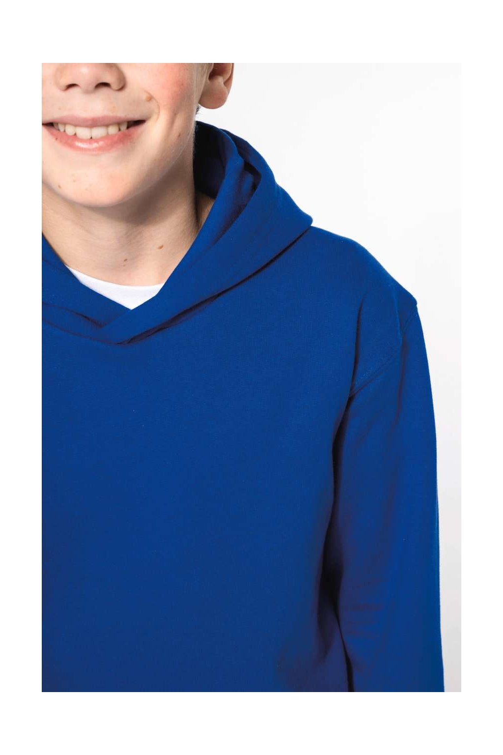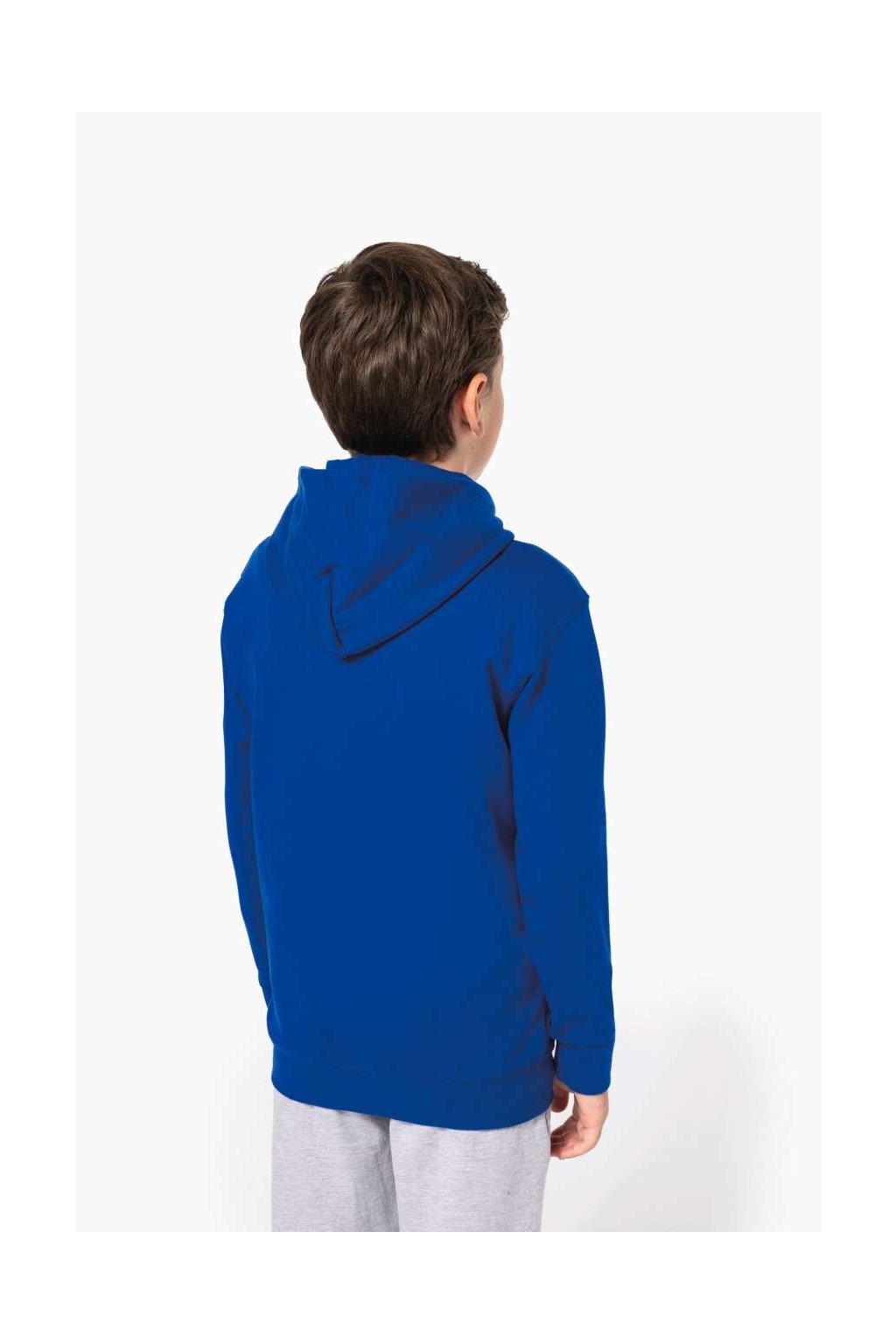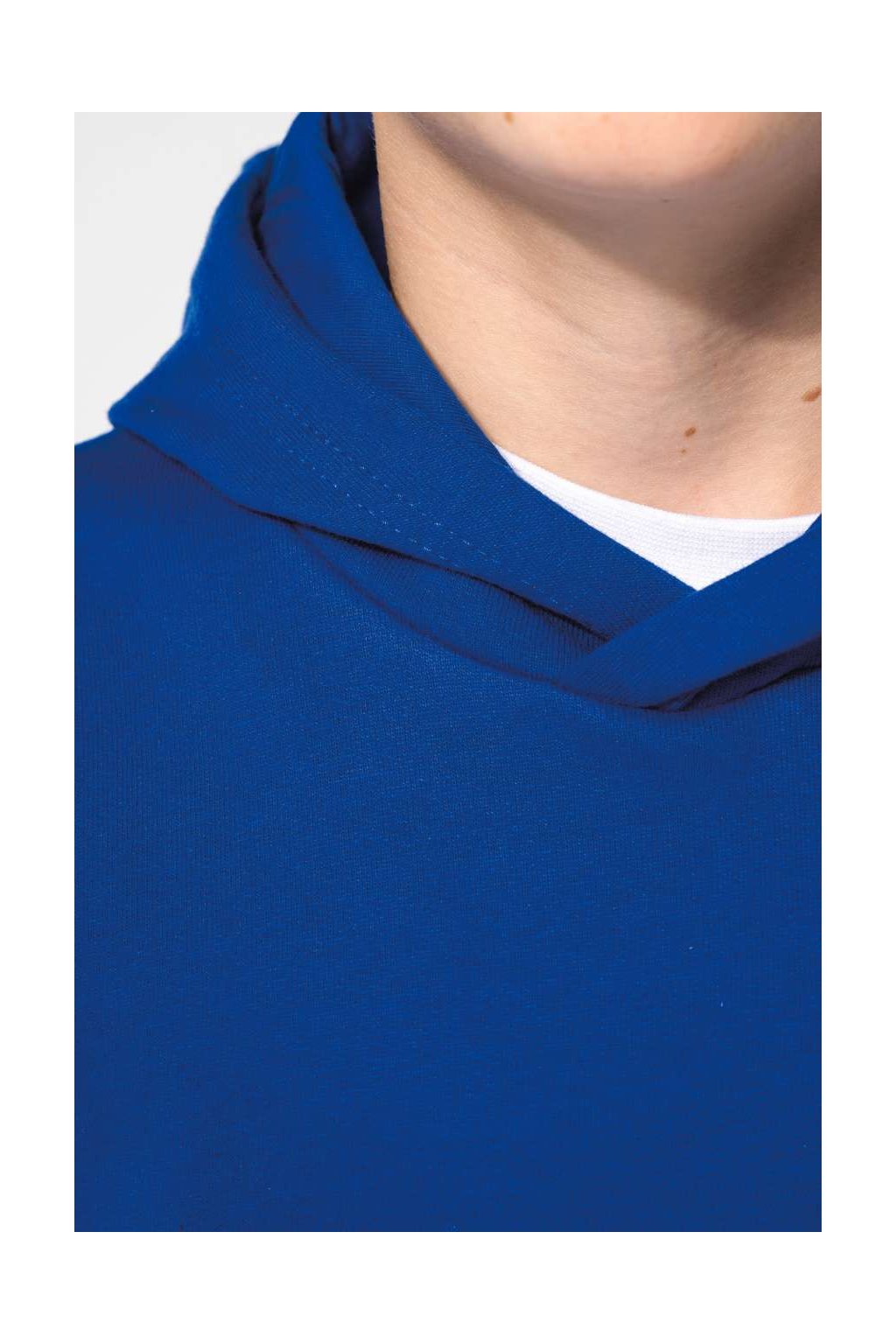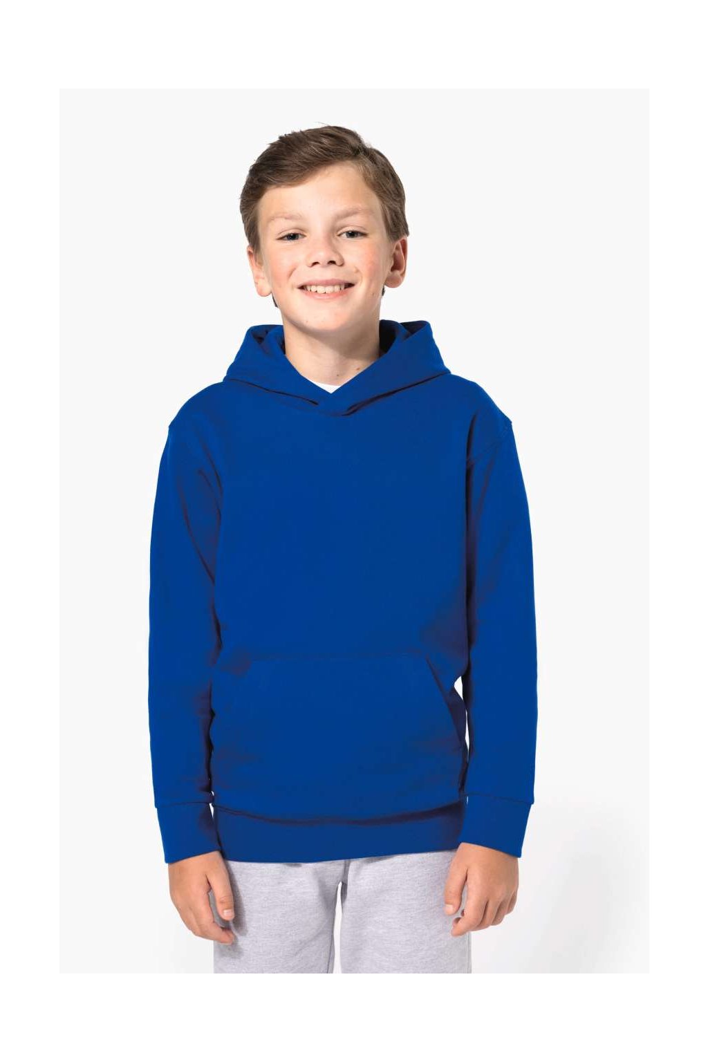 Měkká dětská mikina z kartáčového fleecu. Mikina má praktickou kapuci a velkou klokaní kapsu. Mikina je vyrobena tunelovým střihem.