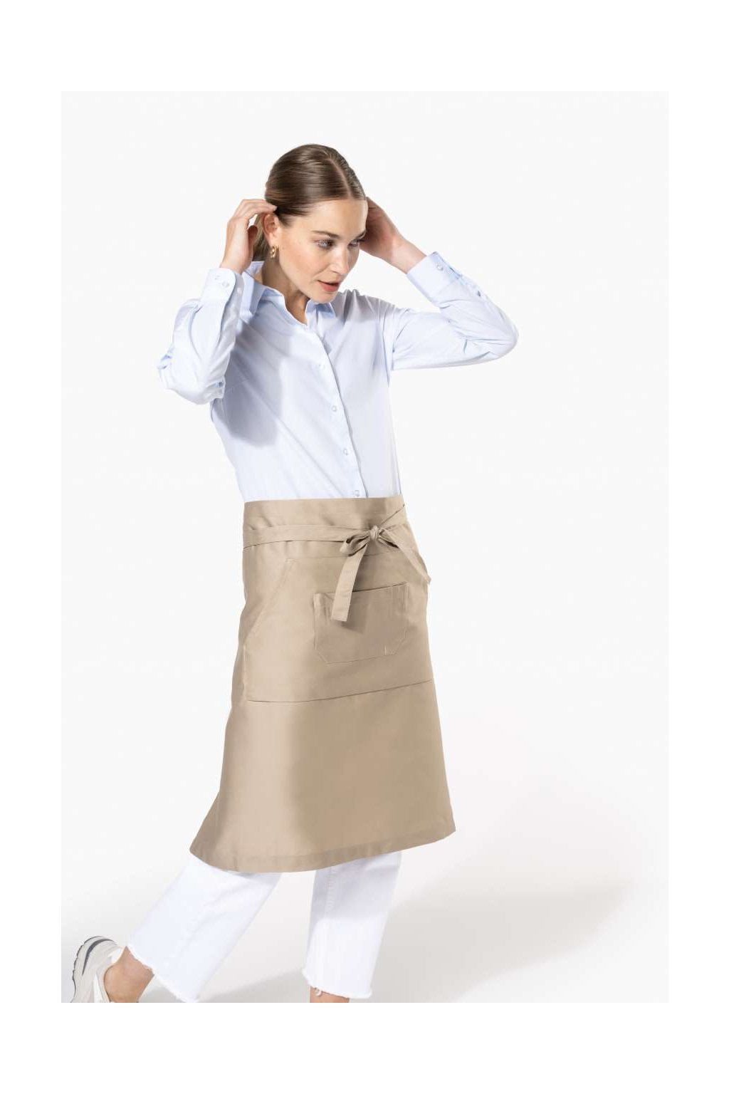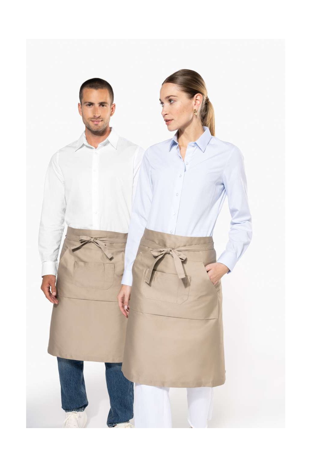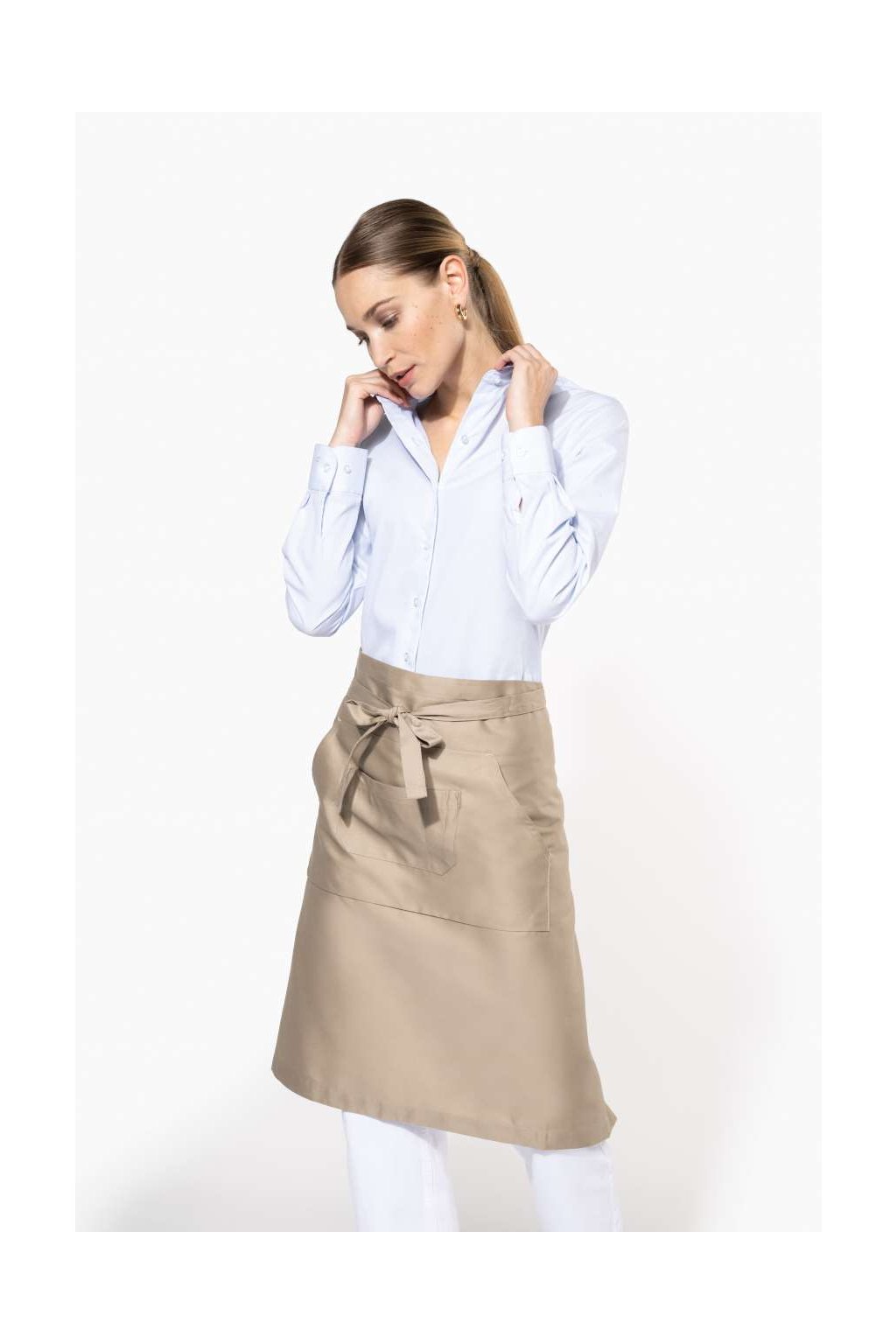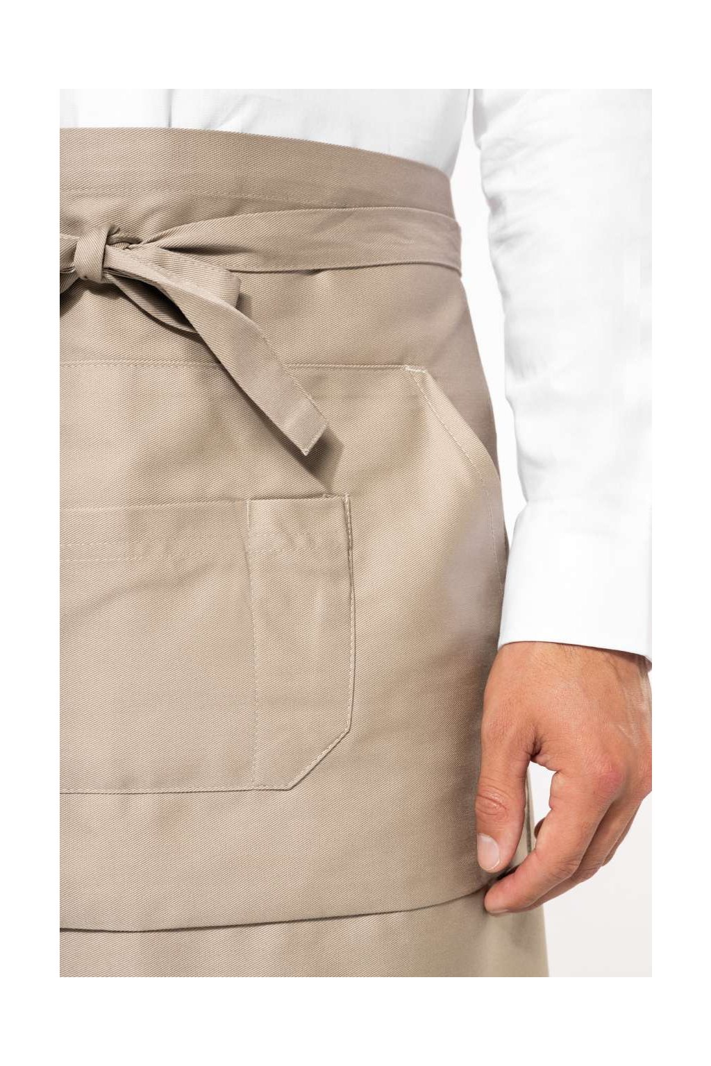 Tato zástěra je nejen velmi praktická ale i barevně originální. Je vyhotovena tak, aby měla záměrně opraný vzhled. Tento výrobní proces má za následek barevné odchylky mezi výrobky a činí každý kus jedinečným. Má dvě kapsy, jednu klokaní a druhou rozdělenou na dva oddíly. Délka kapes je 24 cm a šířka 27,50 / 46 cm.