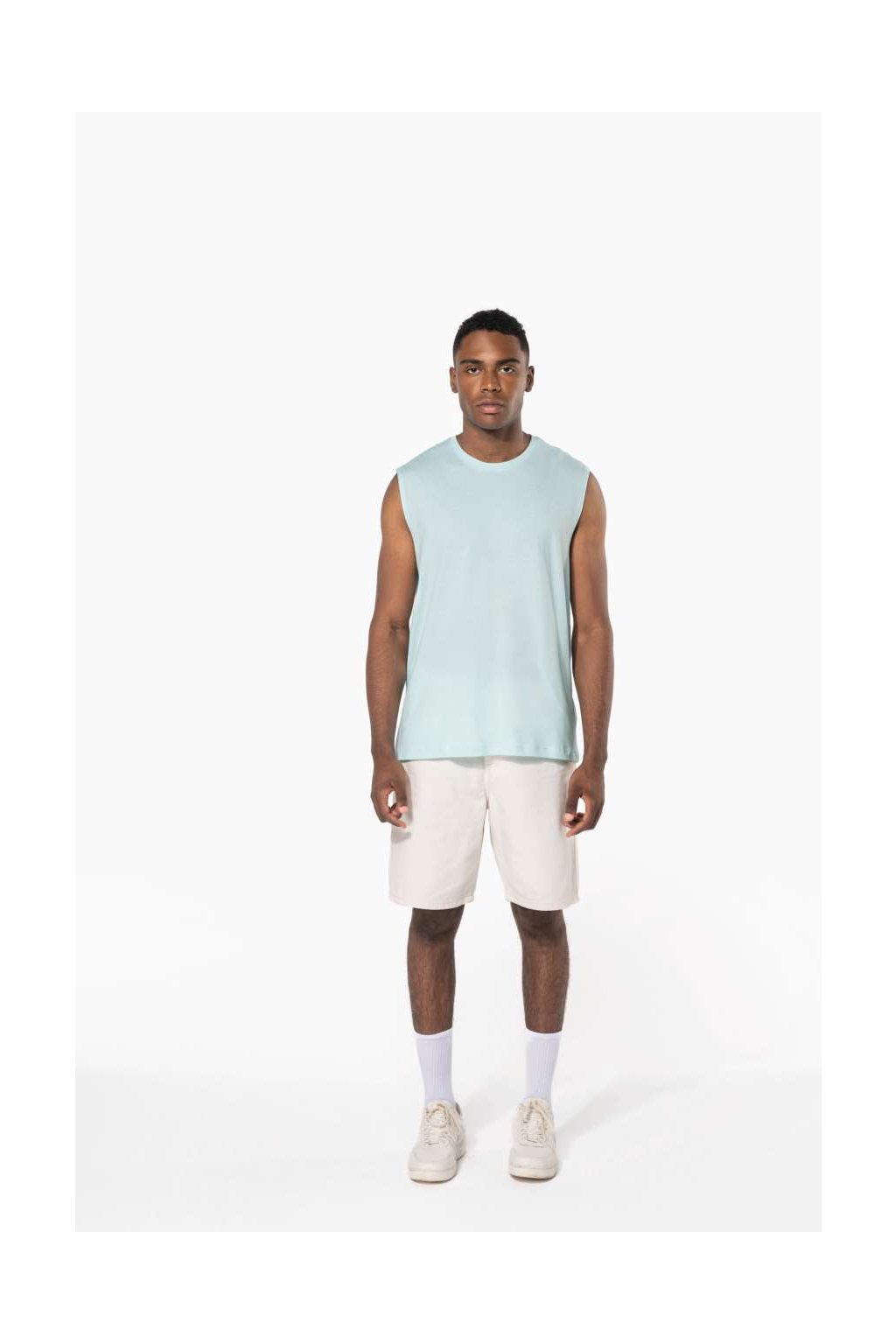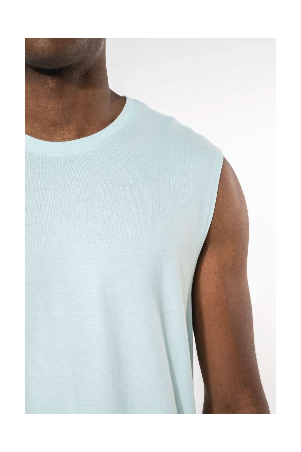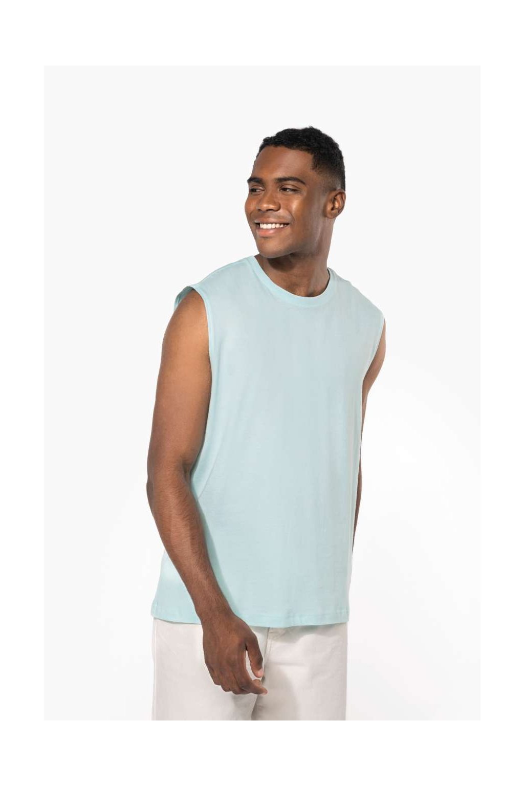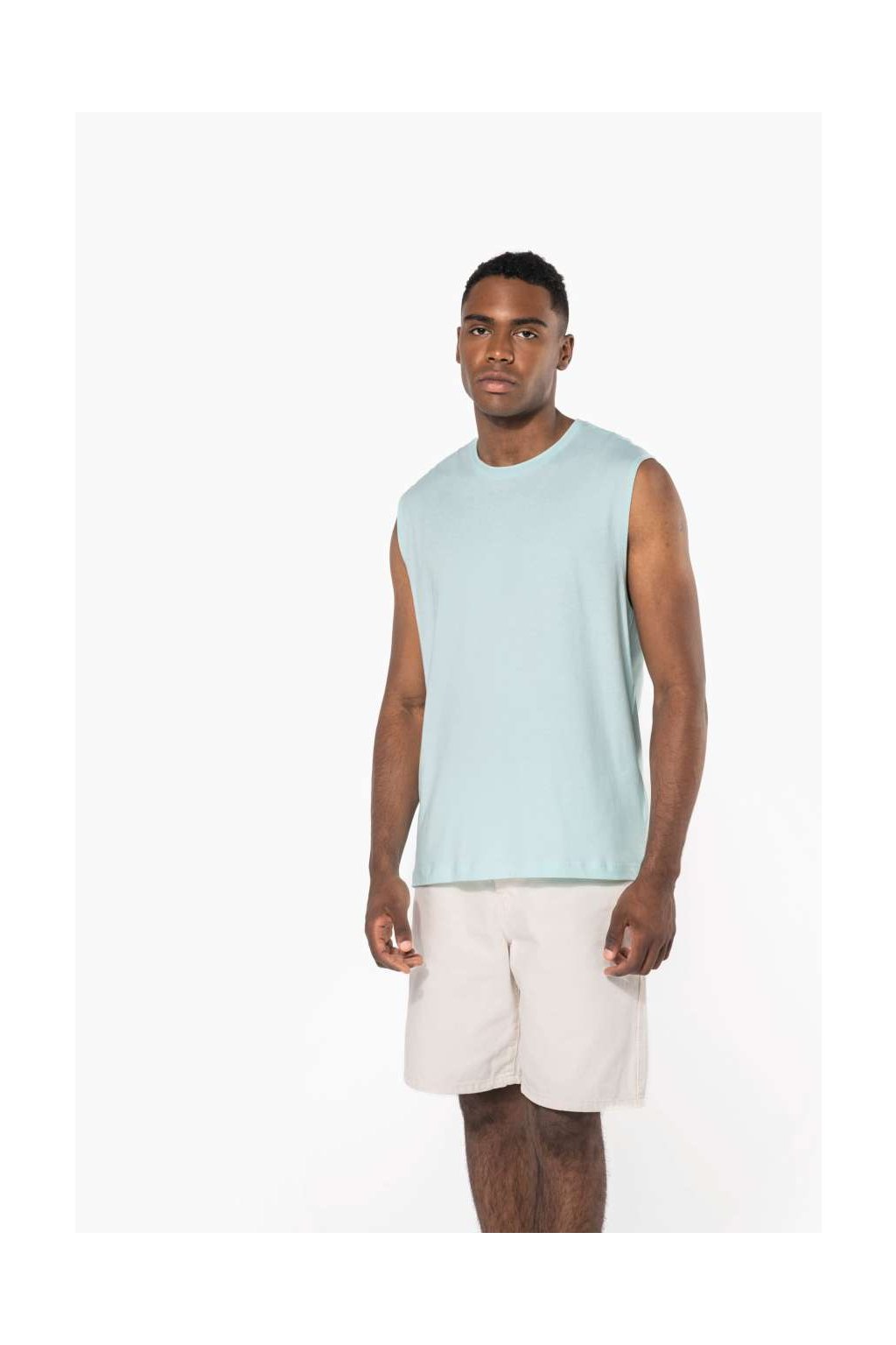 Slušivé tílko vyrobené z česané eko bavlny je velmi příjemné na dotek a pohodlné na nošení. Je slim fit střihu, takže pefektně padne. Na průramcích a spodní části prošité dvojitou jehlou.