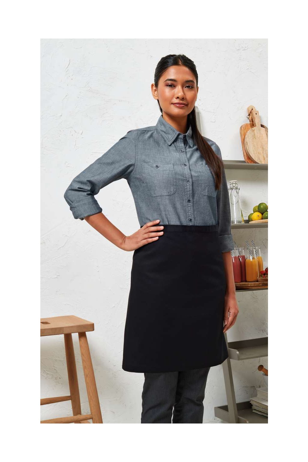 Krátká pracovní zástěra ideální pro gastro je vyrobena z 100% bavlněného kepru s certifikací Fairtrade.