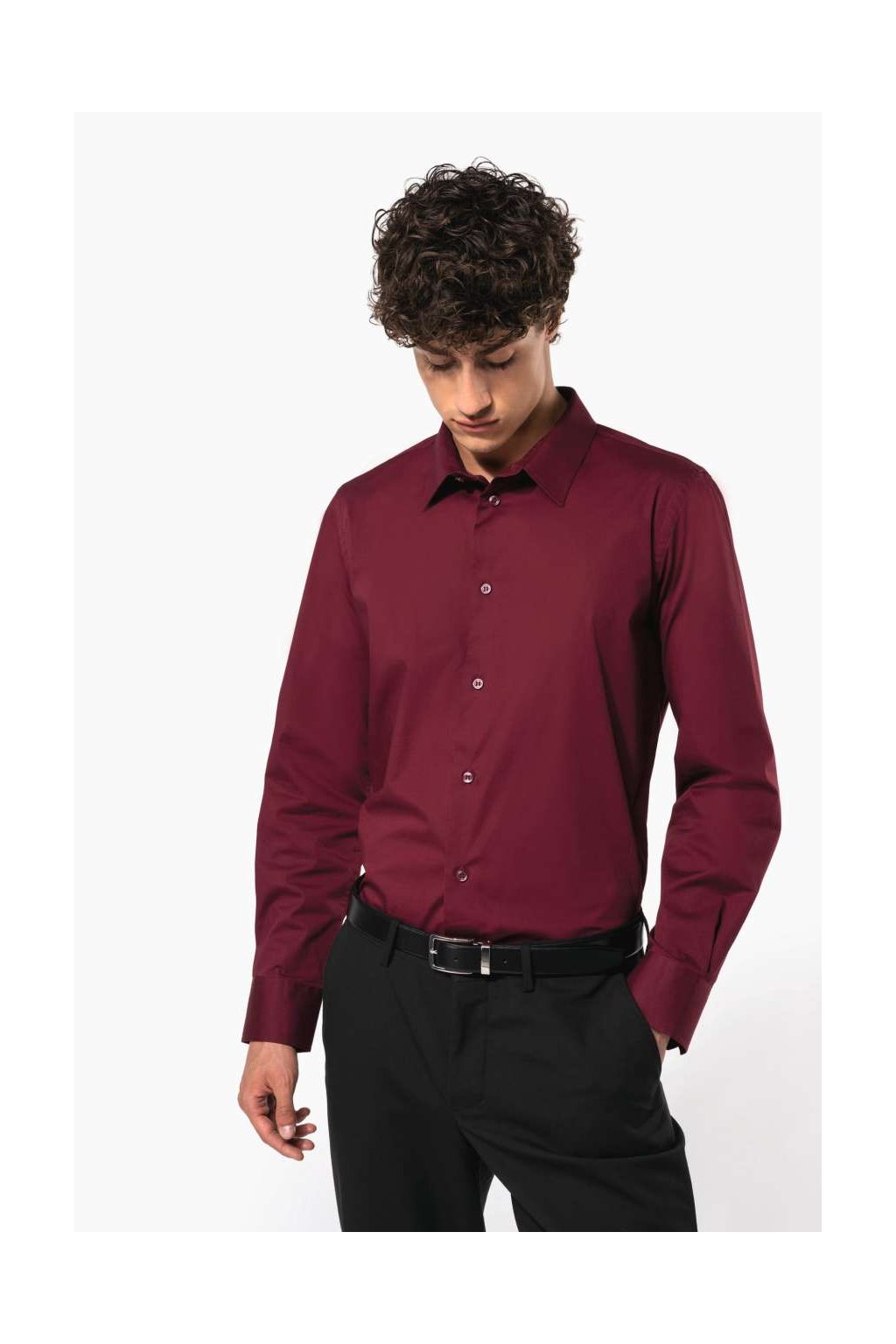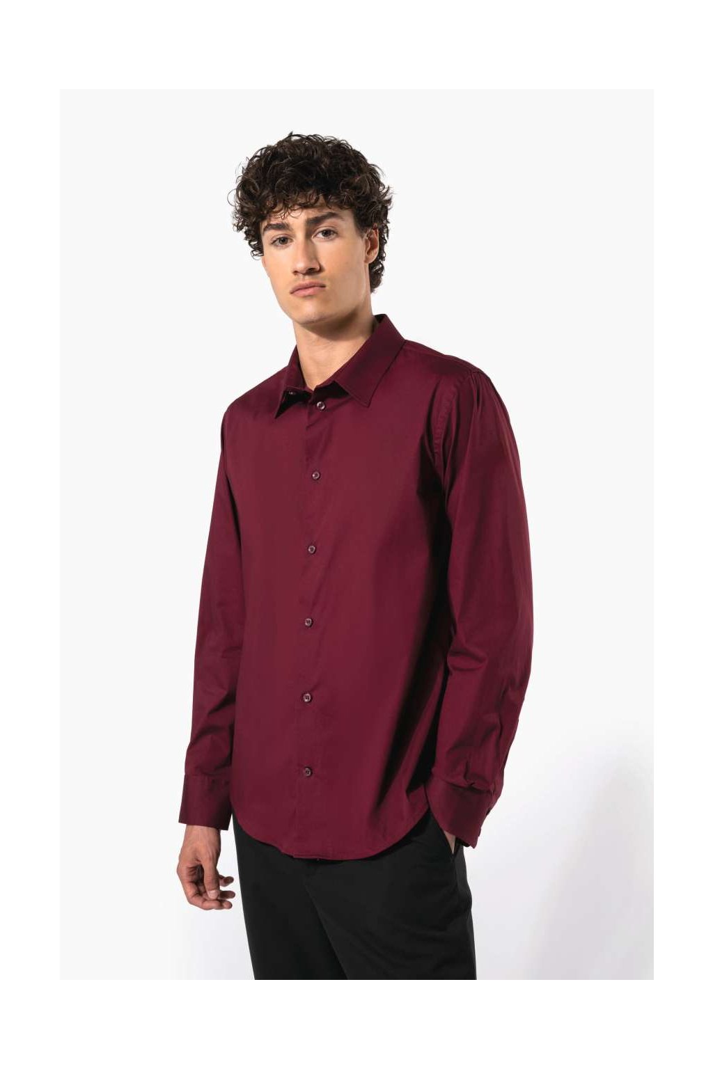 Tato košile Vám bude padnout jako ulitá, díky příměsi elastanu. Poskytne Vám také větší komfort při nošení. Na rukávech jsou manžety nastavitelné na knoflíky. Dole je zaoblený lem.