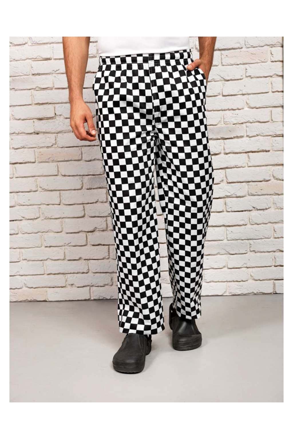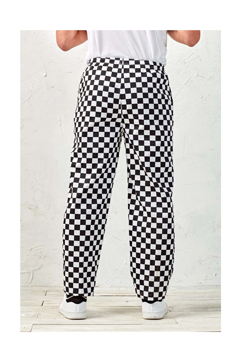 Unisex kuchařské kalhoty s výrazným vzorem mají elastický pas pro snadné natažení kalhot a praktické boční kapsy.