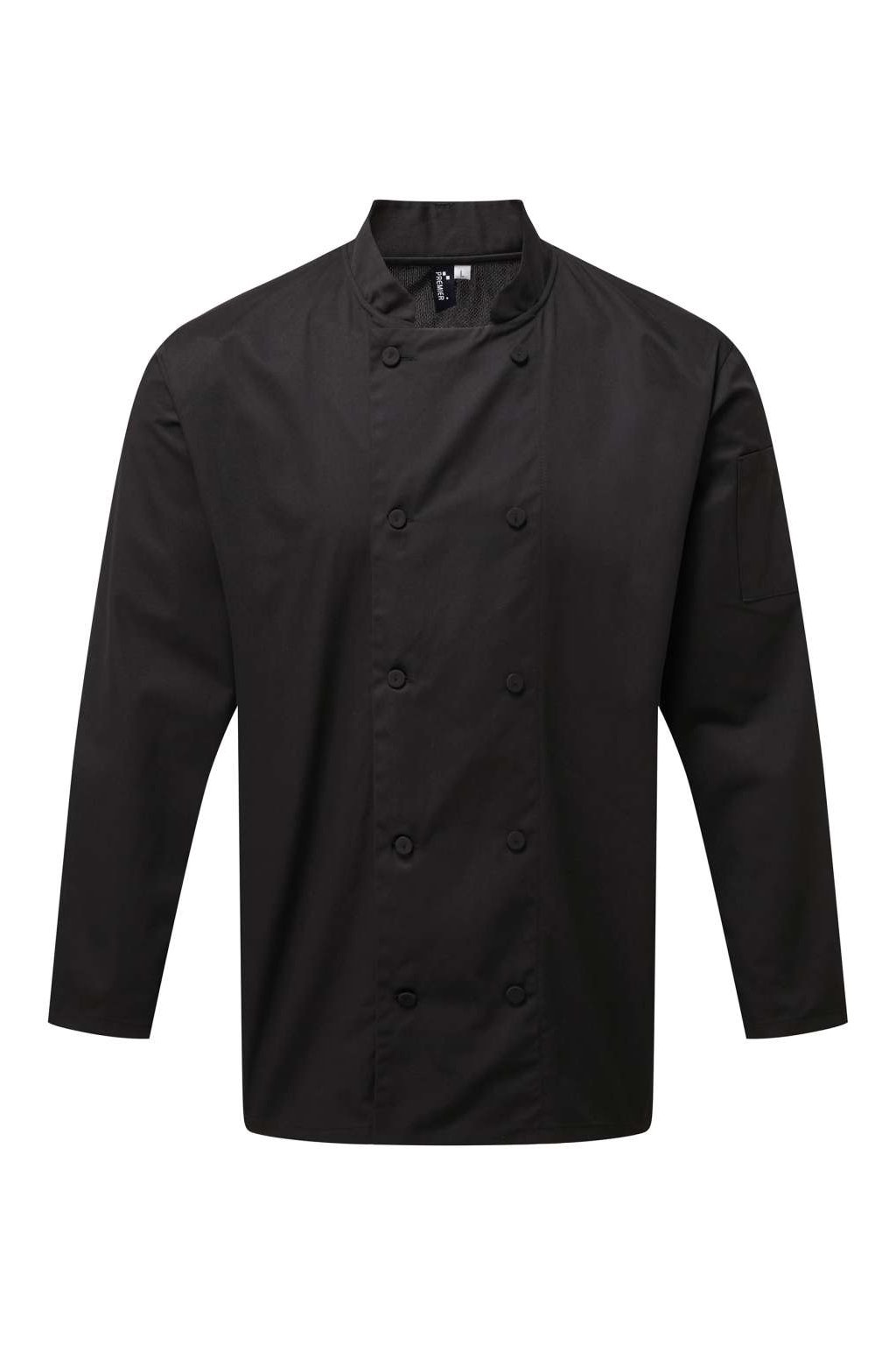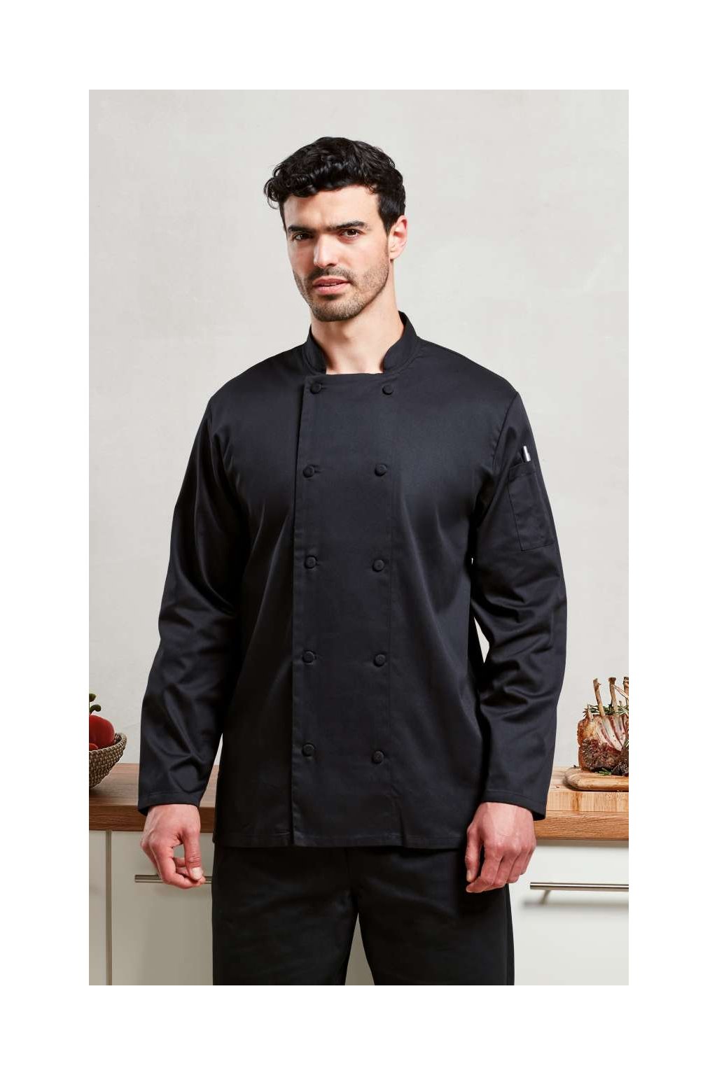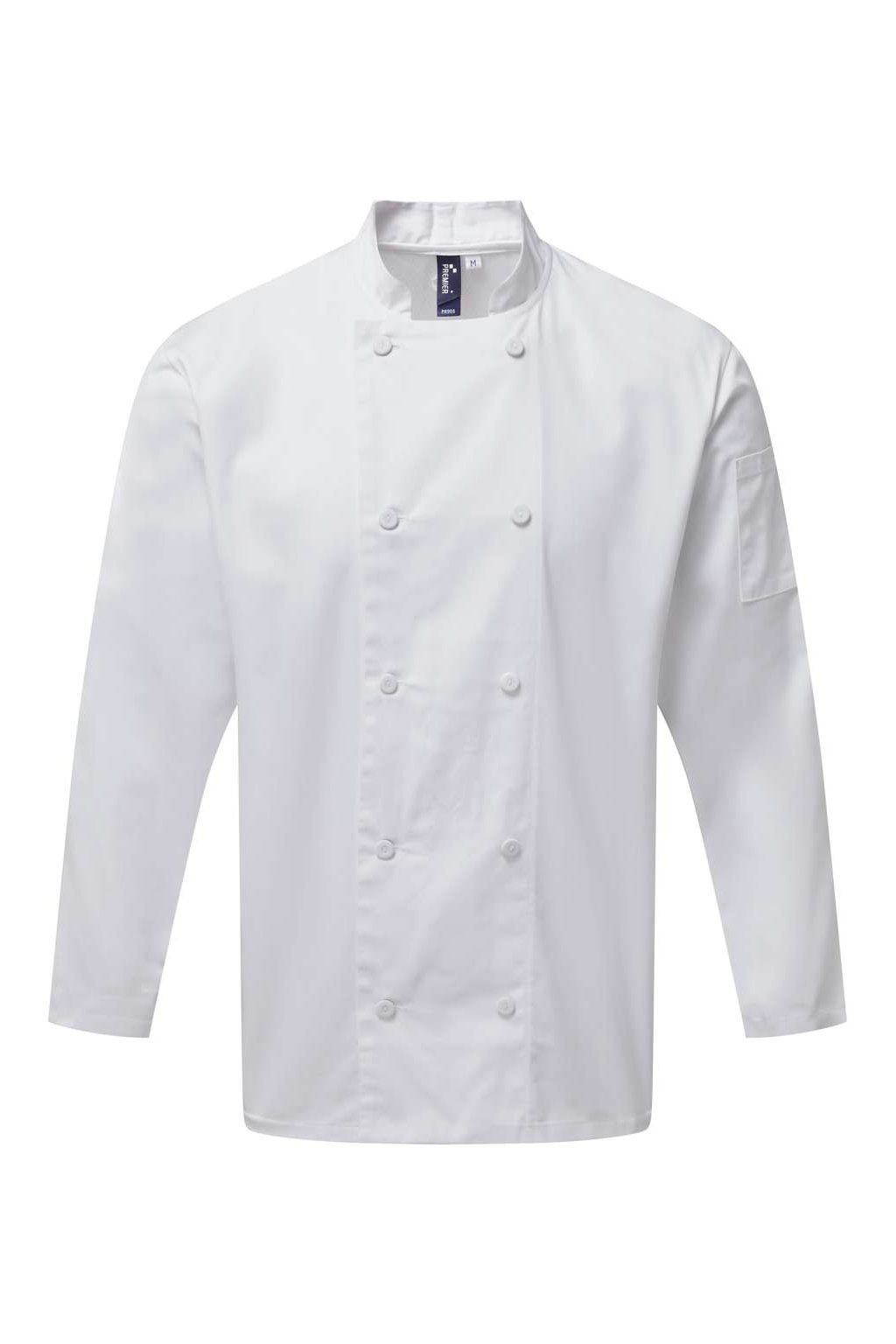 Kuchařský randon s dlouhým rukávem je velmi praktický pro všechny kuchaře v gastro službách. Mezi jeho skvělé vlastnosti patří i Coolchecker®, materiál pro odvod vlhkosti, dvojitá kapsa na pero, mandarínský límec, zapínání na knoflíky z látky a odvod vlhkosti. Randon je praktický i pro svoji jednoduchost na údržbu.