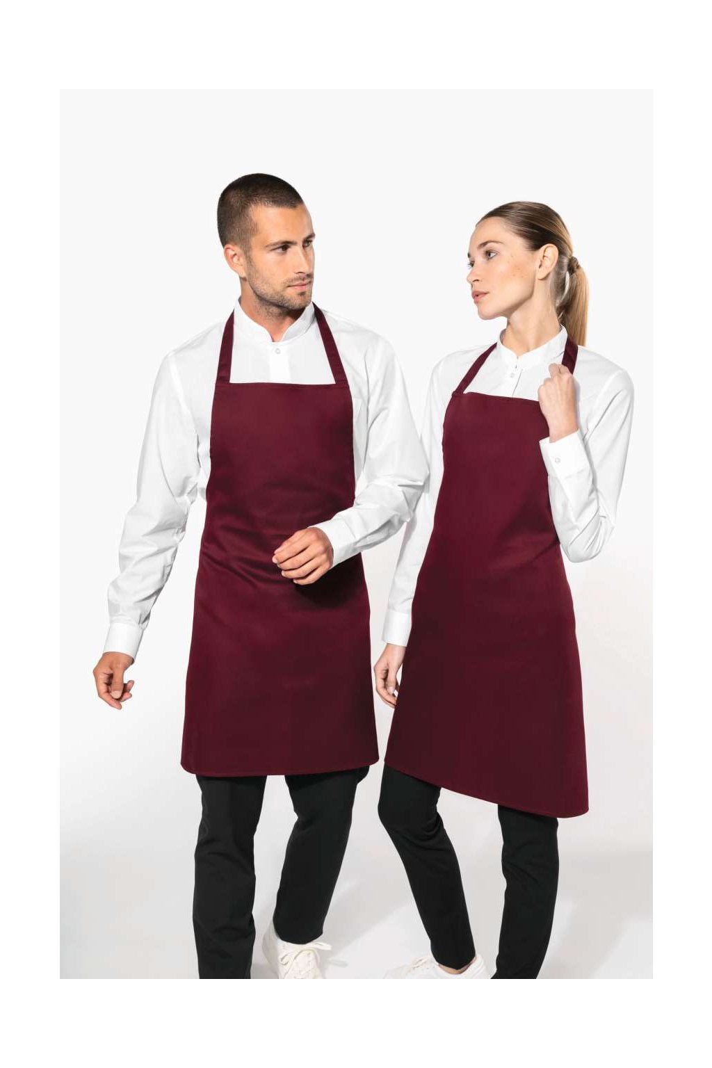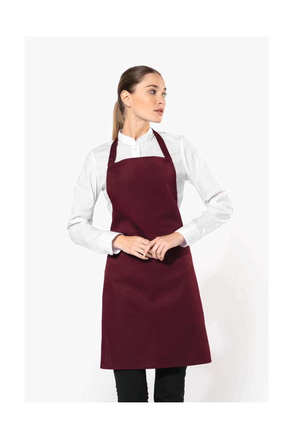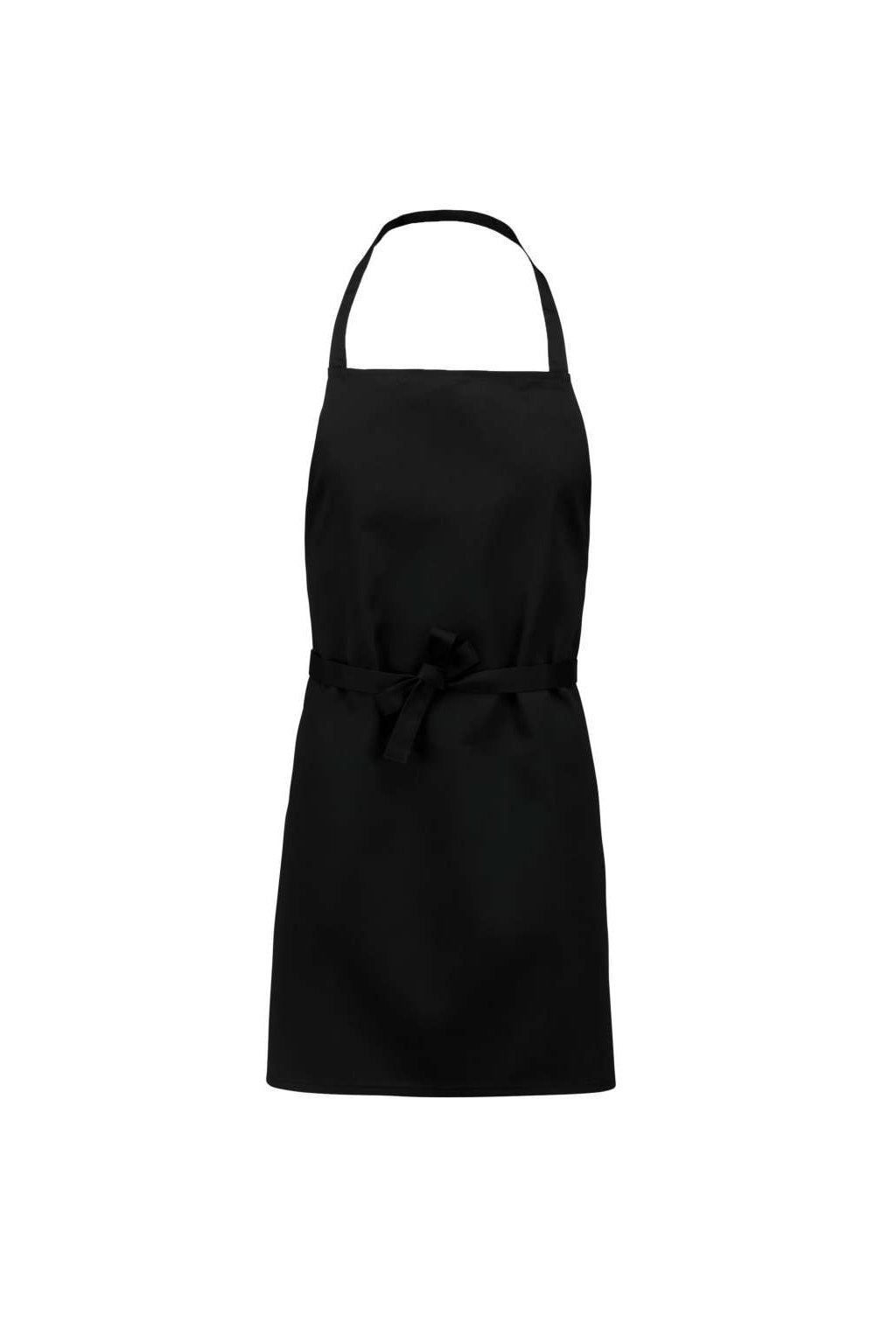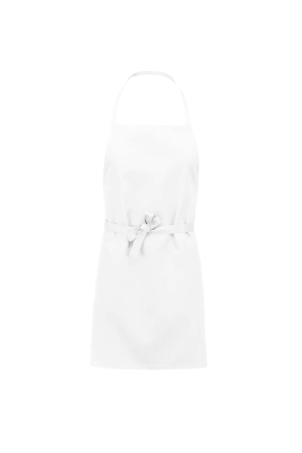 Lehká unisexová zástěra bez kapes má rozměry na délku 77 cm a na šířka 66 cm.