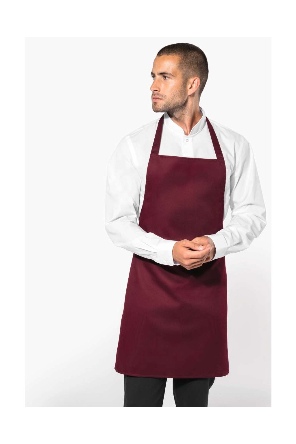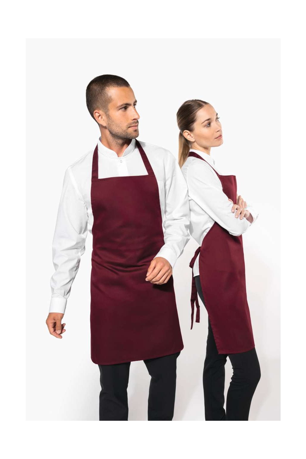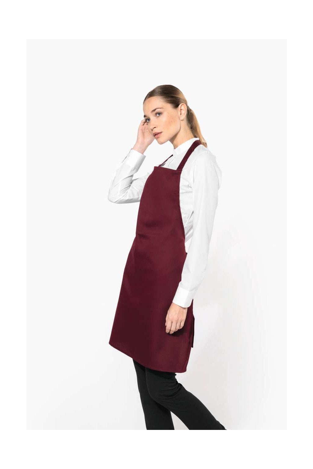 Lehká unisexová zástěra bez kapes má rozměry na délku 77 cm a na šířka 66 cm.