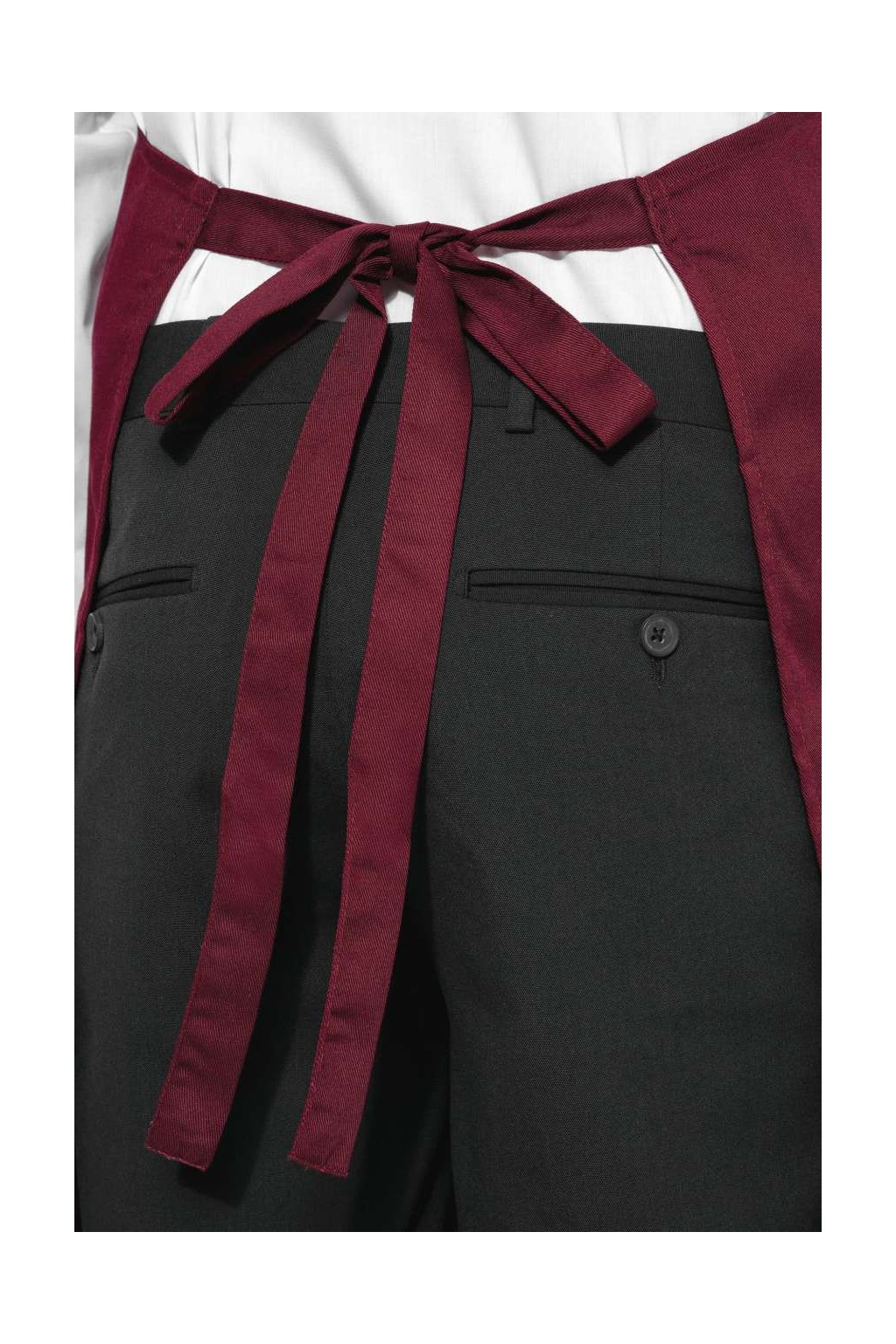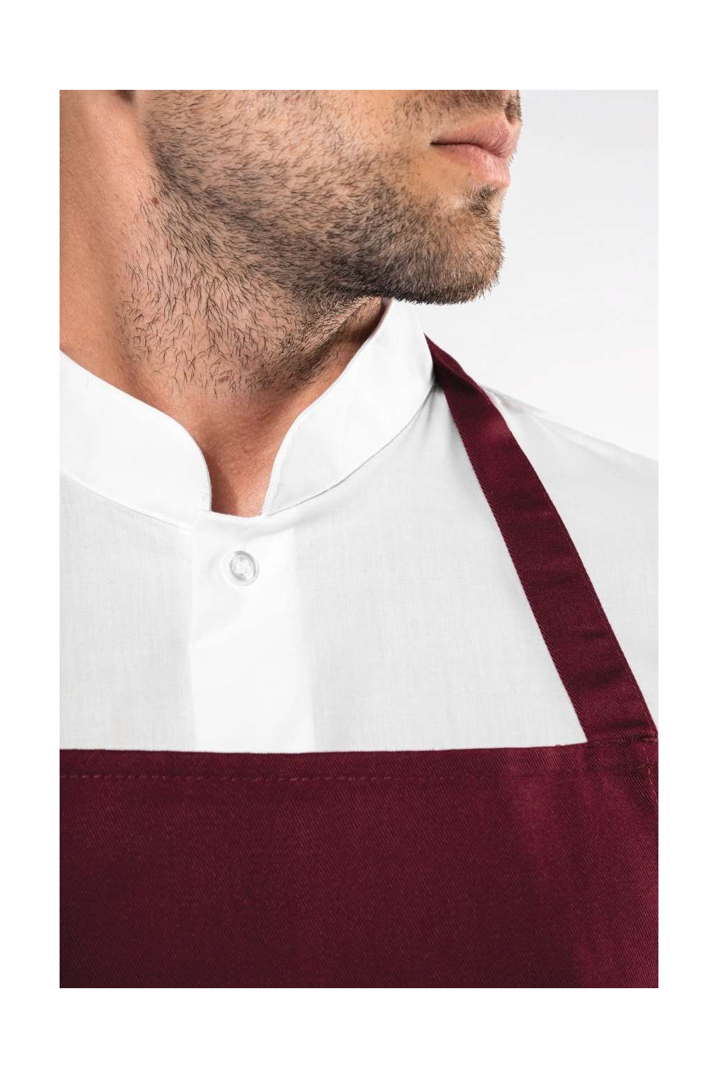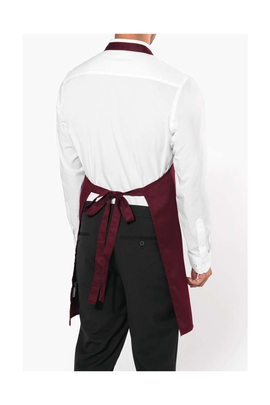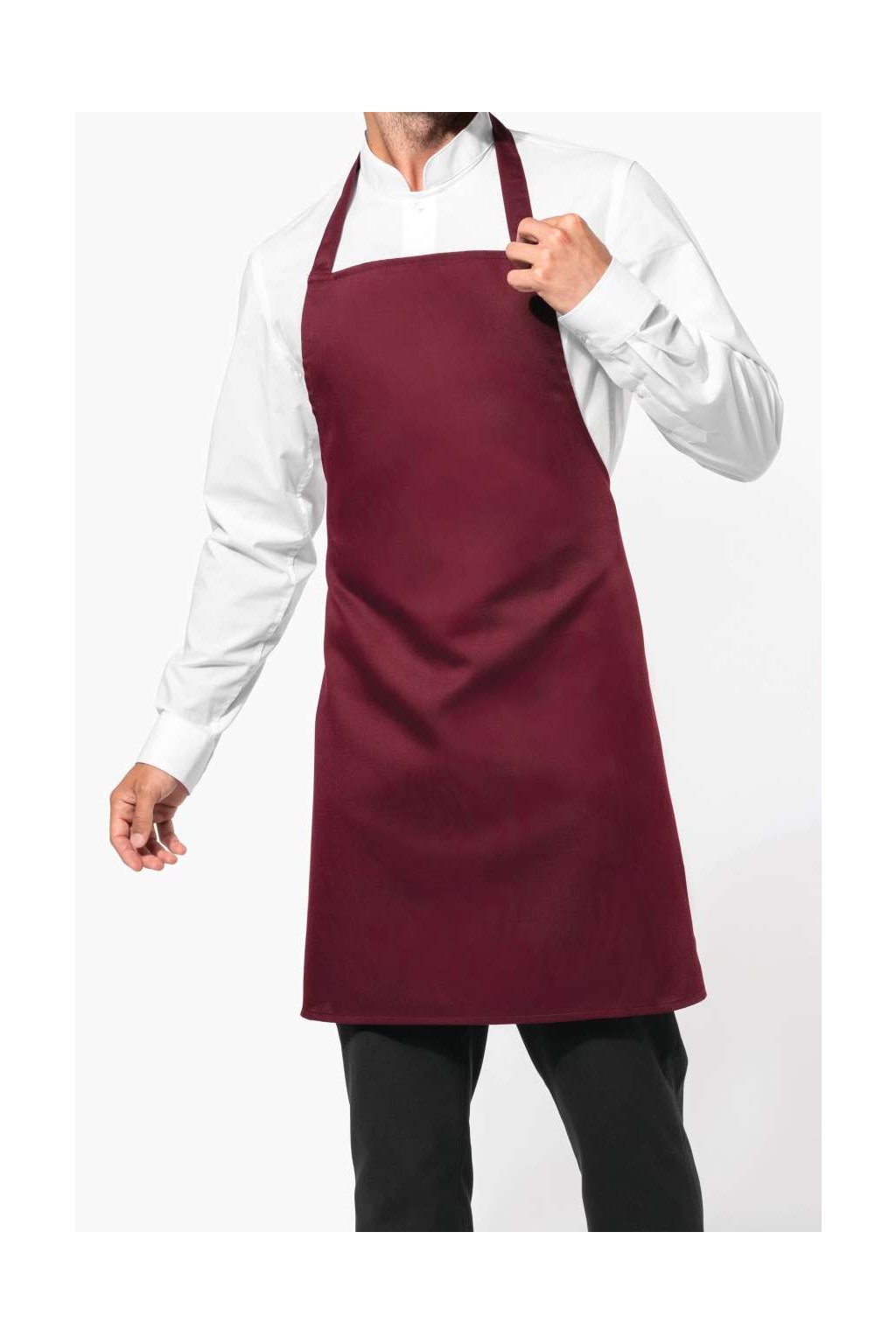 Lehká unisexová zástěra bez kapes má rozměry na délku 77 cm a na šířka 66 cm.