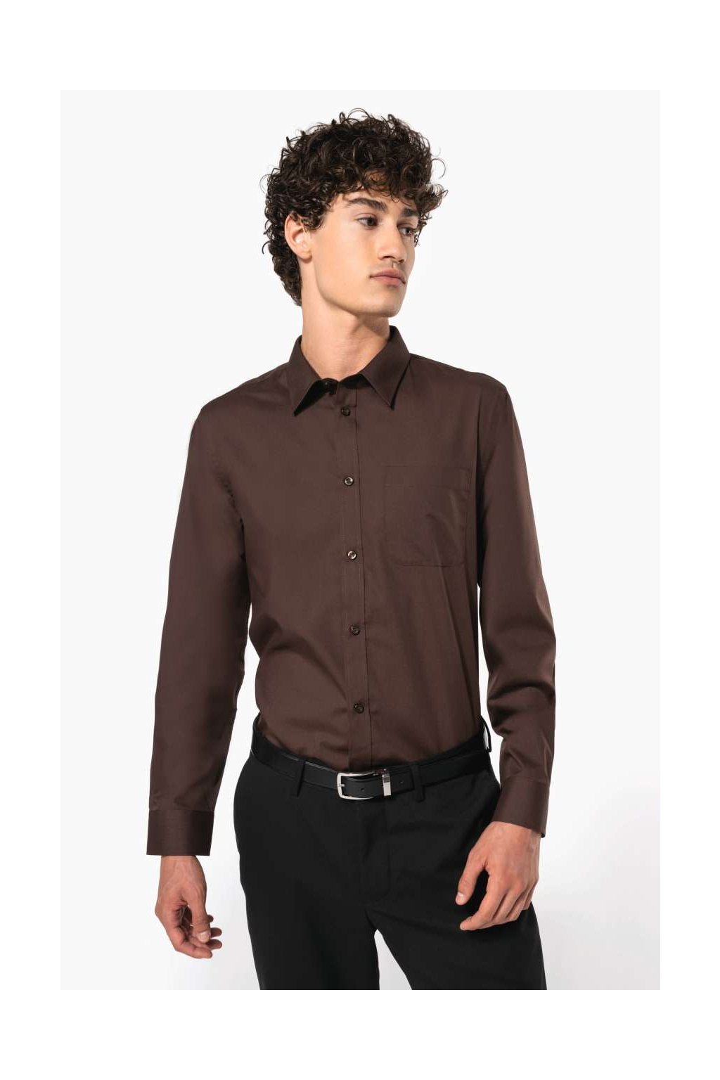 Pánská košile s dlouhým rukávem dostupná v mnoha barevných kombinacích je ušitá z tkaniny se snadnou údržbou. Vyztužený límec, barevně sladěné knoflíky, zakulacená náprsní kapsa na levé straně, dvojitá zadní výztuha, zapošité švy, nastavitelné kulaté manžety s légou, dva náhradní knoflíky.