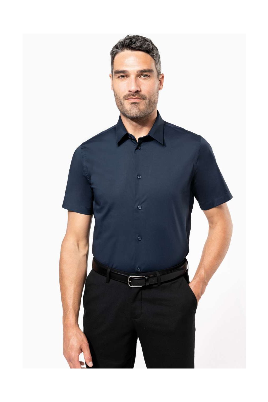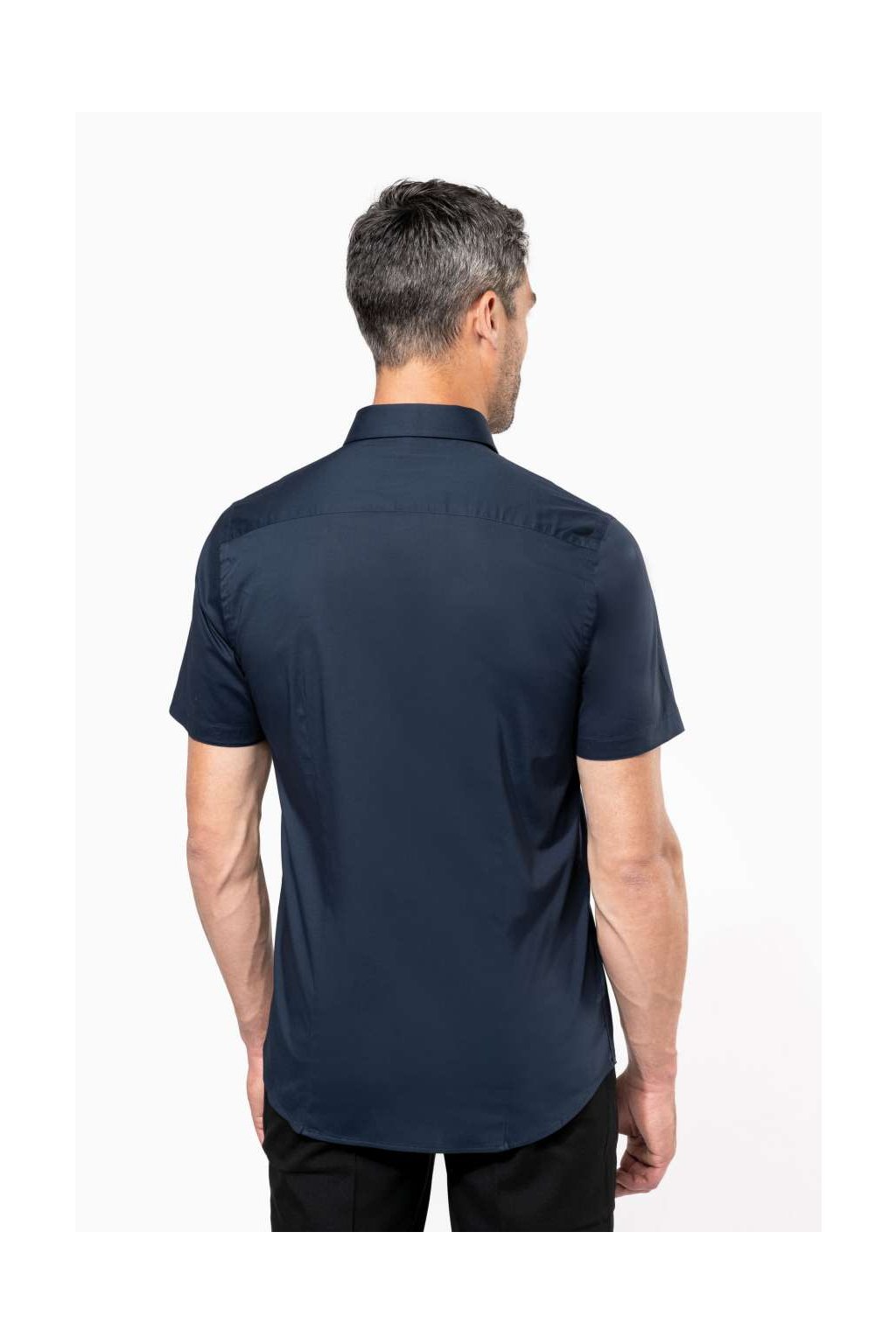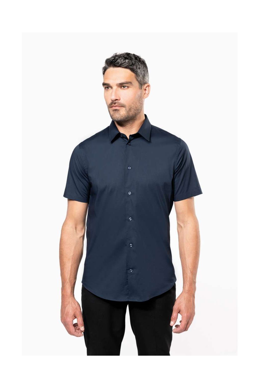 Tato košile s krátkým rukávem má podíl elastanu, díky kterému se košile lépe přizpůsobí Vašemu tělu a bude velmi pohodlná. Knoflíčky jsou v barvě košile. Spodní lem je elegantně zaoblený.