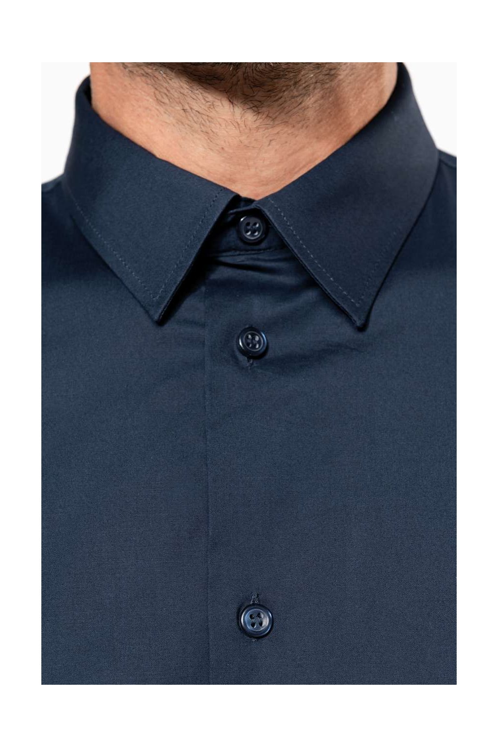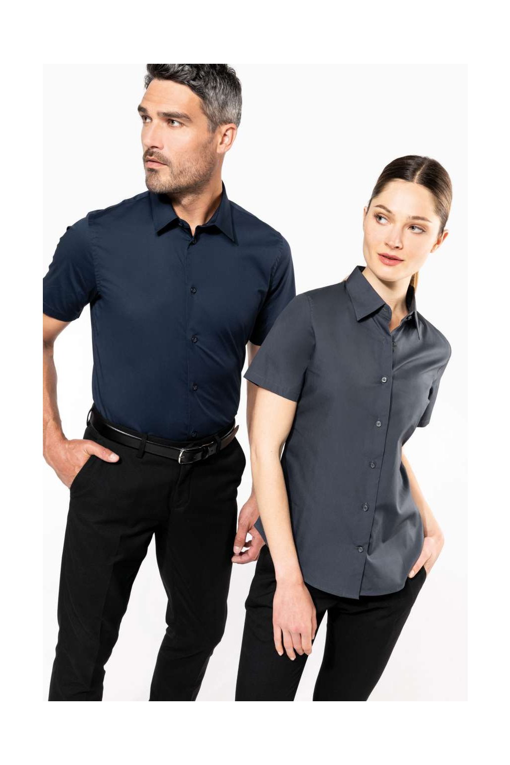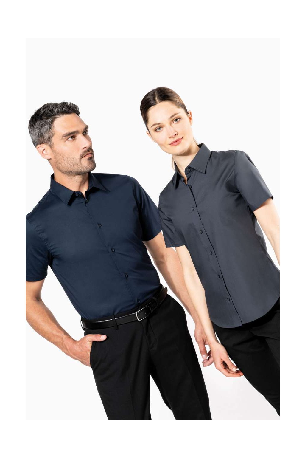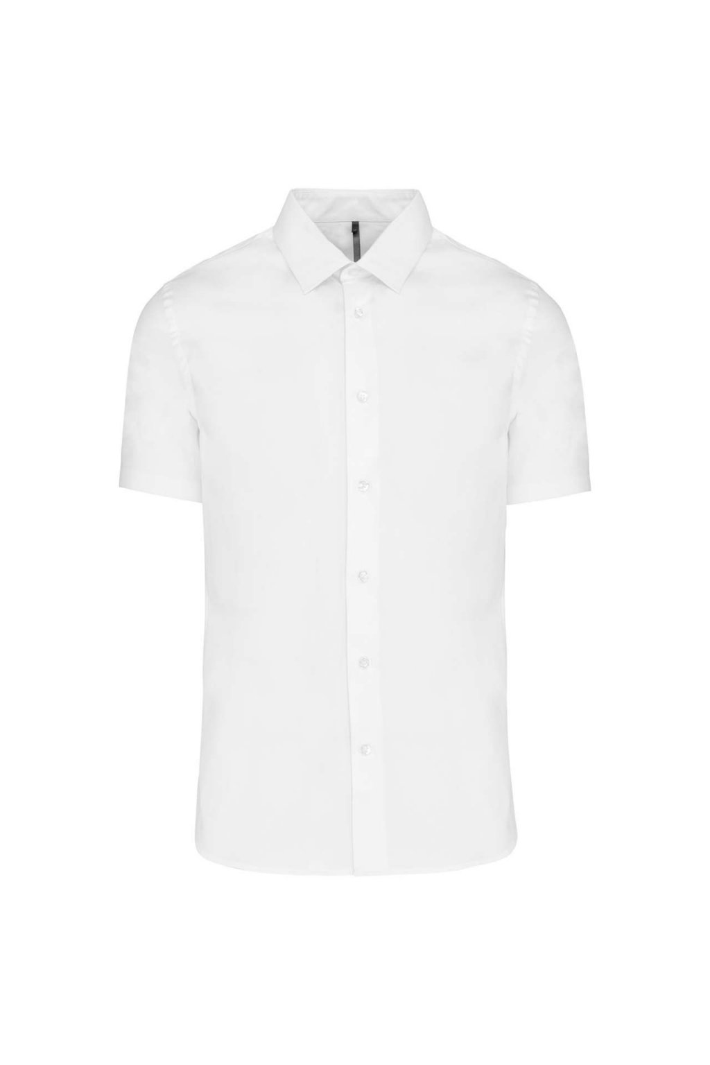 Tato košile s krátkým rukávem má podíl elastanu, díky kterému se košile lépe přizpůsobí Vašemu tělu a bude velmi pohodlná. Knoflíčky jsou v barvě košile. Spodní lem je elegantně zaoblený.