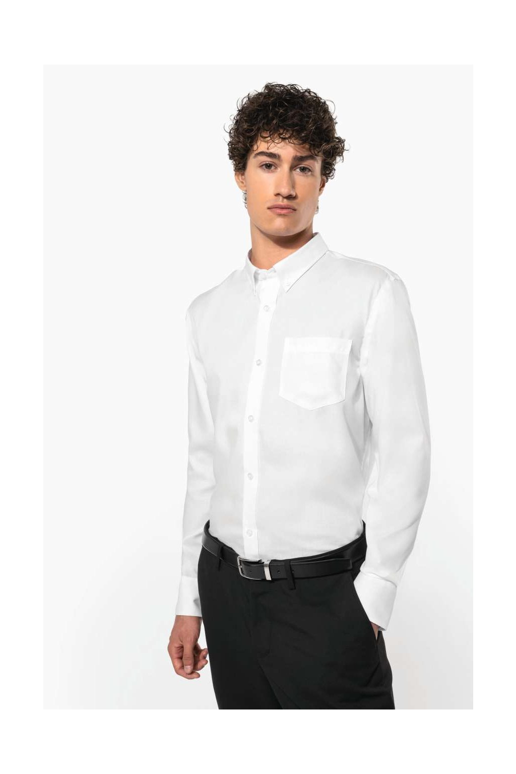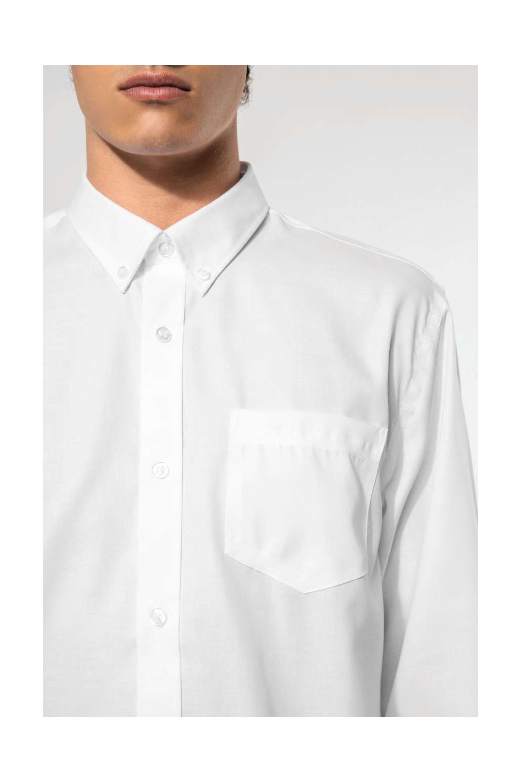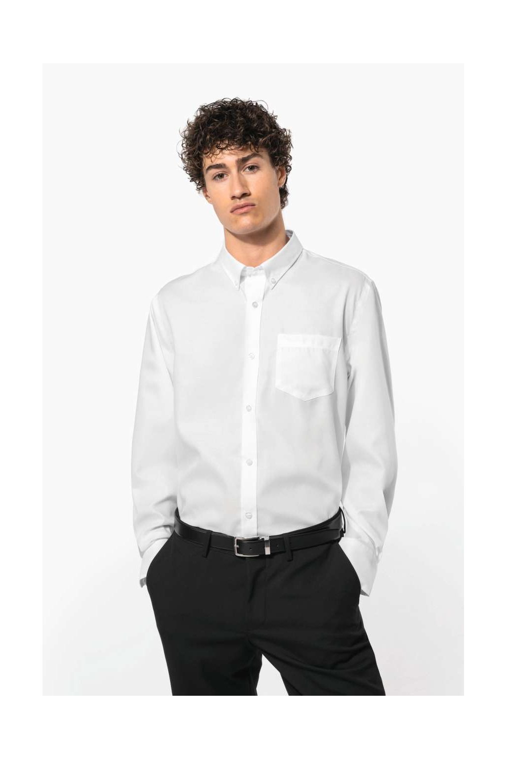 Tuto košili si opravdu oblíbíte, má nežehlivou / nemačkavou úpravu. Límeček má na knoflíčky, Na hrudi najdete na levé straně kapsu do tvaru písmene V. Manžety na rukávech jsou nastavitelní na knoflíky. Spodní lem je zaoblený.