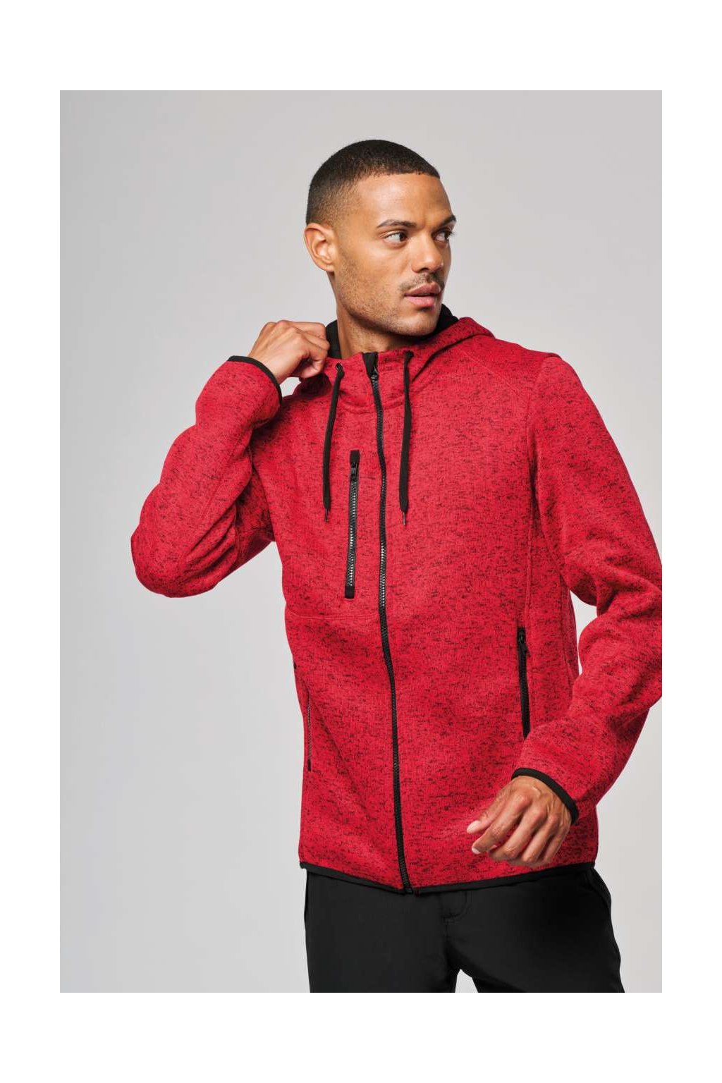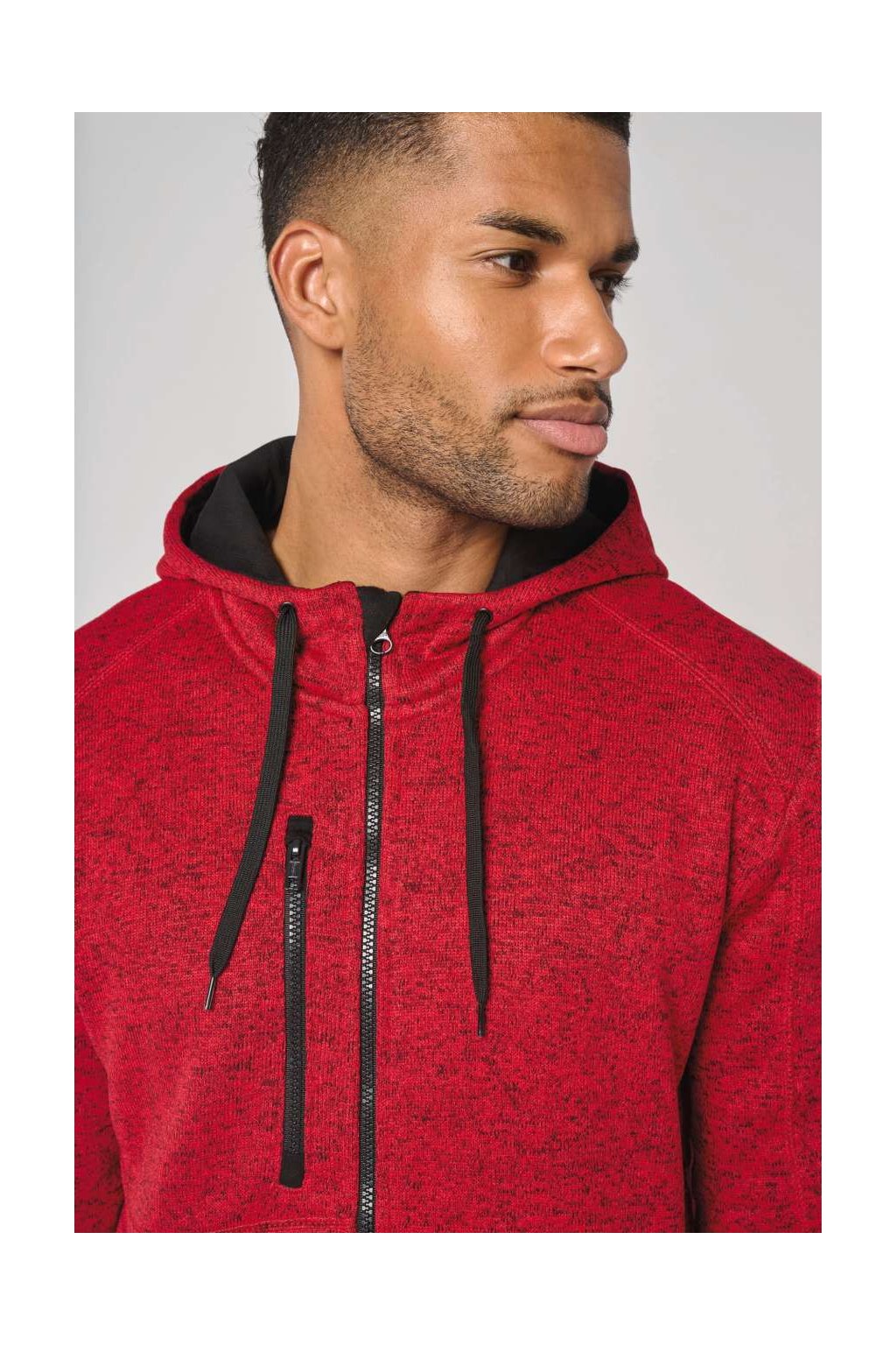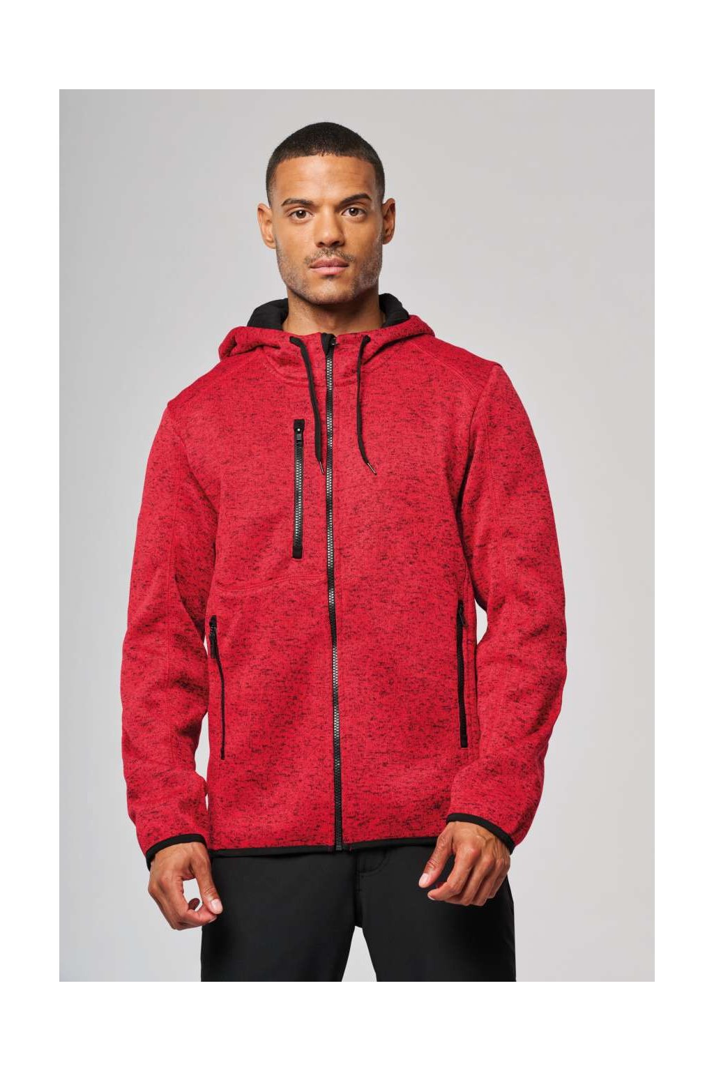 Pánská pohodlná, volnočasová, hřejivá bunda. Bunda má dvě kontrastní přední kapsy na zip a jednu kontrastní náprsní kapsou. Kapuce s kontrastní 100% bavlněnou žerzejovou podšívkou a kontrastní stahovací šňůrkou. Manžety a dolní lem s kontrastní elastickou vazbou a panely s povrchovou úpravou topstitch. Bundu ocení každý aktivní muž pro volnočasové aktivity.
