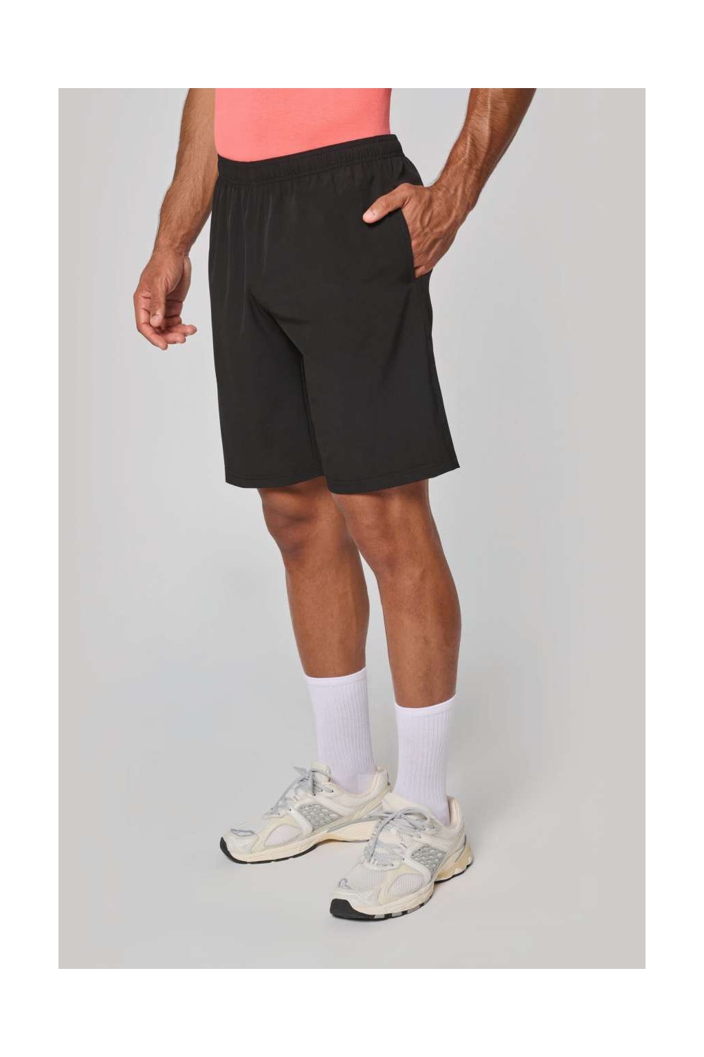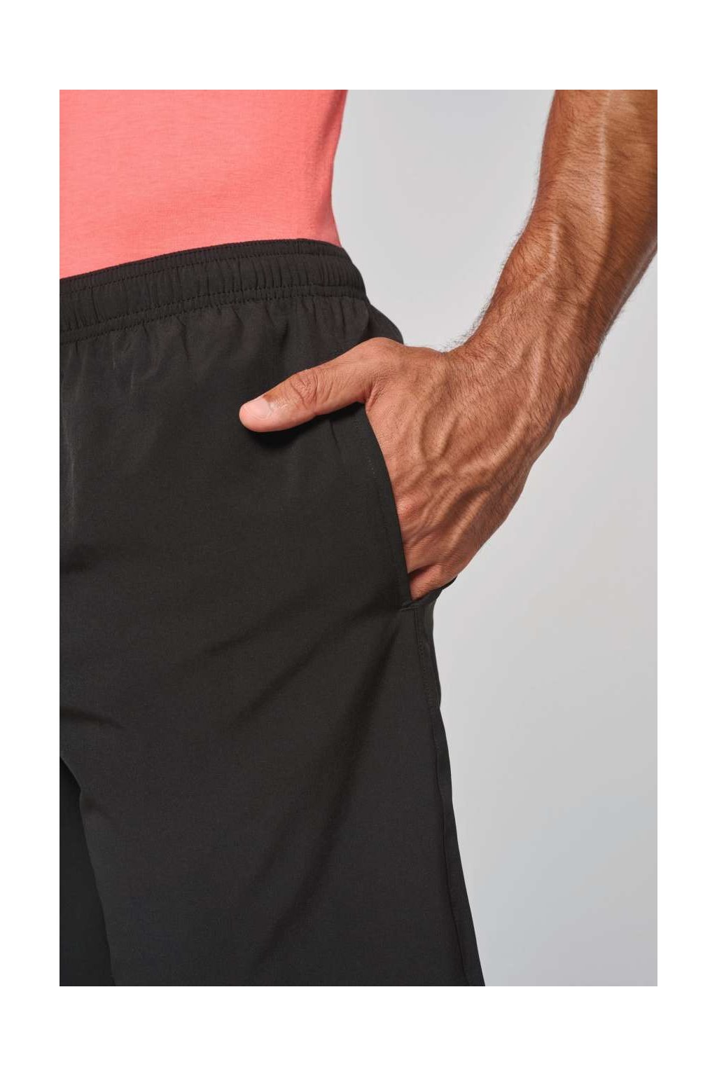 Pánské sportovní kraťasy jsou vyrobeny z jemné a příjemné tkaniny. Mají 2 hluboké přední kapsy a elastický pas se stahovací šňůrkou. Hodí se pro všechny sportovní aktivity.