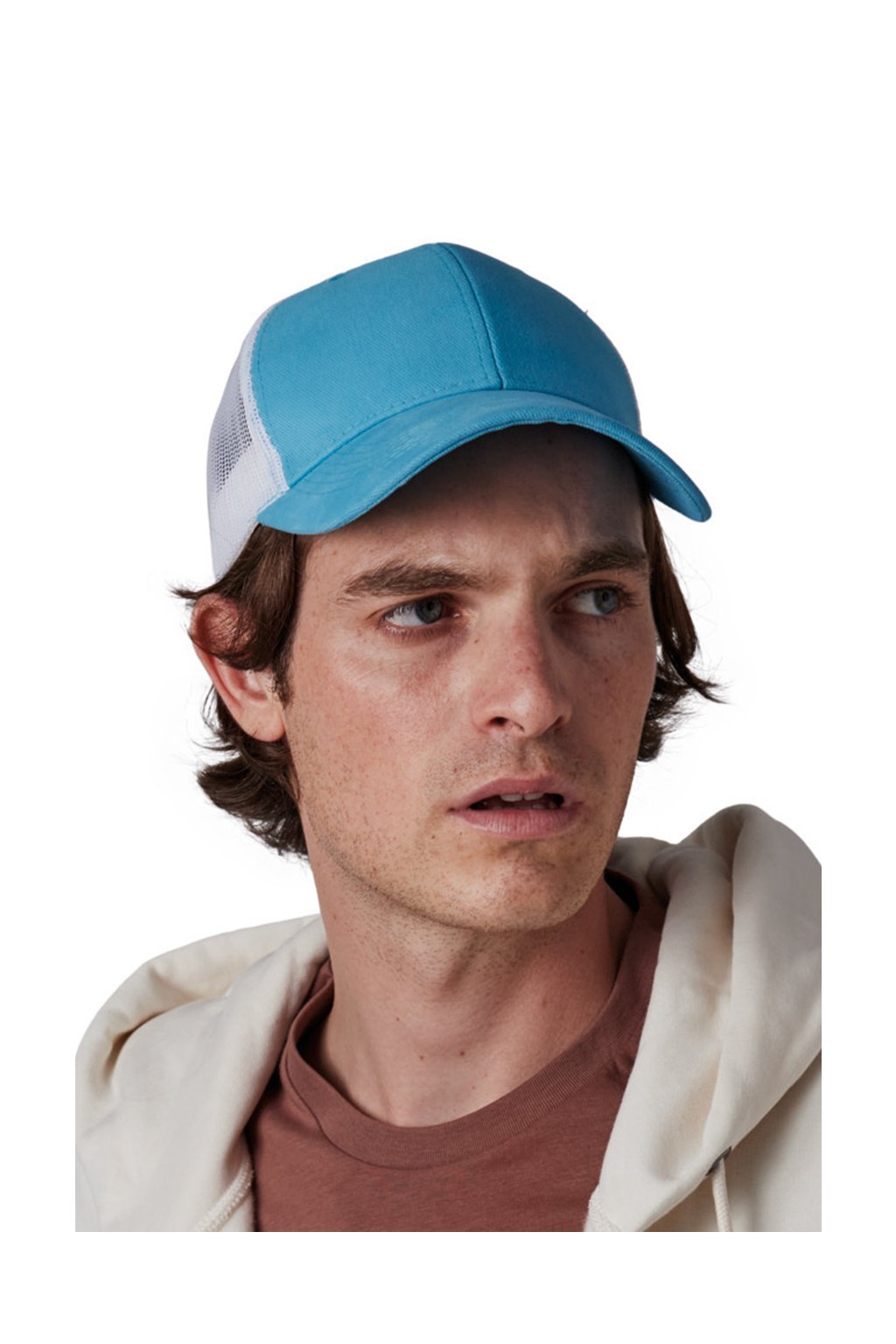 Unisex 6 panelová kšiltovka stylu trucker. Síťovina umístěná vzadu bezvadně odvětrává. Vzadu lze nastavit velikost na plastový uzávěr.