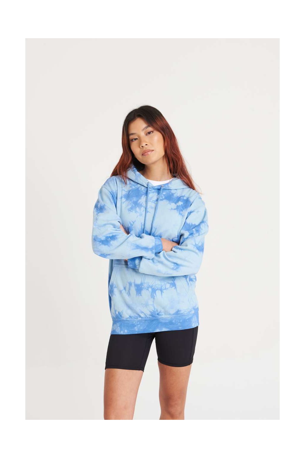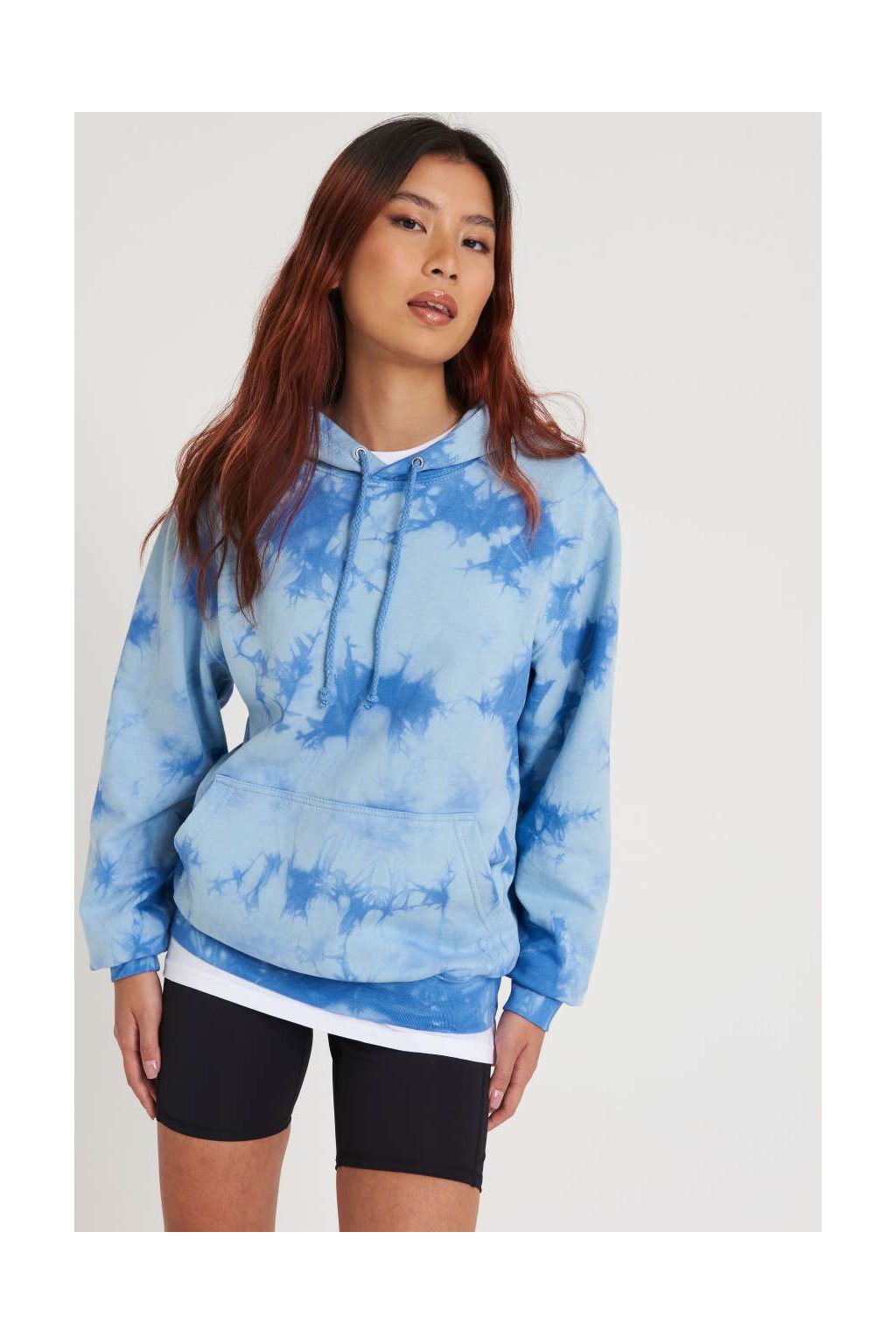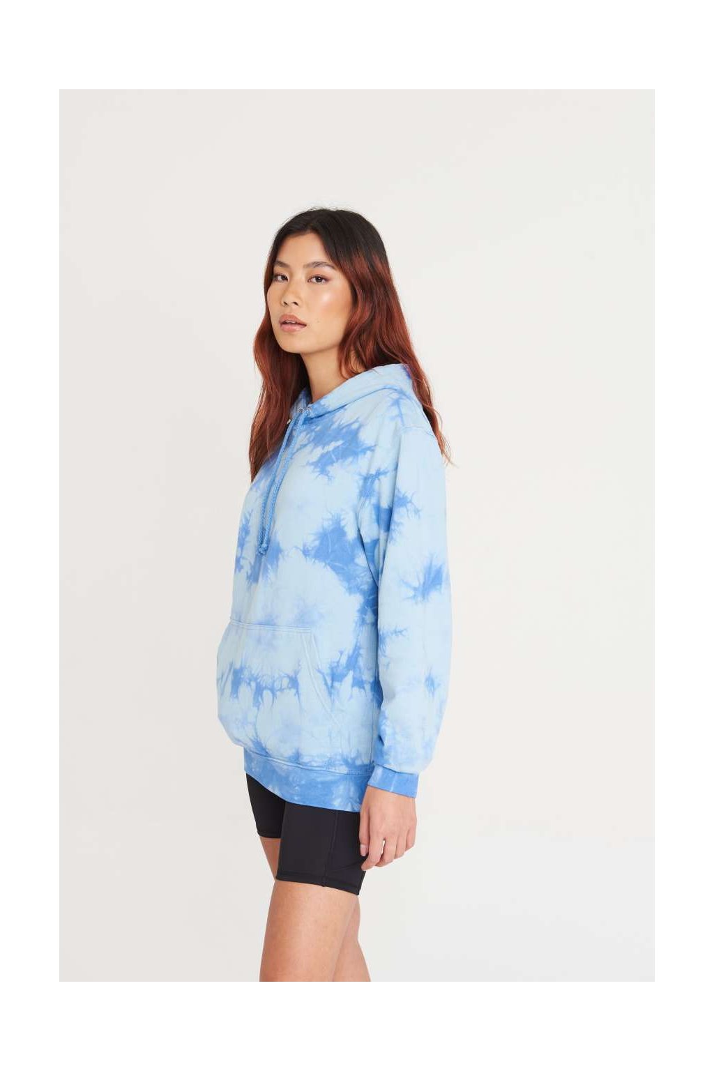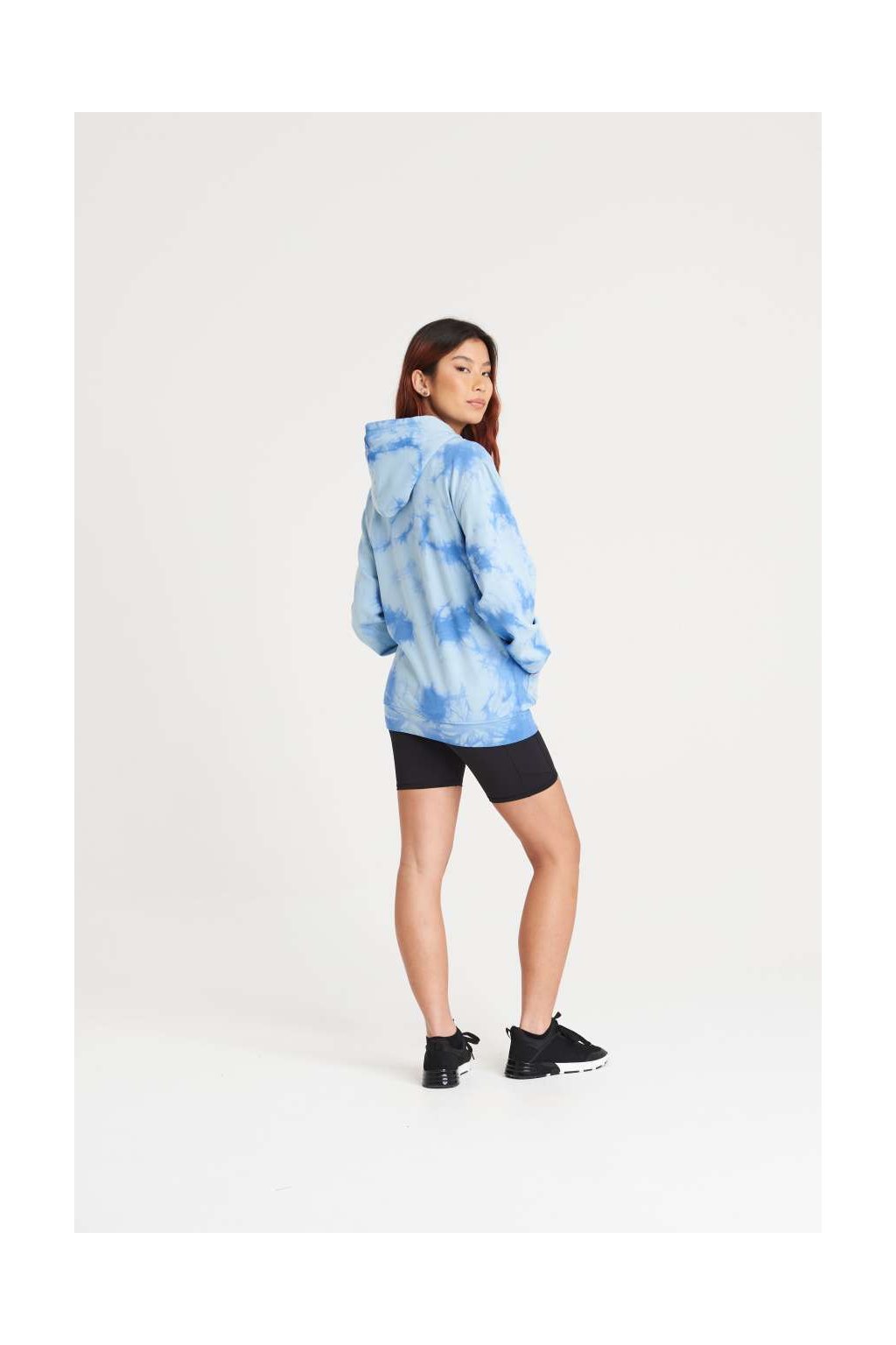 Tuhle mikinu si naprosto oblíbíte. Má jedinečný batikovaný design a každý kus je originál. Je uvolněného střihu, má dvojitou látkovou kapuci s kulatými stahovacími šňůrkami a klokaní kapsu. Uvnitř je měkký česaný fleece. Má žebrované manžety a lem.
