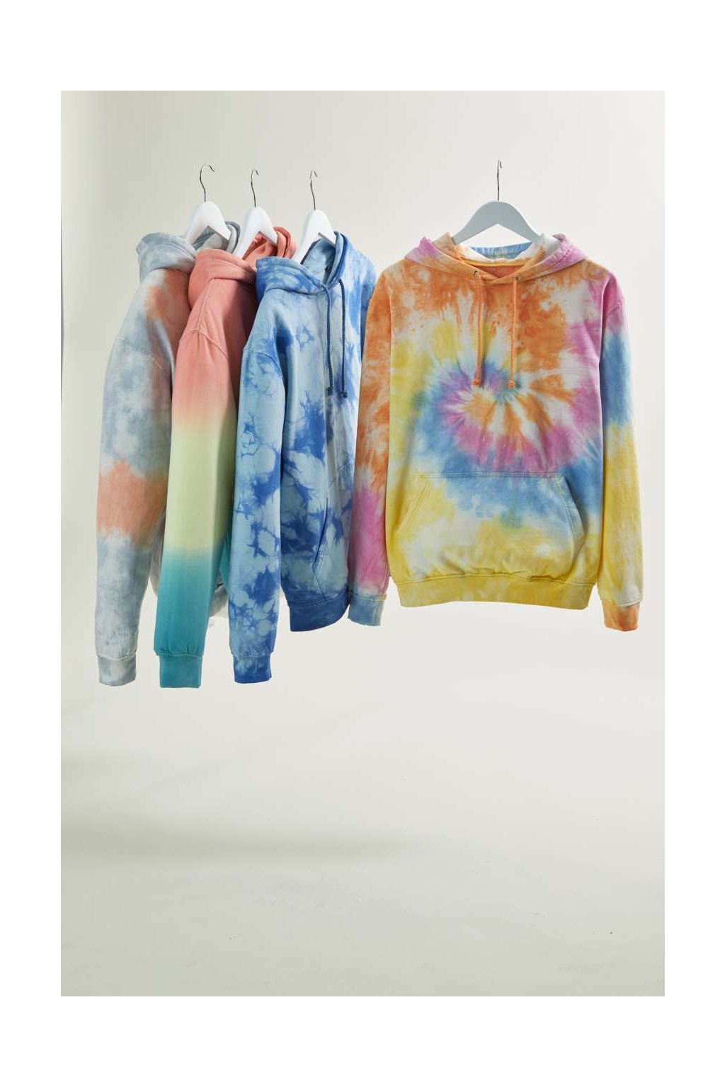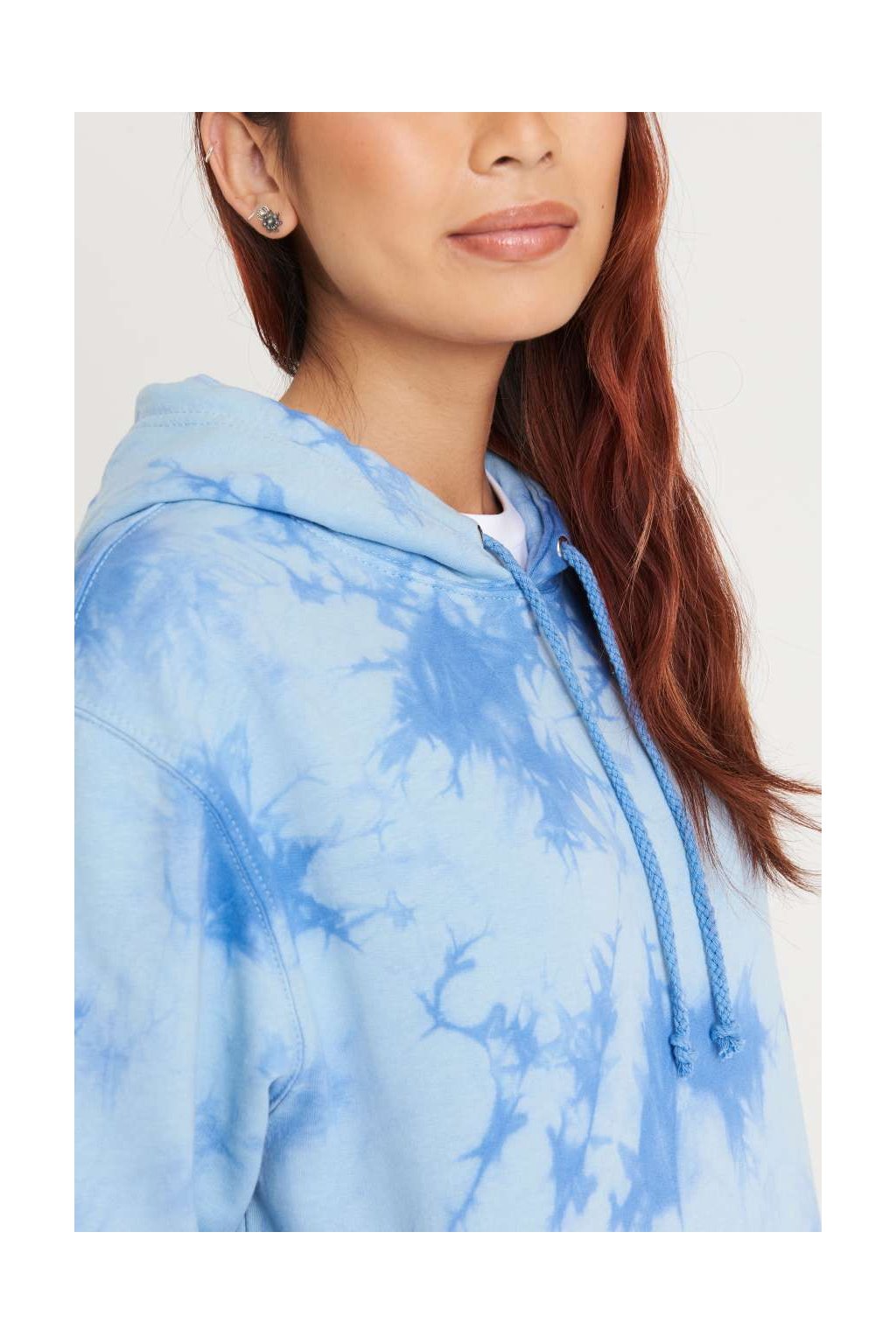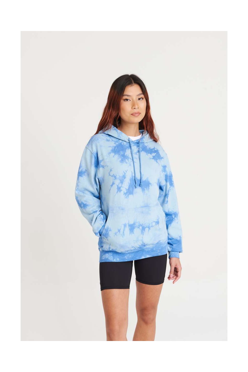Tuhle mikinu si naprosto oblíbíte. Má jedinečný batikovaný design a každý kus je originál. Je uvolněného střihu, má dvojitou látkovou kapuci s kulatými stahovacími šňůrkami a klokaní kapsu. Uvnitř je měkký česaný fleece. Má žebrované manžety a lem.