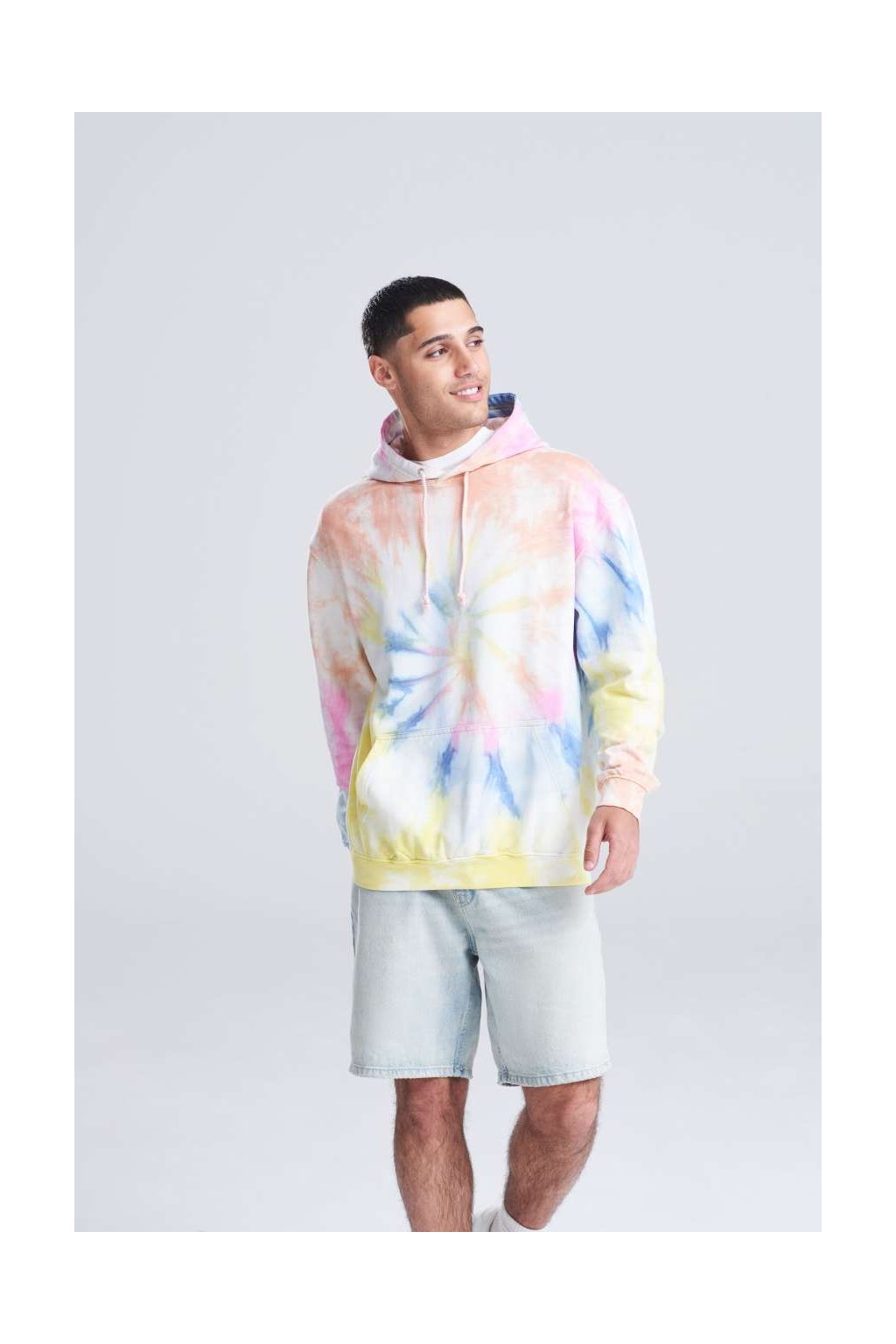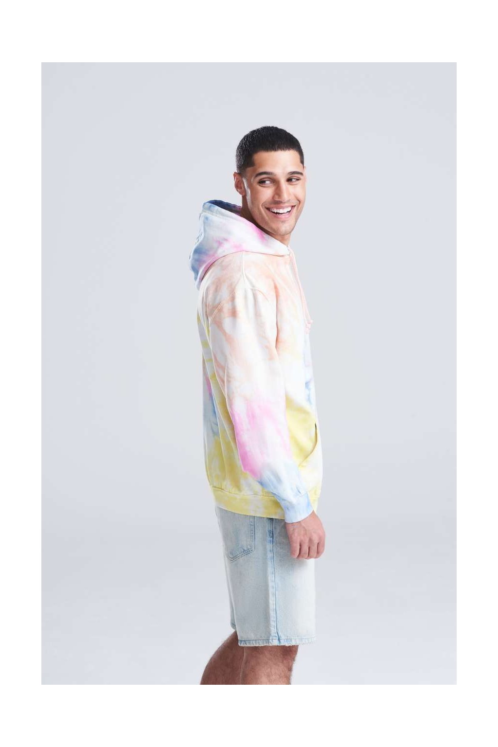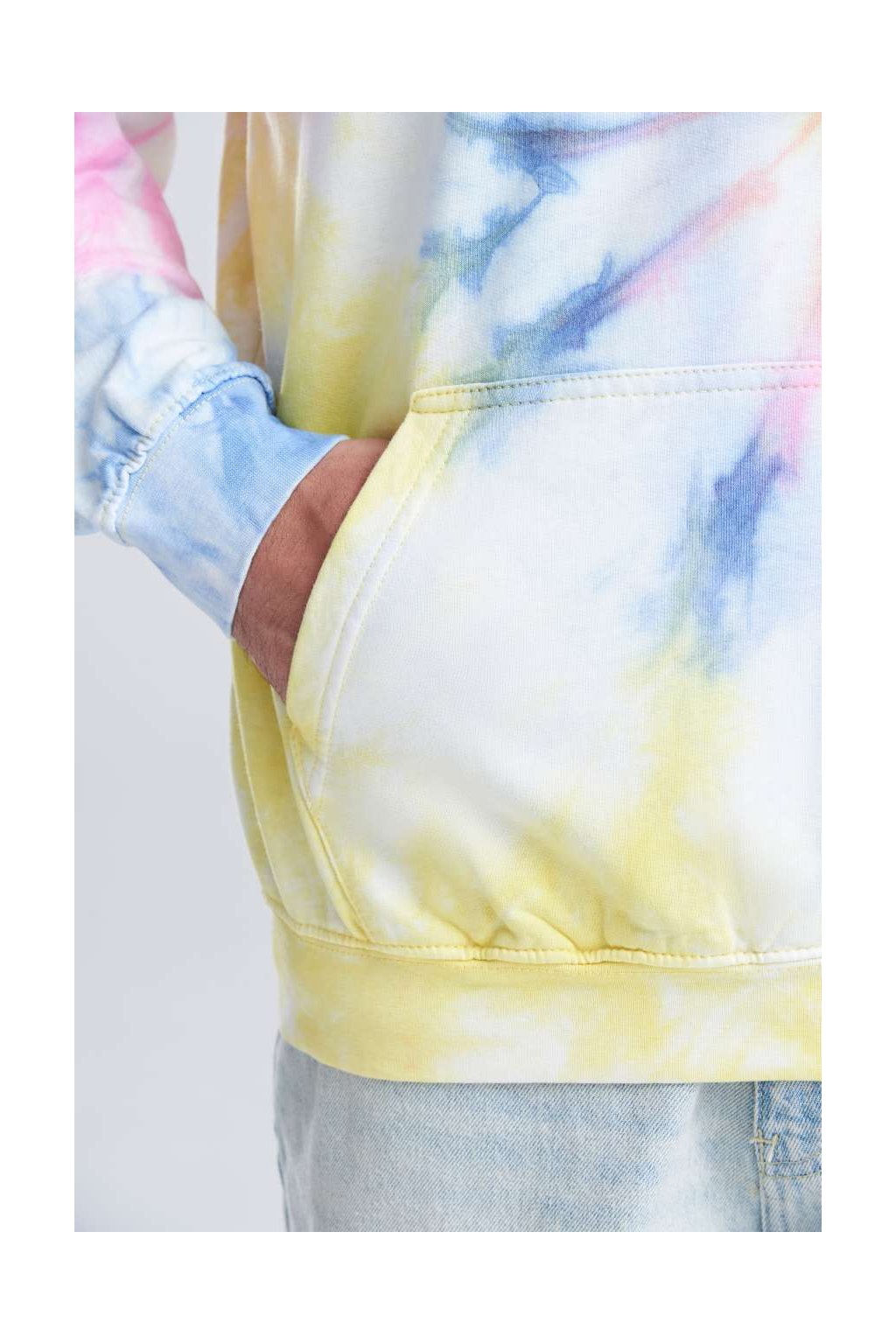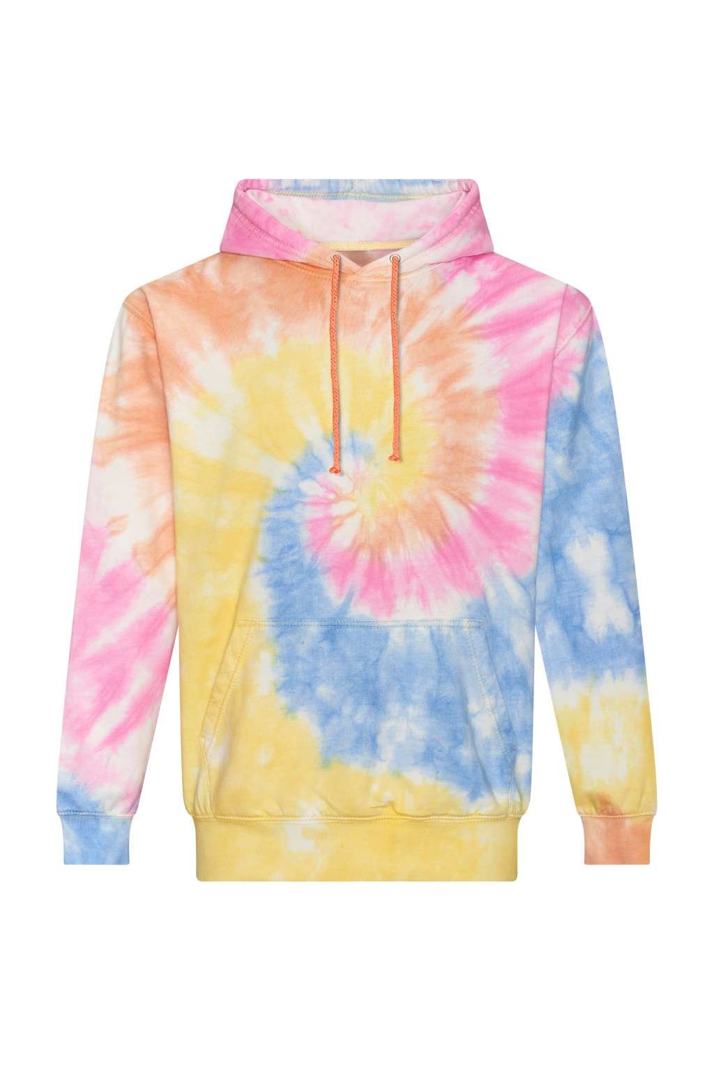 Tuhle mikinu si naprosto oblíbíte. Má jedinečný batikovaný design a každý kus je originál. Je uvolněného střihu, má dvojitou látkovou kapuci s kulatými stahovacími šňůrkami a klokaní kapsu. Uvnitř je měkký česaný fleece. Má žebrované manžety a lem.
