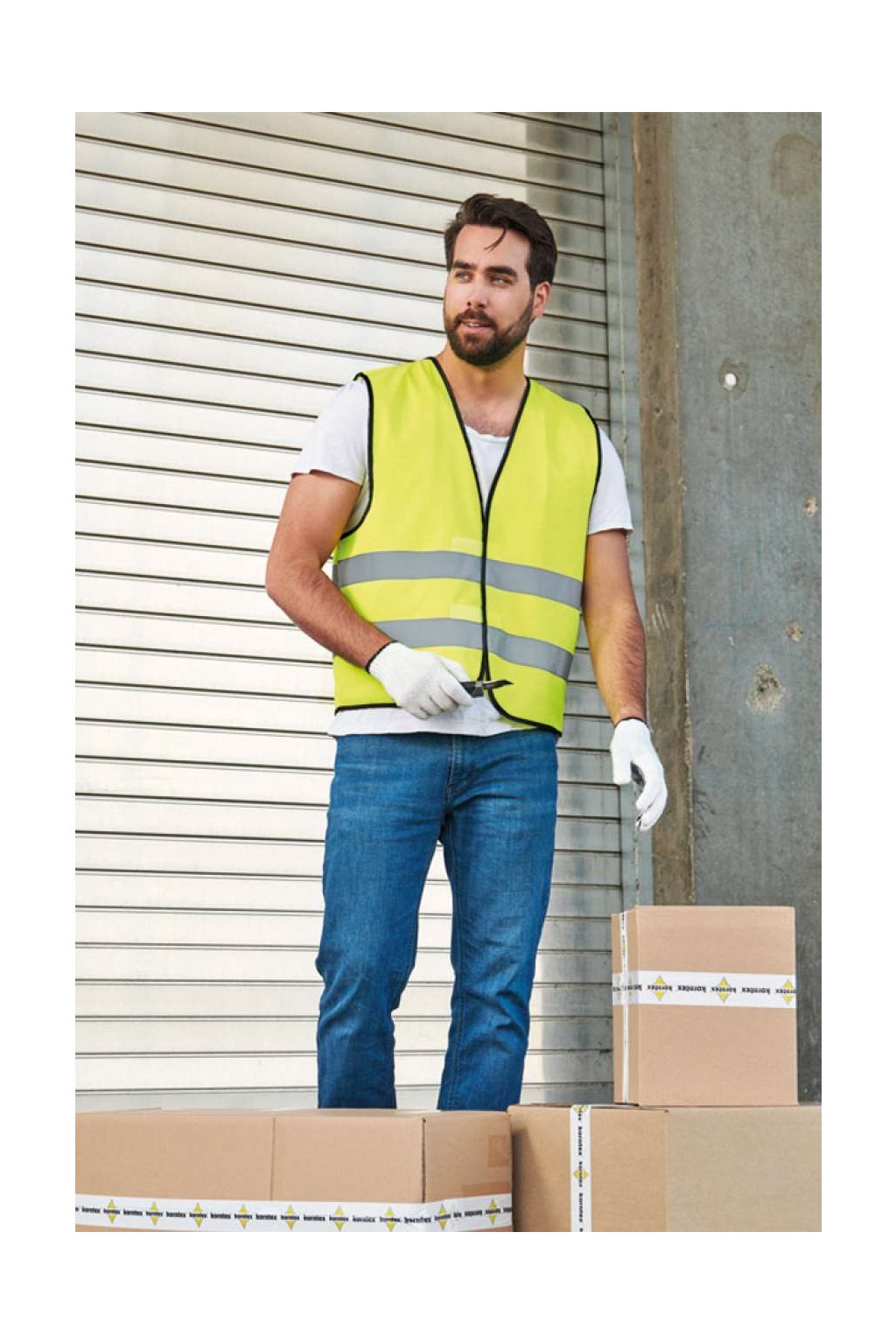 Vysoce kvalitní standardní bezpečnostní vesta Korntex® s černým lemováním je nepostradatelná všude tam, kde je kladen důraz na bezpečnost. Hodí se na veškeré stavební činnosti nebo pracovní oblasti jako jsou průmysl, doprava a logistika nebo na letiště. Reflexní pruhy kolem těla zajistí dobrou viditelnost. Velikost lze nastavit pomocí dvou suchých zipů na přední straně vesty. Výrobce garantuje reflexní vlastnosti dle normy EN pro 25 pracích cyklů při 40°C. Certifikováno podle EN ISO 20471:2013/A1:2016.
