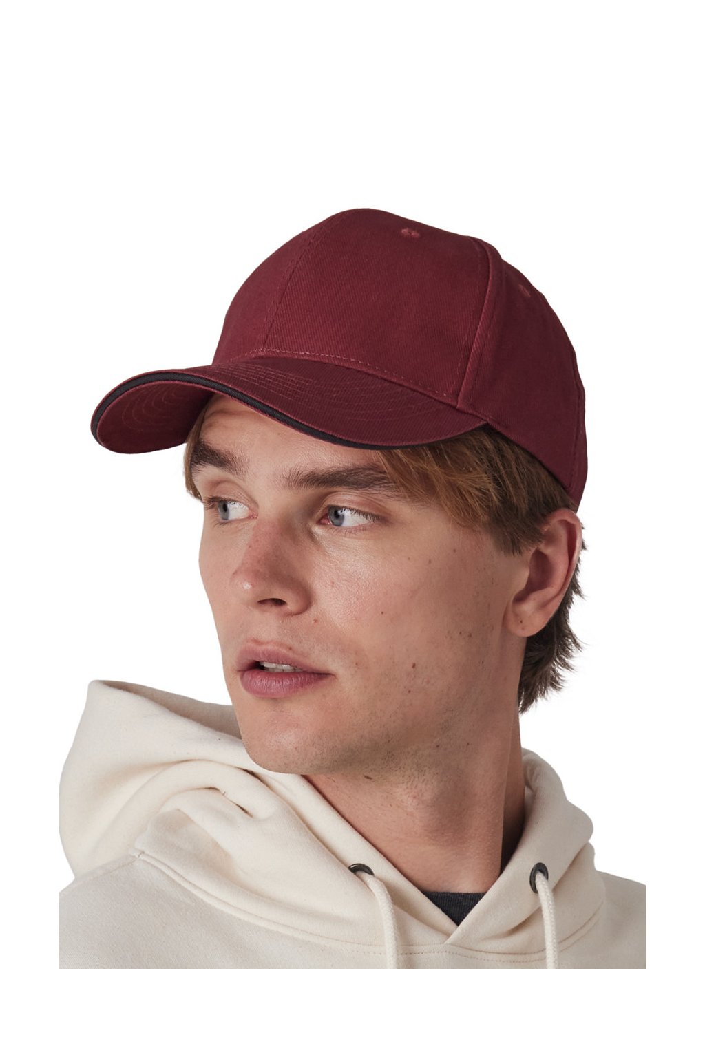 Krásná 6ti panelová kšiltovka z odolného bavlněného česaného kepru Vás zaujme kontrastním proužkem na kšiltu. Vzadu má regulátor velikosti s kovovou přezkou.