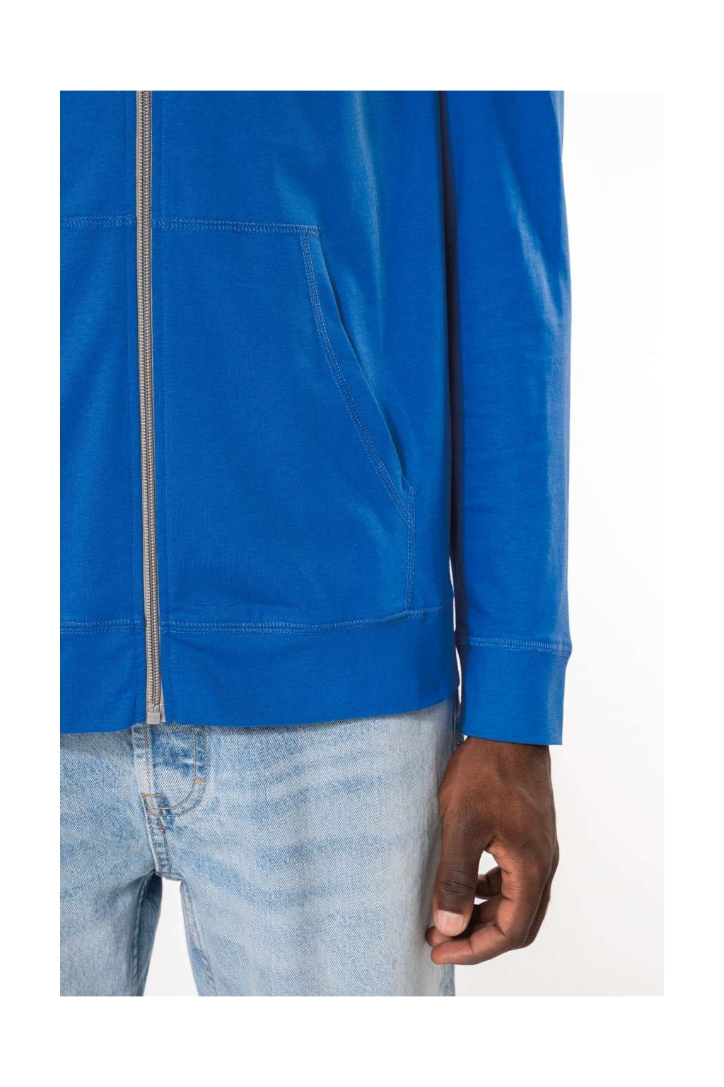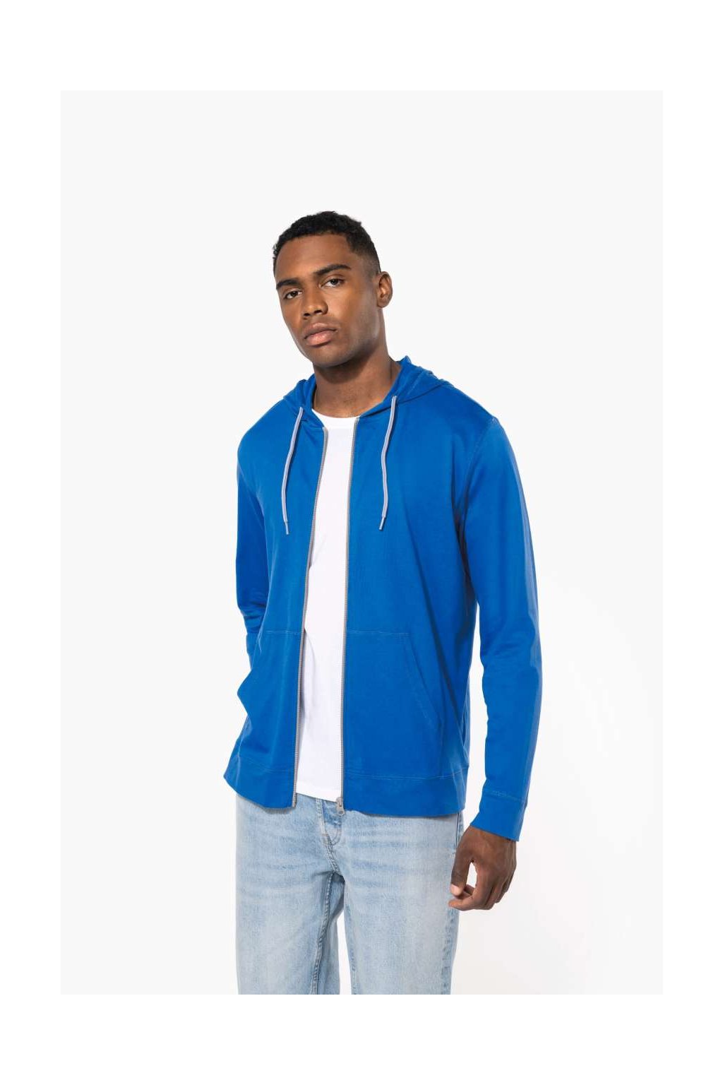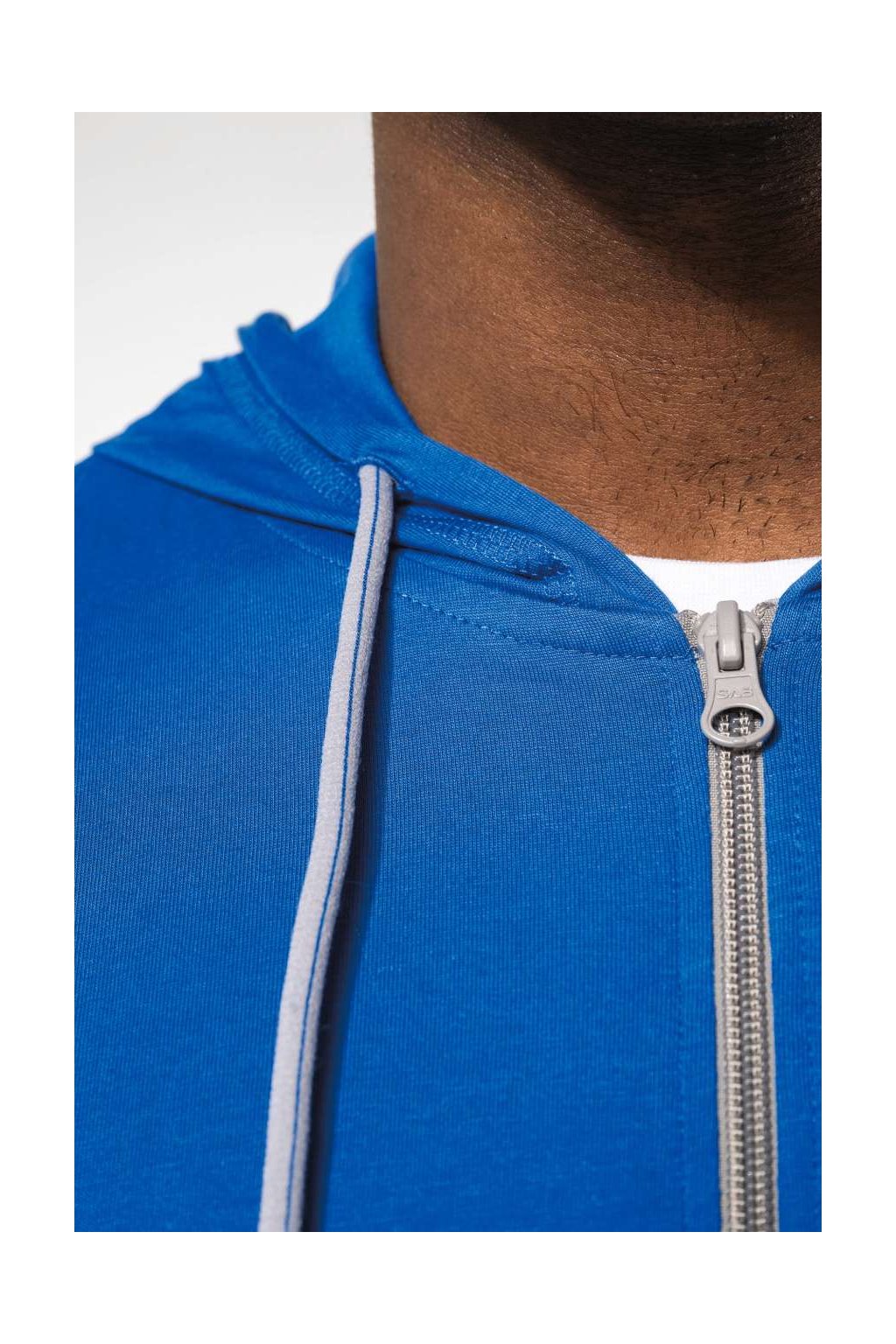 Bavlněná mikina ze 100% česané bavlny. Měkká tkanina, neformální moderní styl, kontrastní páska na krk (tmavě šedá pro barvu Oxford šedá a Oxford šedá pro ostatní barvy), 2 klokaní kapsy, látkové manžety a lem, kontrastní zip a dvoubarevná kapuce se stahovací šňůrkou.