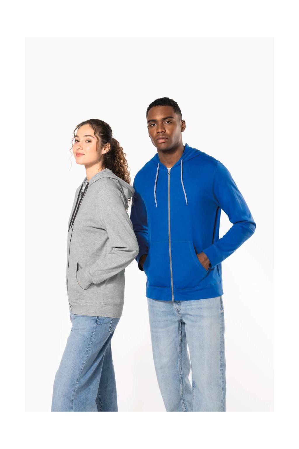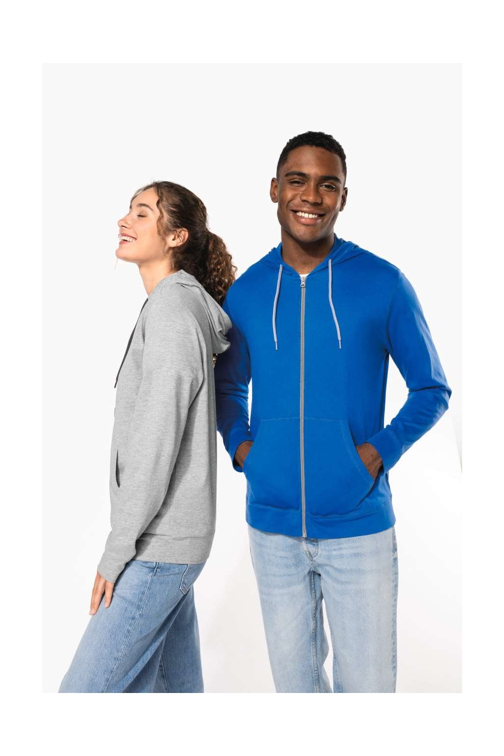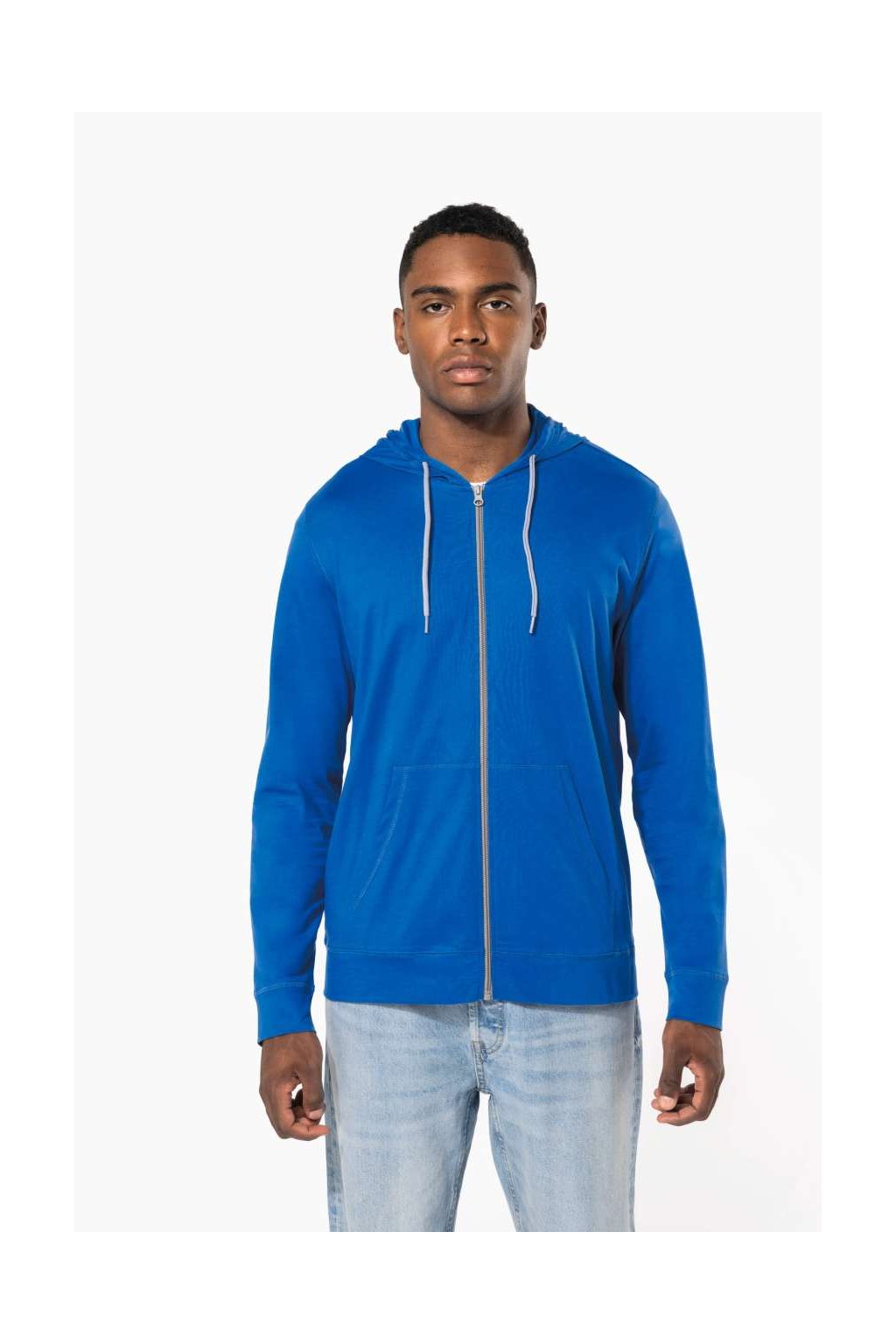 Bavlněná mikina ze 100% česané bavlny. Měkká tkanina, neformální moderní styl, kontrastní páska na krk (tmavě šedá pro barvu Oxford šedá a Oxford šedá pro ostatní barvy), 2 klokaní kapsy, látkové manžety a lem, kontrastní zip a dvoubarevná kapuce se stahovací šňůrkou.
