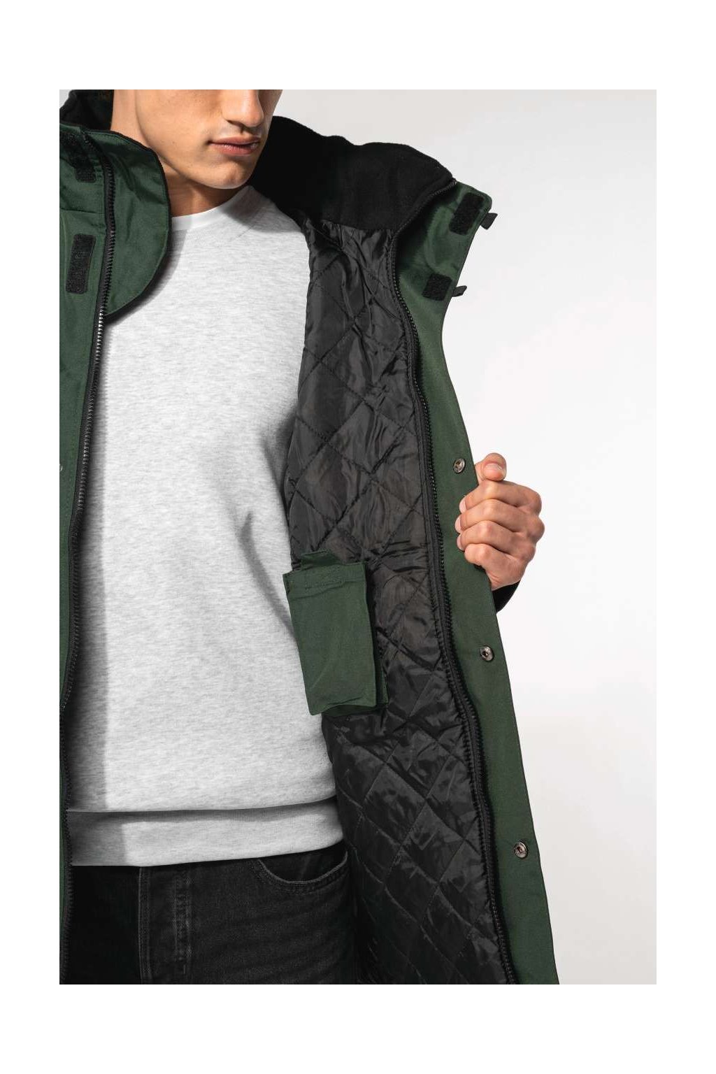 Tato parka s podšívkou se bude hodit do chladnějšího počasí. Zapíná se na zip, suchý zip a patenty. Má spoustu kapes, dvě vnější kapsy na zip, dvě vnitřní a jednu kapsu na mobilní telefon. Límec je podšitý fleecem, takže Vás bude příjemně hřát. Jistě oceníte skrytou kapuci.