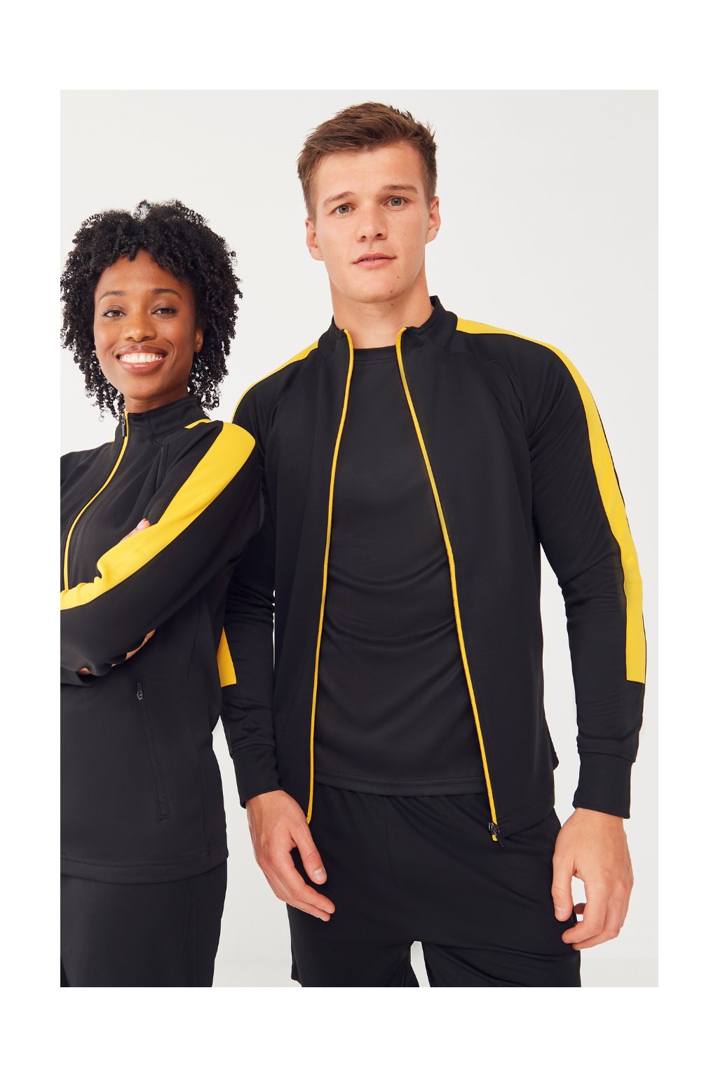 Padnoucí mikina je vrchním dílem sportovní unisex soupravy. Má kontrastní barevné panely na vnějších rukávech a přední zip. Mikina má také boční kapsy na zip, rolákový výstřih a žebrované manžety.