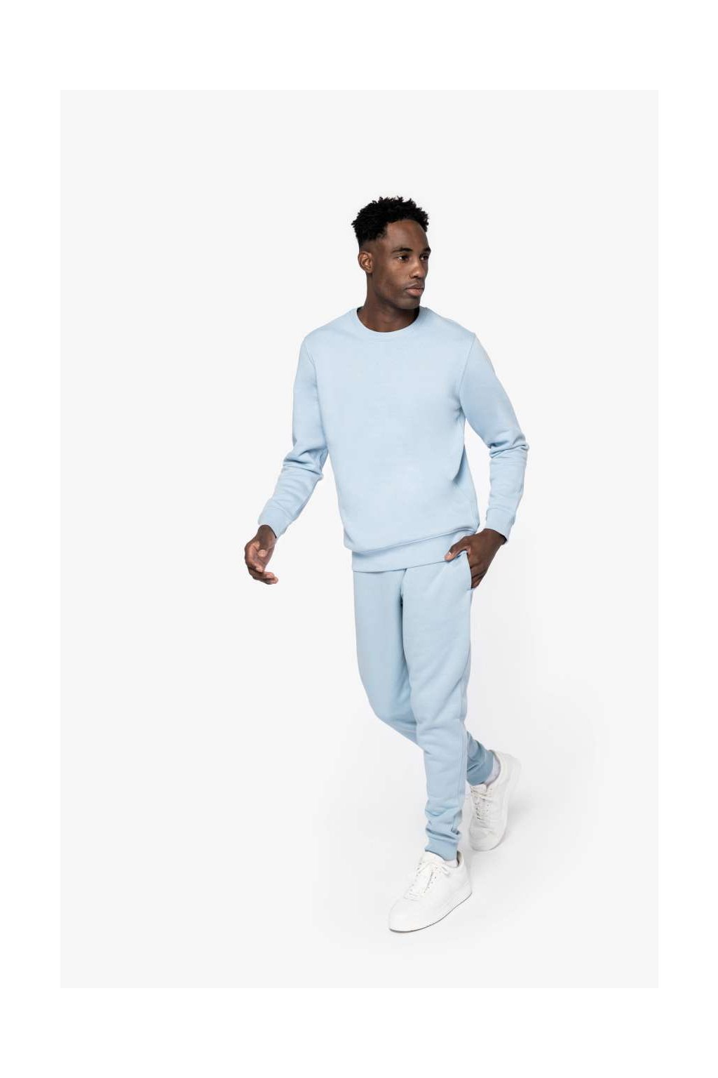 Kvalitní tepláky z organické česané bavlny si naprosto zamilujete. Jsou krásně měkké a pohodlné. Mají žebrovaný pas se stahovací šňůrkou. Tepláky mají jednu boční a jednu zadní kapsu. Nohavice se směrem dolů zužují a jsou zakončeny žebrovanou manžetou. Nitě jsou z organické bavlny. Dodává se s kartonovou visačkou se seznamem ekologických materiálů použitých k výrobě produktu.