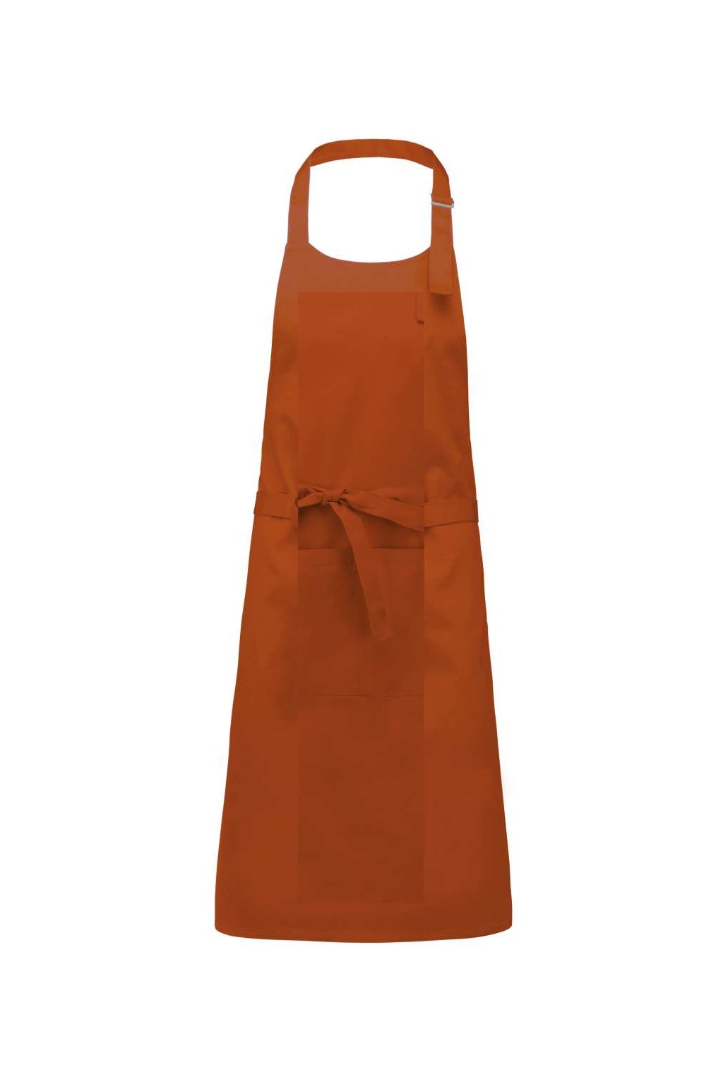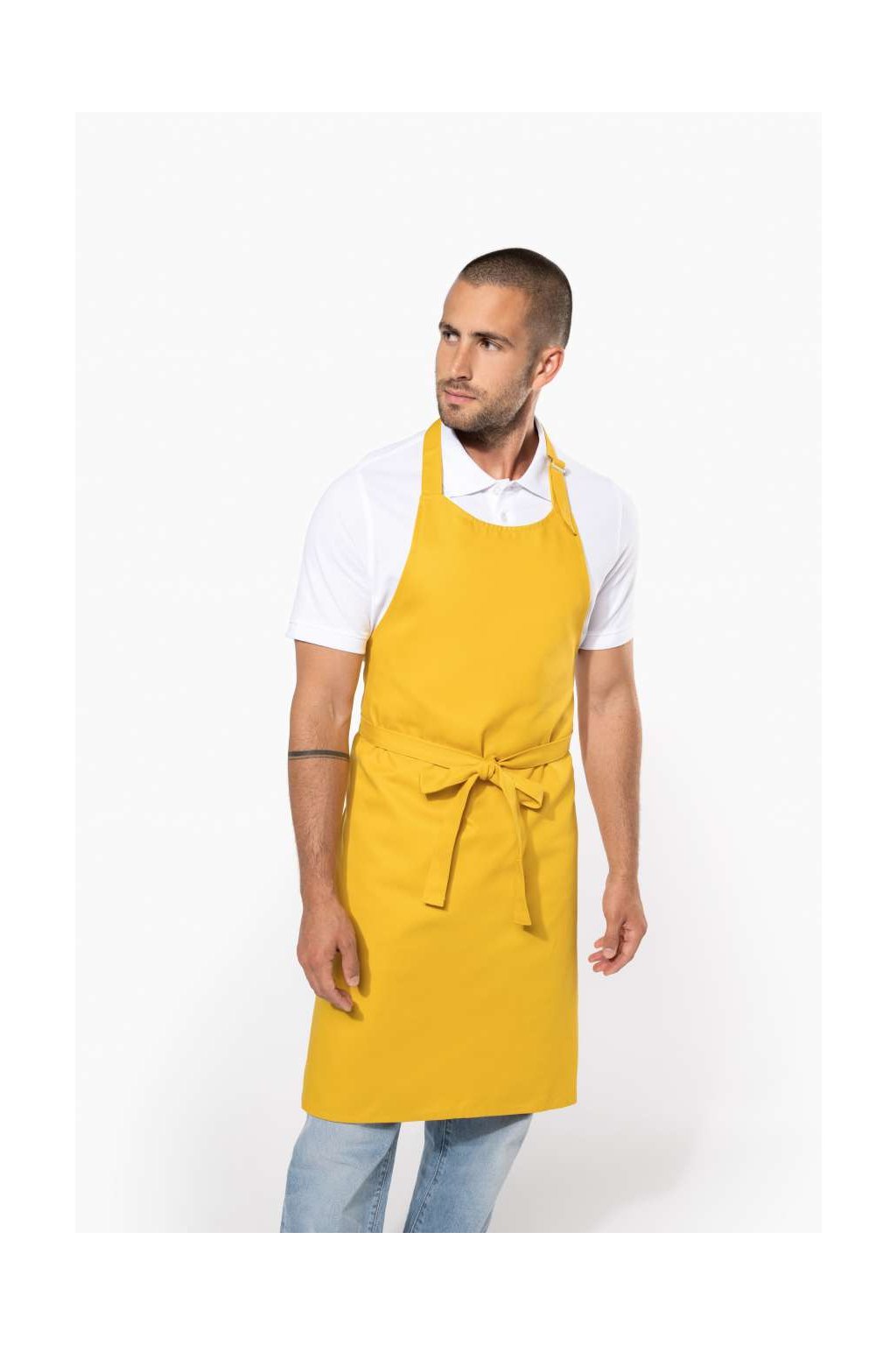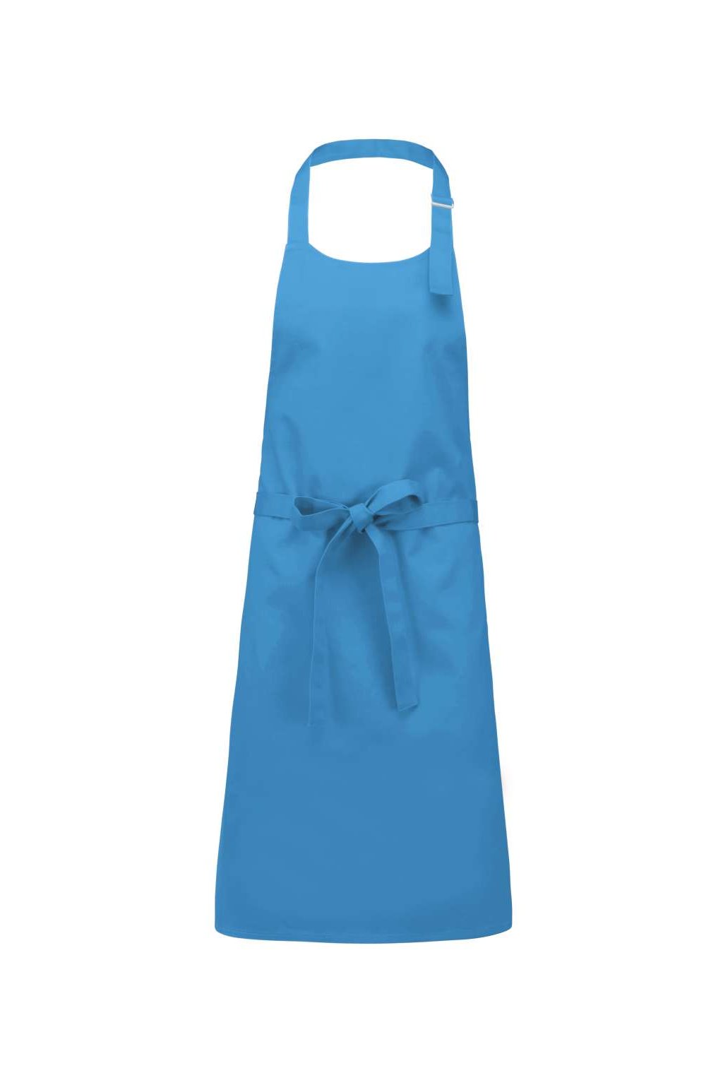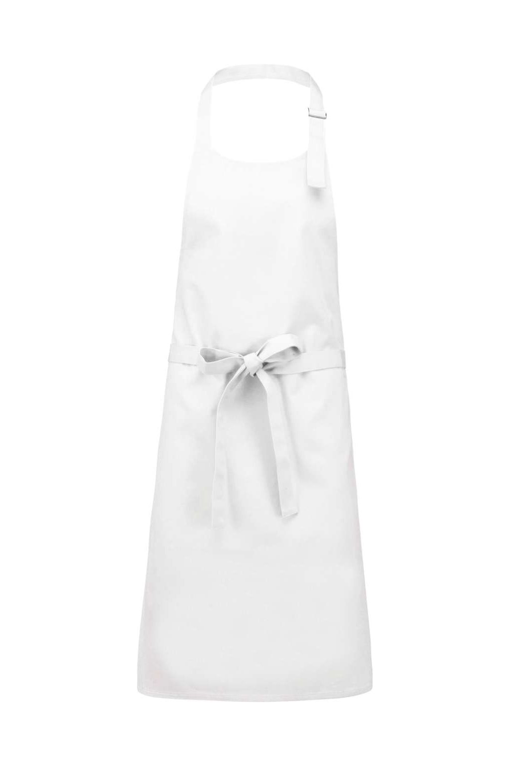 Univerzální bavlněná zástěra bez kapes. Délku lze nastavit pomocí posuvné kovové spony. Denimové barvy: specíální ošetření s úmyslem vypadat opotřebovaně. Prát lze na 60°C.