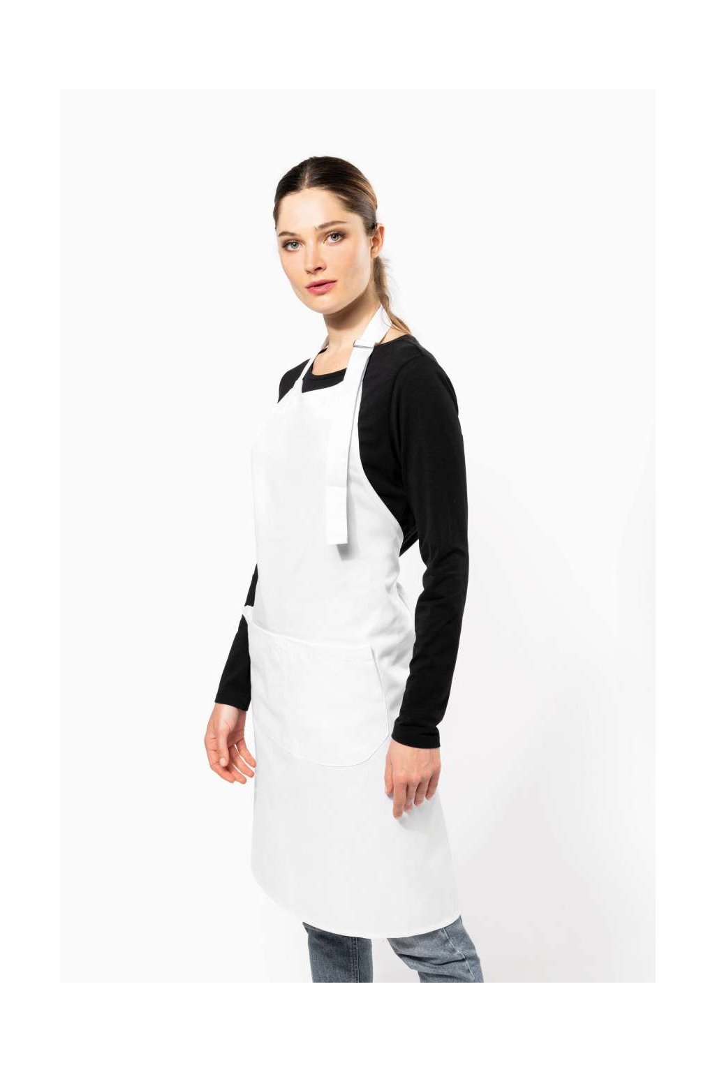 Zástěra s velkou přední kapsou a dvěma přihrádkami bude Vaším pratickým pomocníkem. Kapsa má na délku 20 cm a na šířku 31,5 cm. Popruh za krkem snadno nastavíte kovovou přezkou. Zástěru lze prát na vysokou teplotu - praní v domácnosti na 60°C a průmyslové praní při 85°C v souladu s požadavky normy ISO 15797.